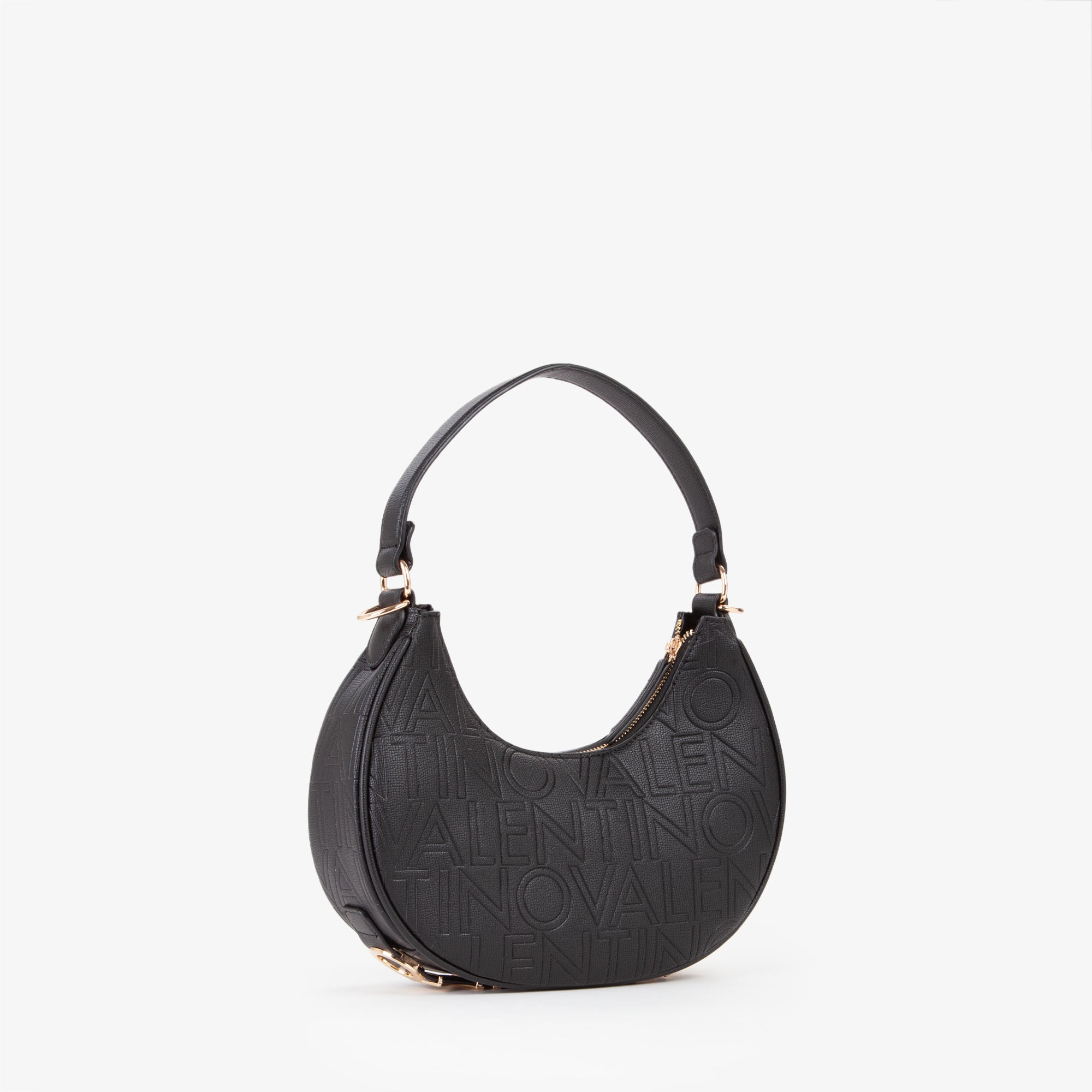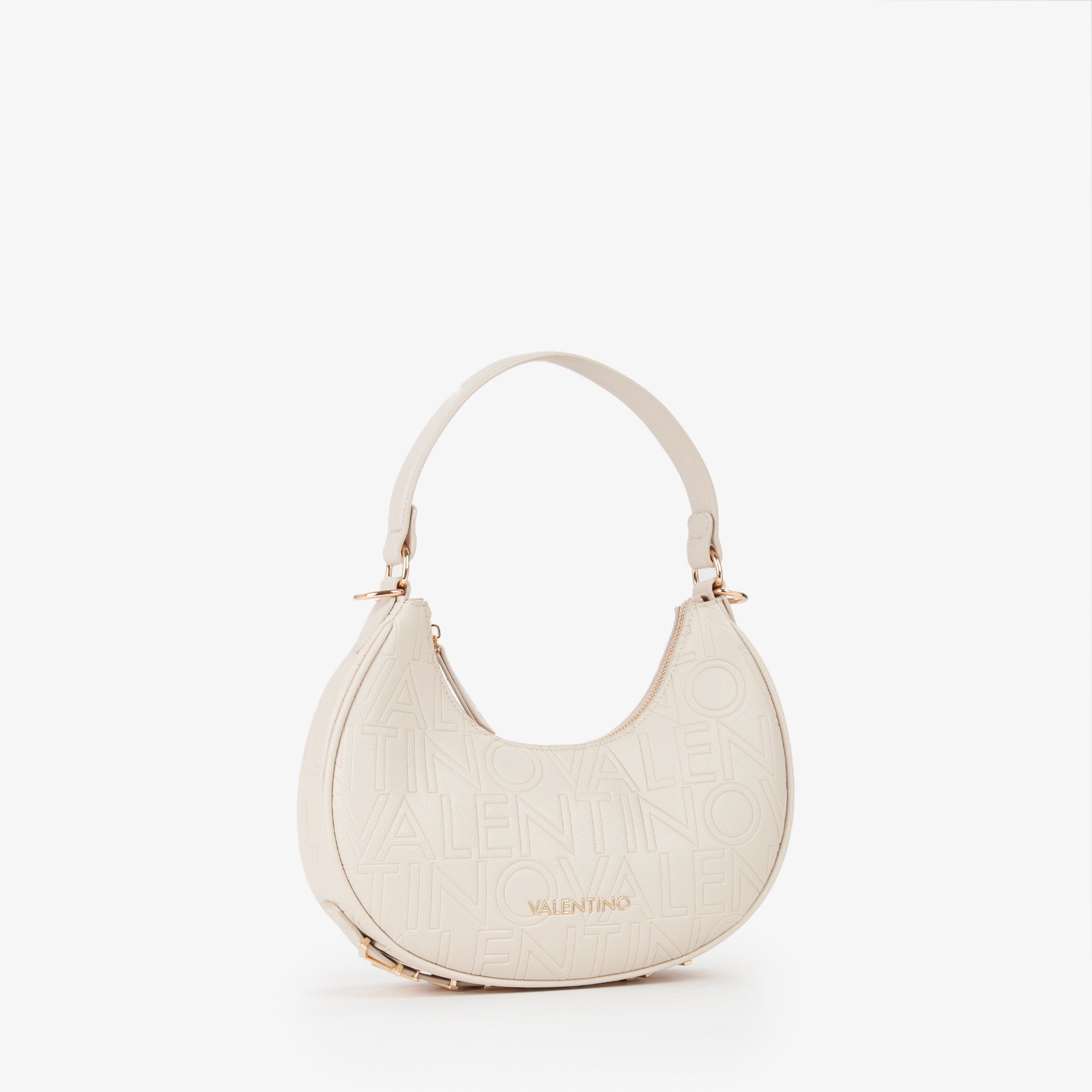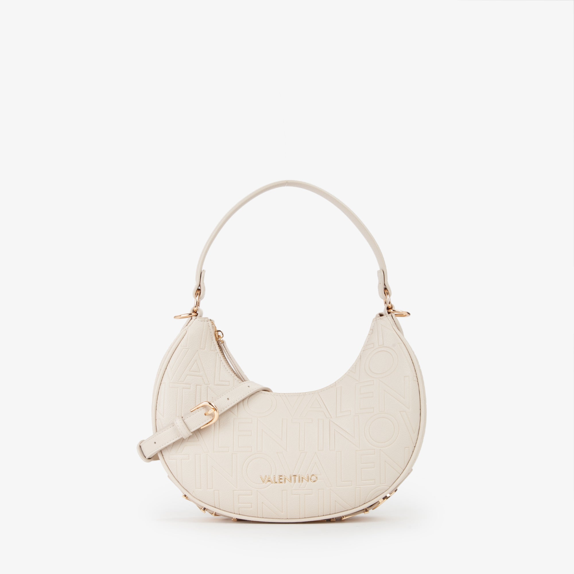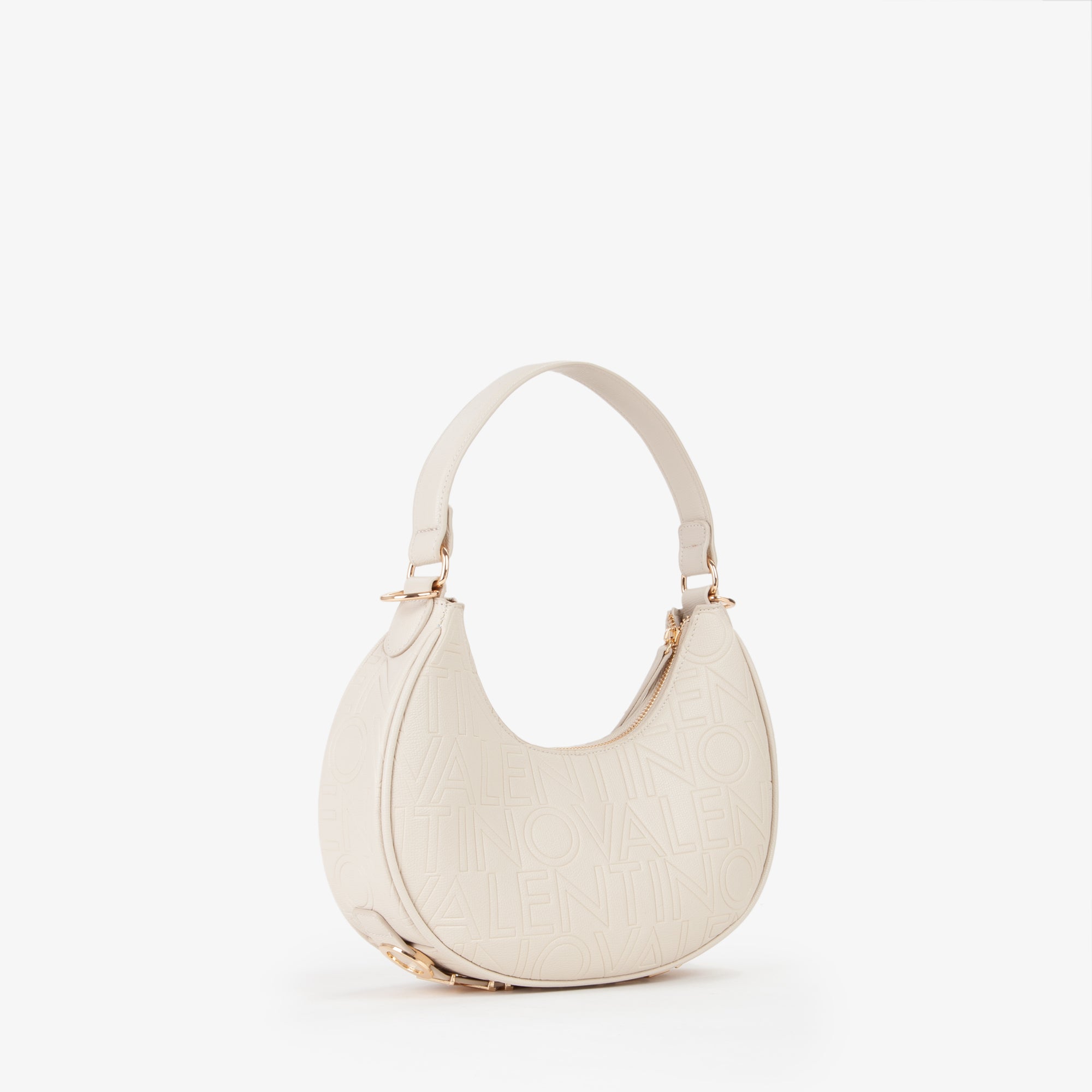 sacca iconica del brand con maxi lettering in metallo lungo il fondo della borsa