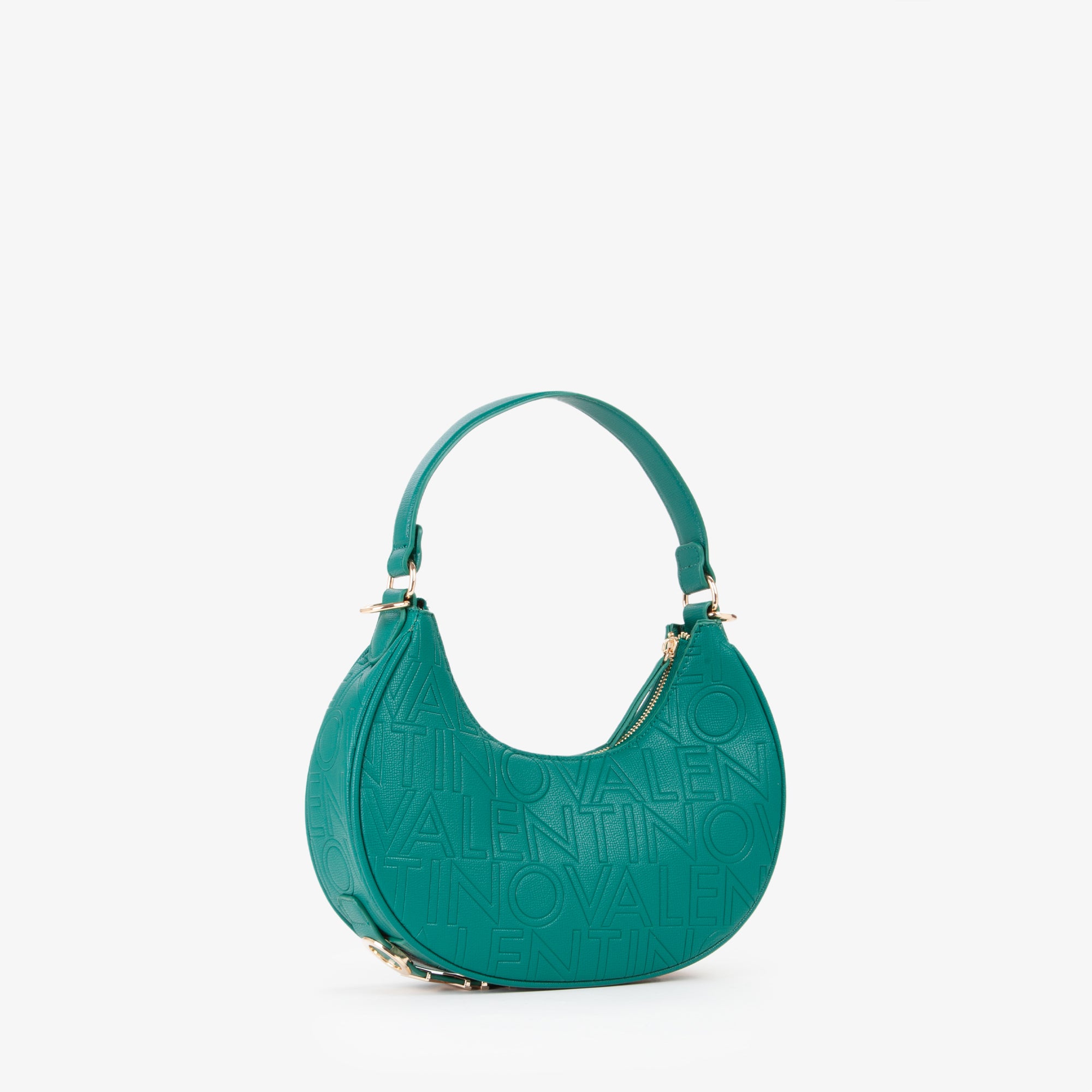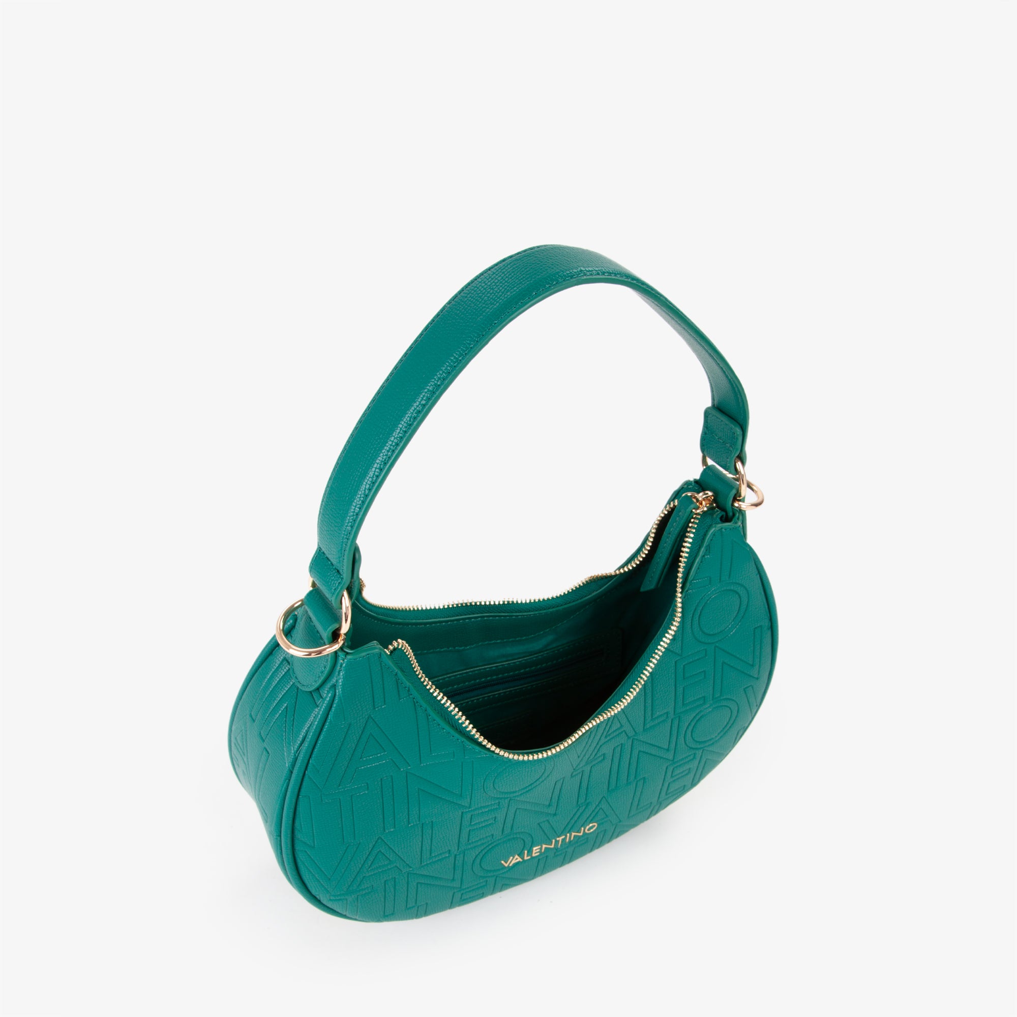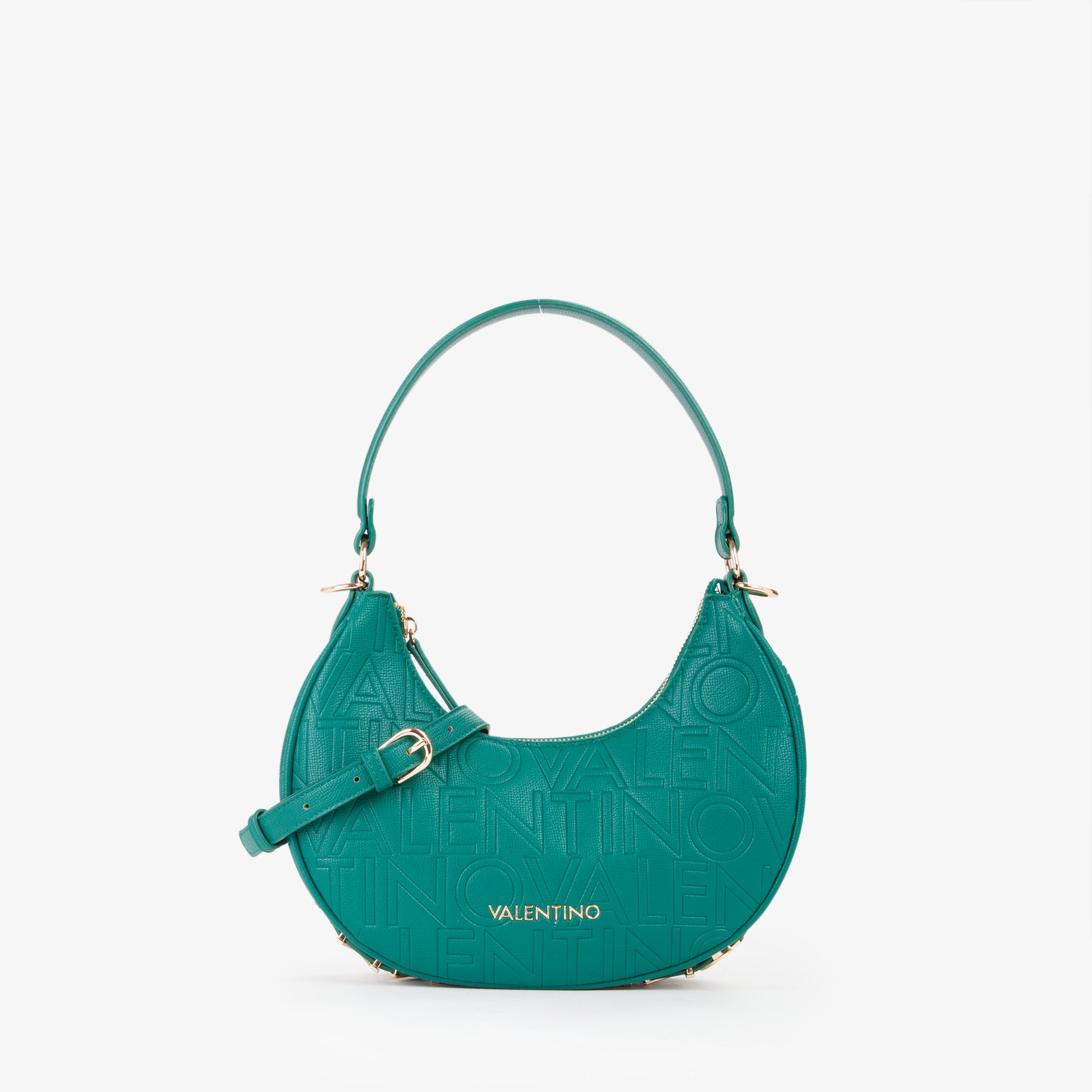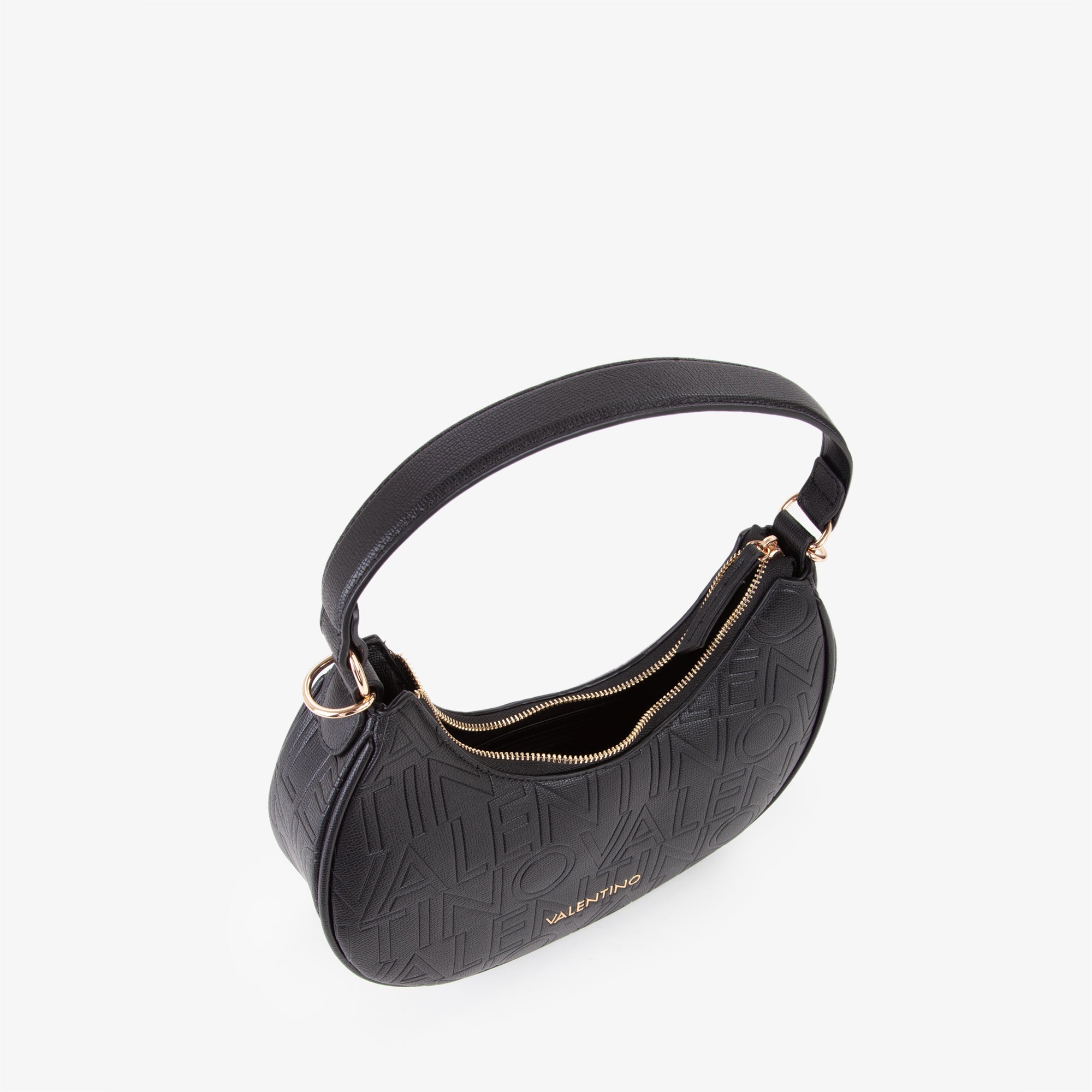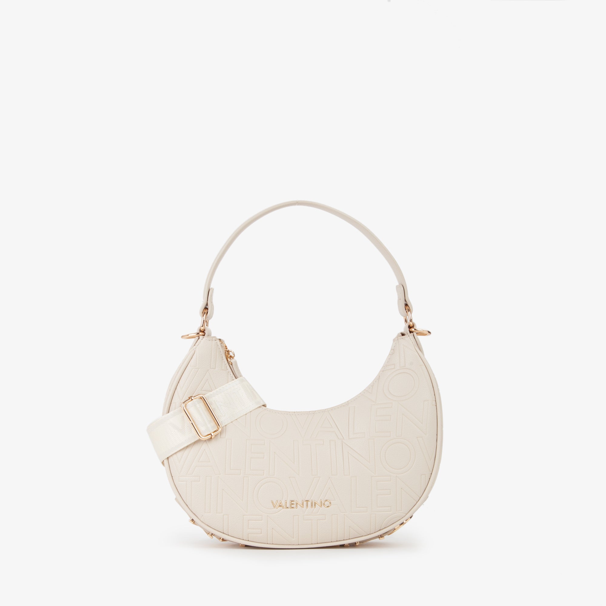 sacca iconica del brand con maxi lettering in metallo lungo il fondo della borsa