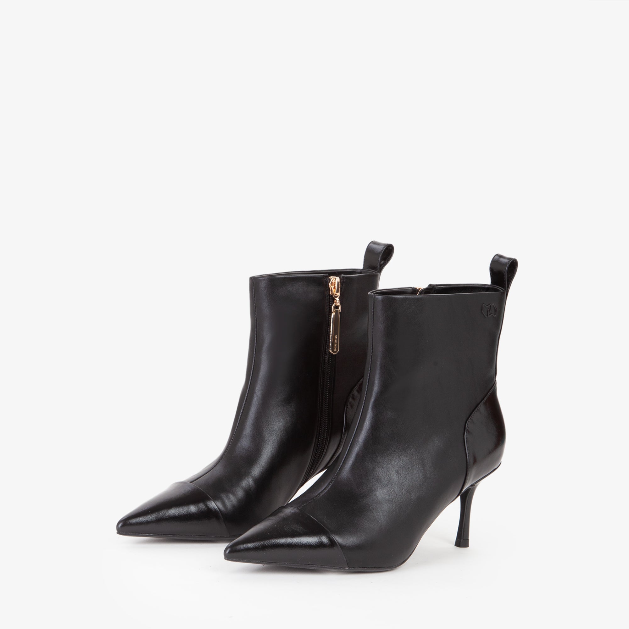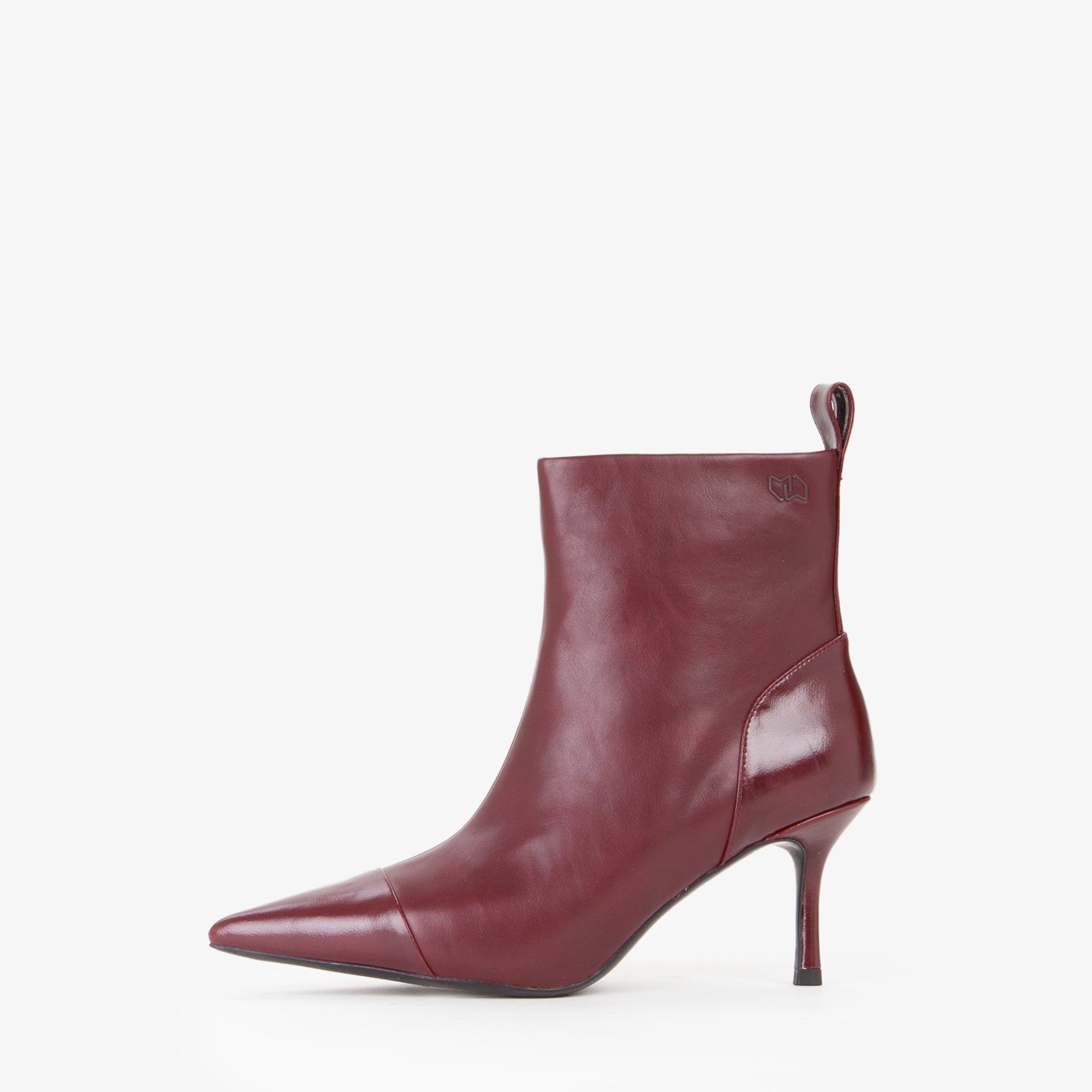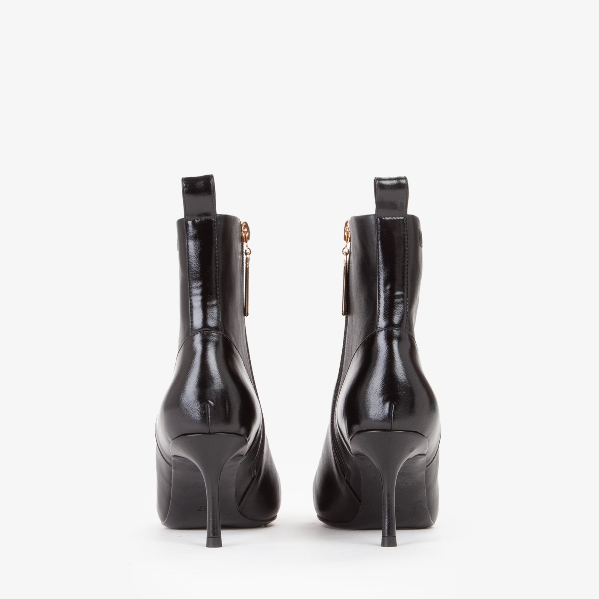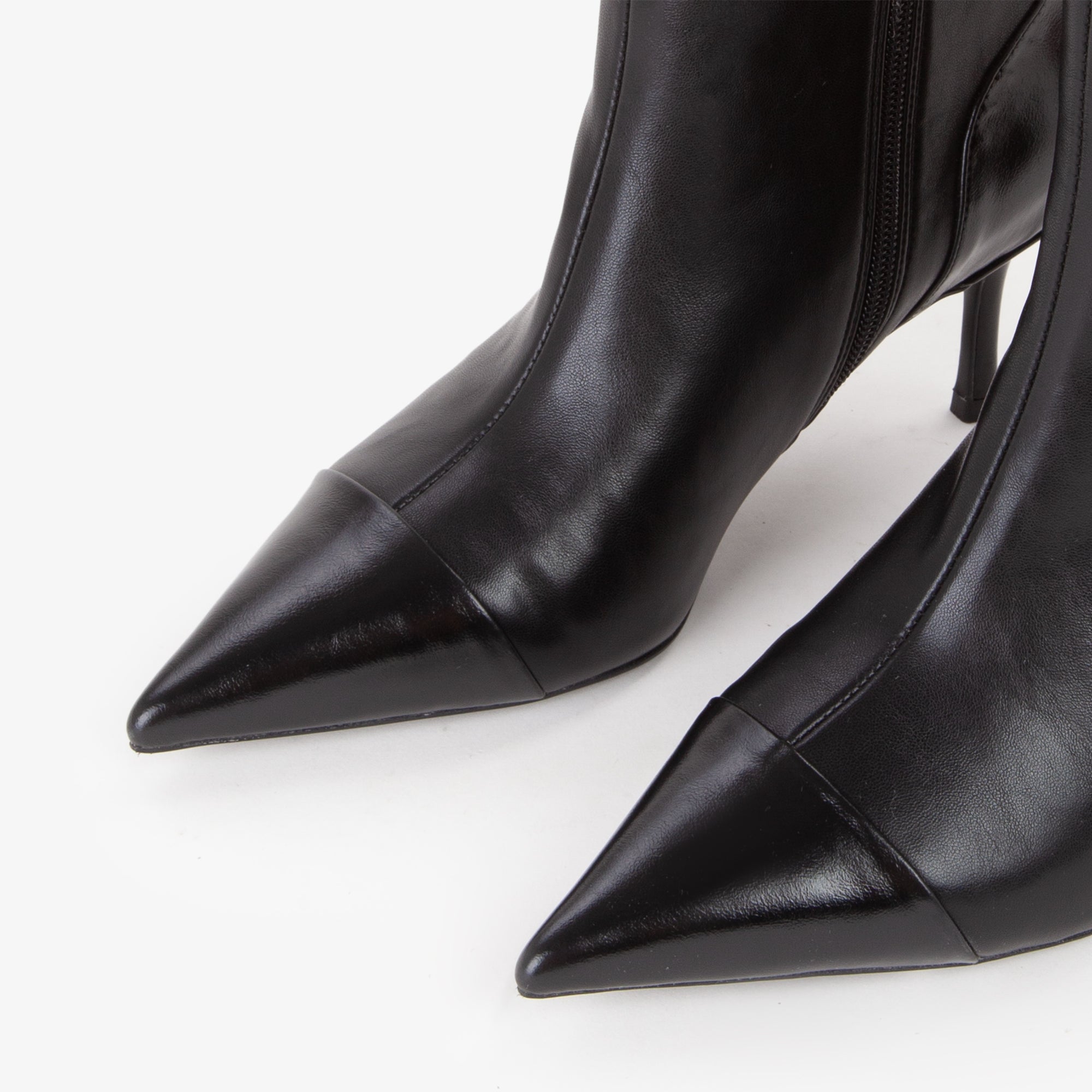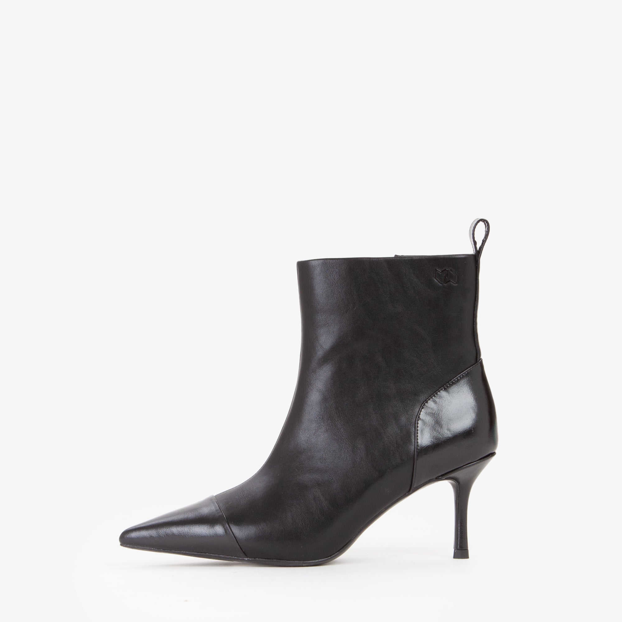 Tronchetto in materiale sintetico dal design pulito ed essenziale, caratterizzato da una tomaia strutturata con punta affusolata e cucitura decorativa frontale. Il tacco a stiletto slanciato, di altezza media, dona uneleganza femminile pur mantenendo una buona portabilità. La suola flessibile in materiale tecnico assicura comfort e stabilità. Il pratico pull-up posteriore agevola la calzata.Perfetto con tailleur o abiti midi, è lalleato ideale per look sofisticati da giorno e da sera.undefined
