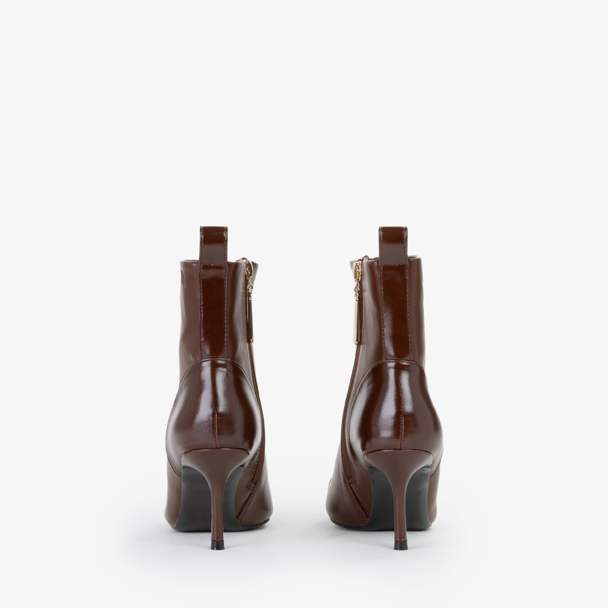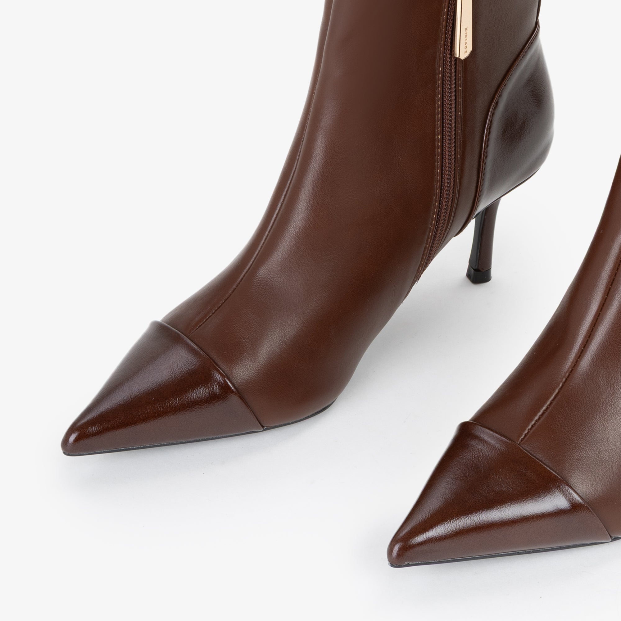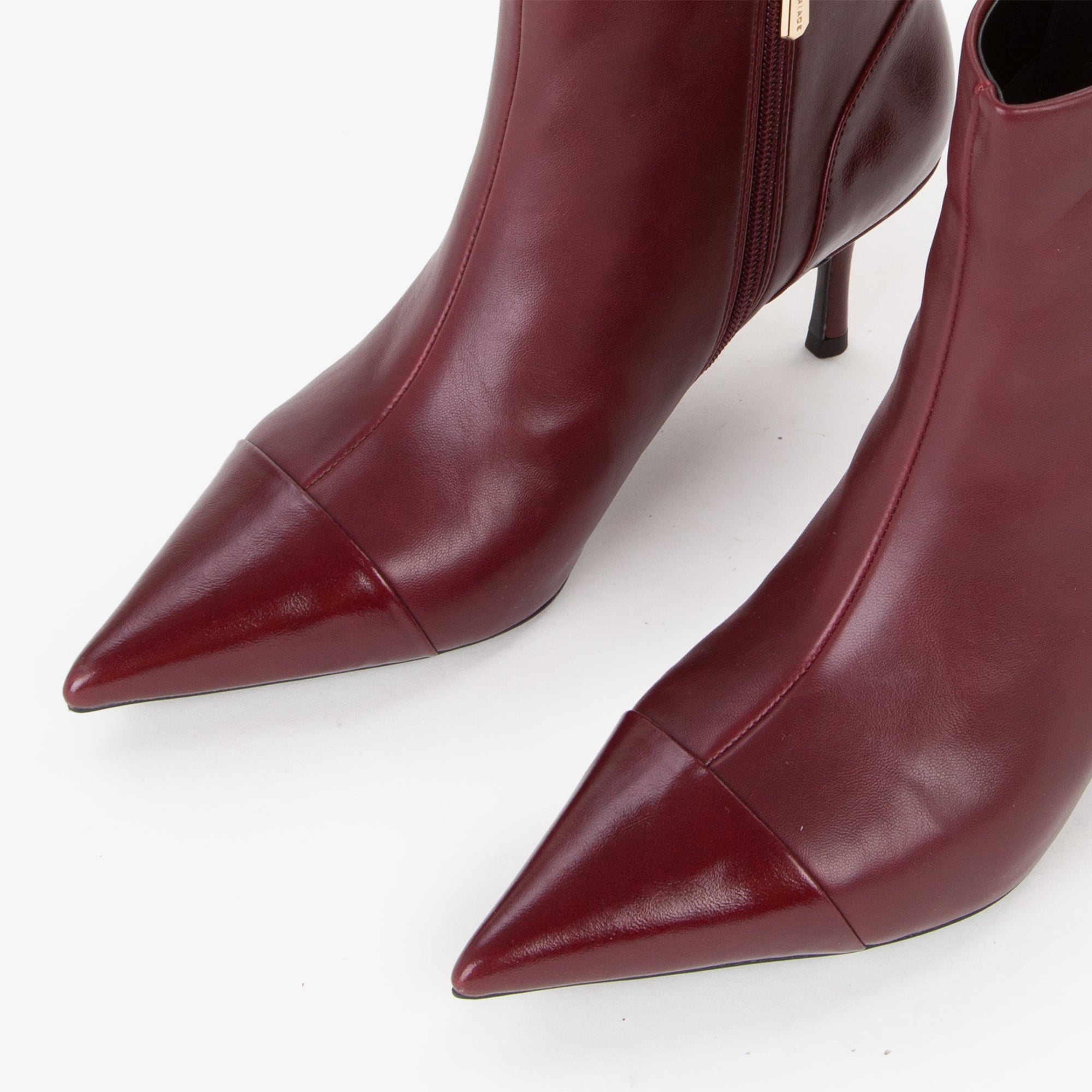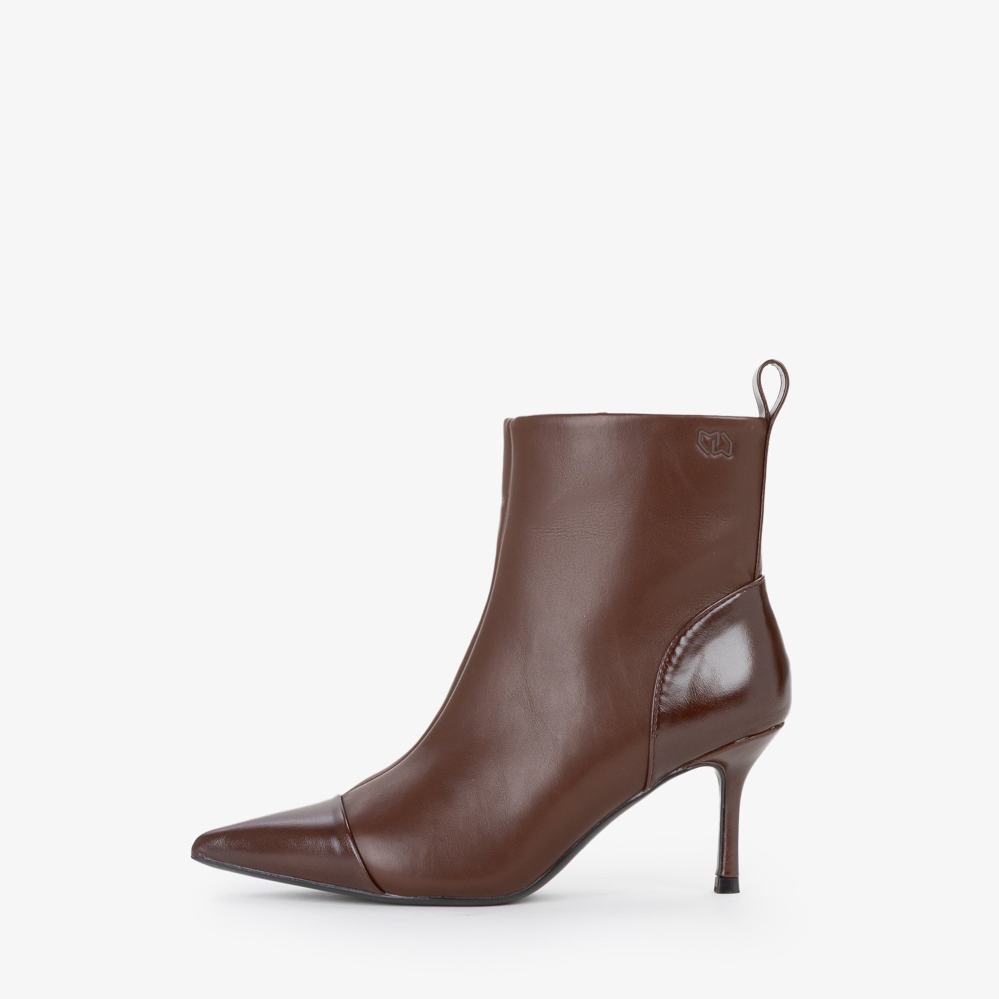 Tronchetto in materiale sintetico dal design pulito ed essenziale, caratterizzato da una tomaia strutturata con punta affusolata e cucitura decorativa frontale. Il tacco a stiletto slanciato, di altezza media, dona uneleganza femminile pur mantenendo una buona portabilità. La suola flessibile in materiale tecnico assicura comfort e stabilità. Il pratico pull-up posteriore agevola la calzata.Perfetto con tailleur o abiti midi, è lalleato ideale per look sofisticati da giorno e da sera.undefined