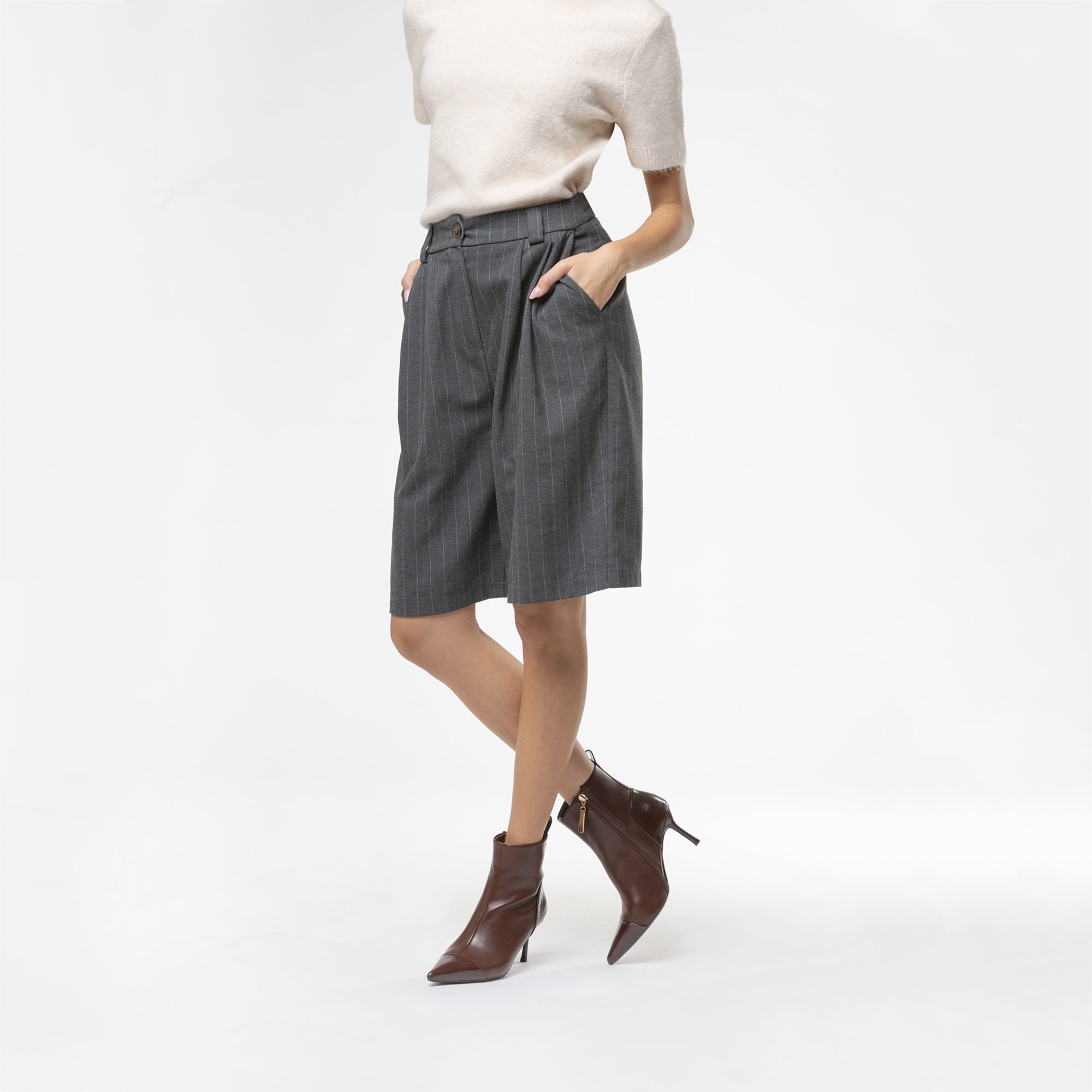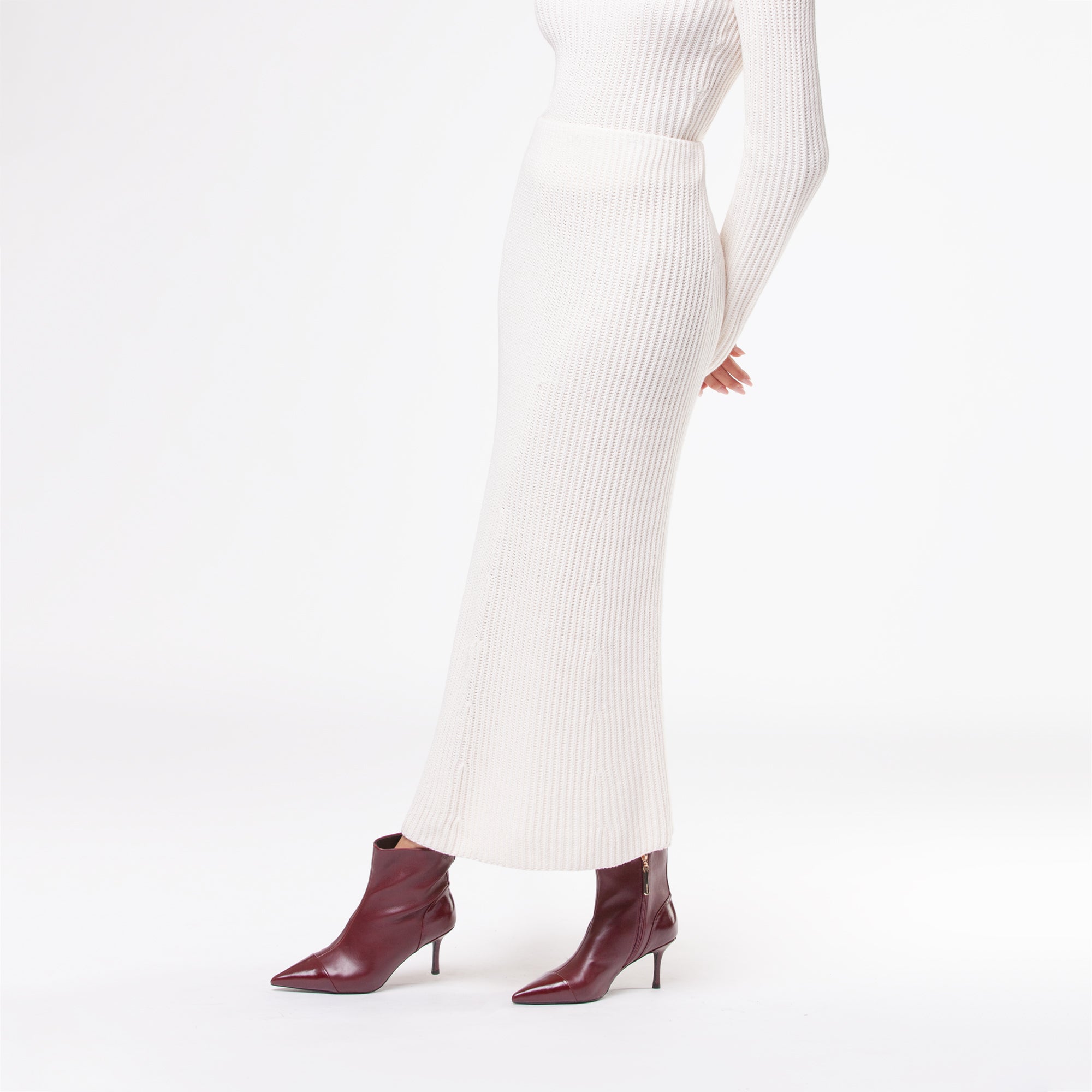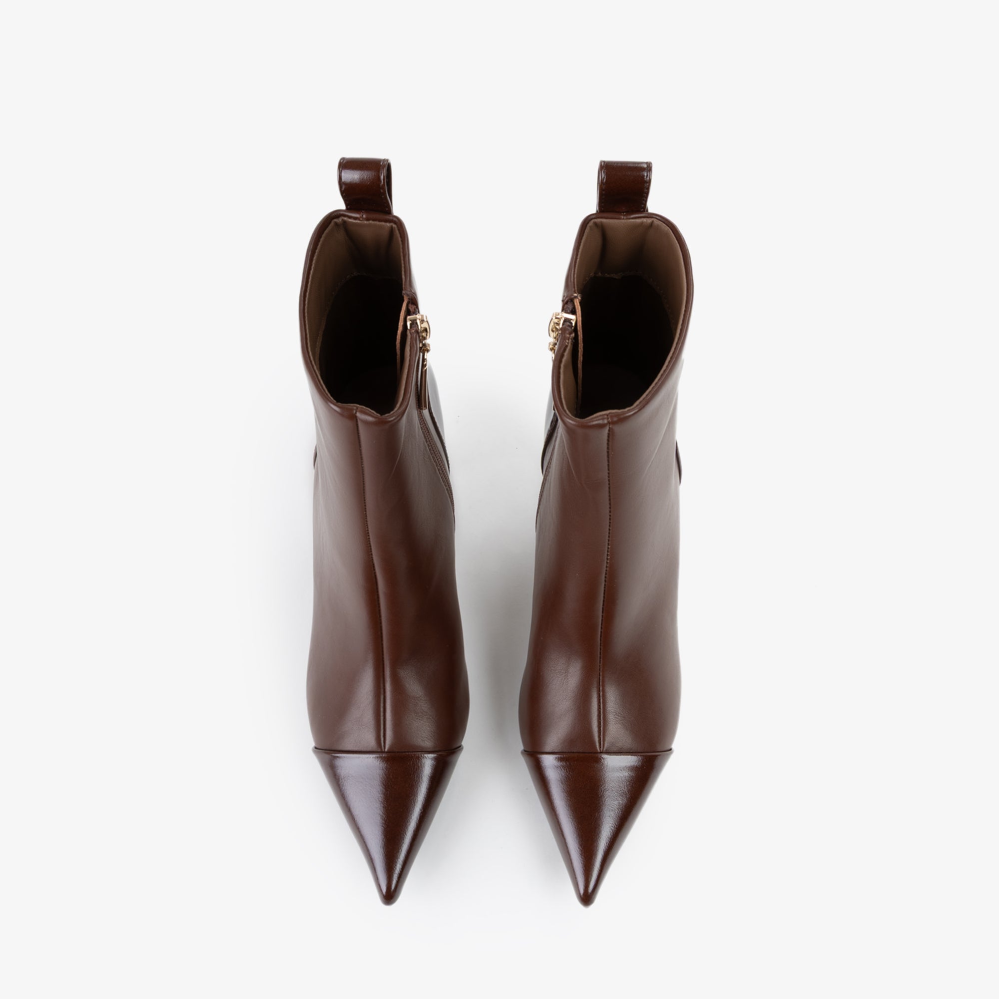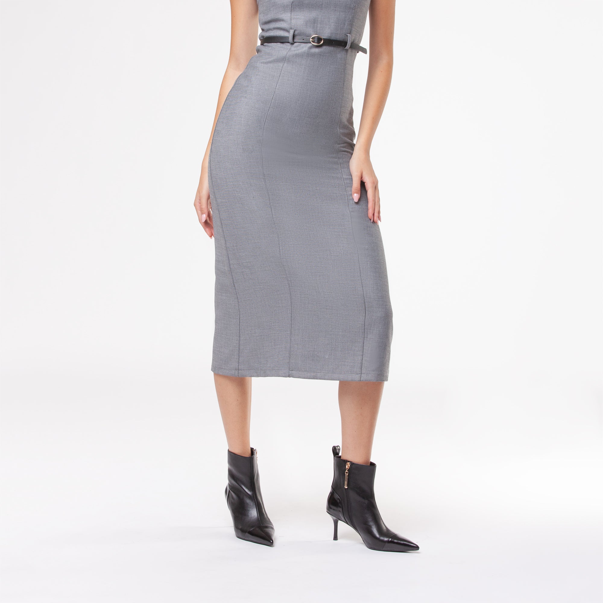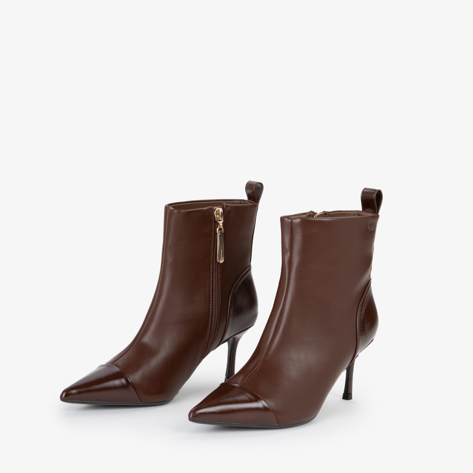 Tronchetto in materiale sintetico dal design pulito ed essenziale, caratterizzato da una tomaia strutturata con punta affusolata e cucitura decorativa frontale. Il tacco a stiletto slanciato, di altezza media, dona uneleganza femminile pur mantenendo una buona portabilità. La suola flessibile in materiale tecnico assicura comfort e stabilità. Il pratico pull-up posteriore agevola la calzata.Perfetto con tailleur o abiti midi, è lalleato ideale per look sofisticati da giorno e da sera.undefined