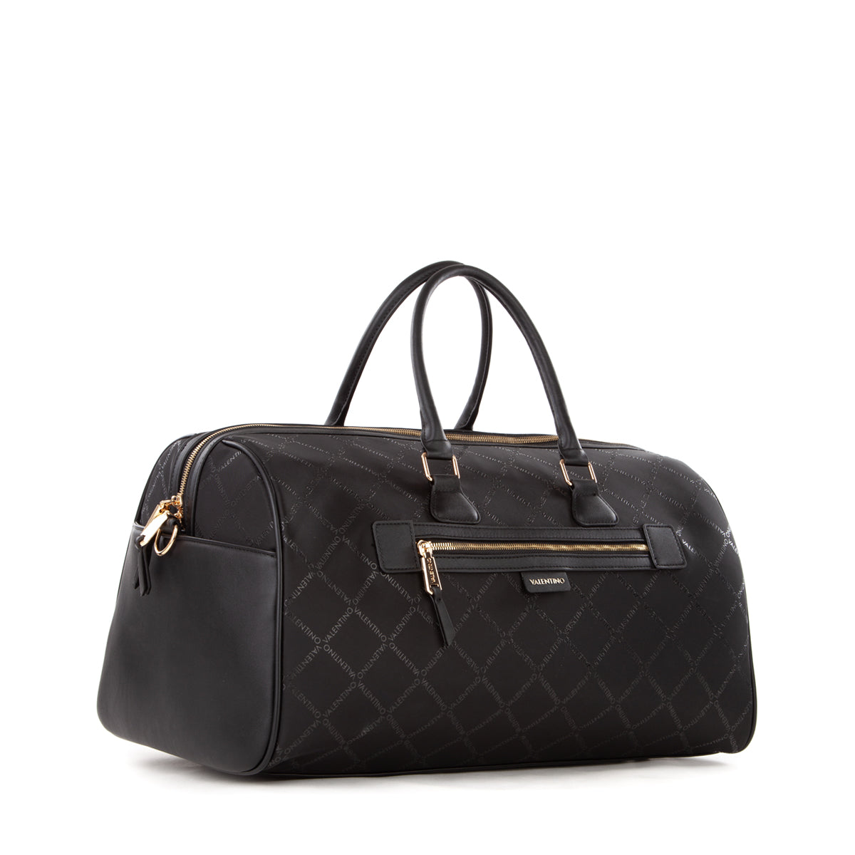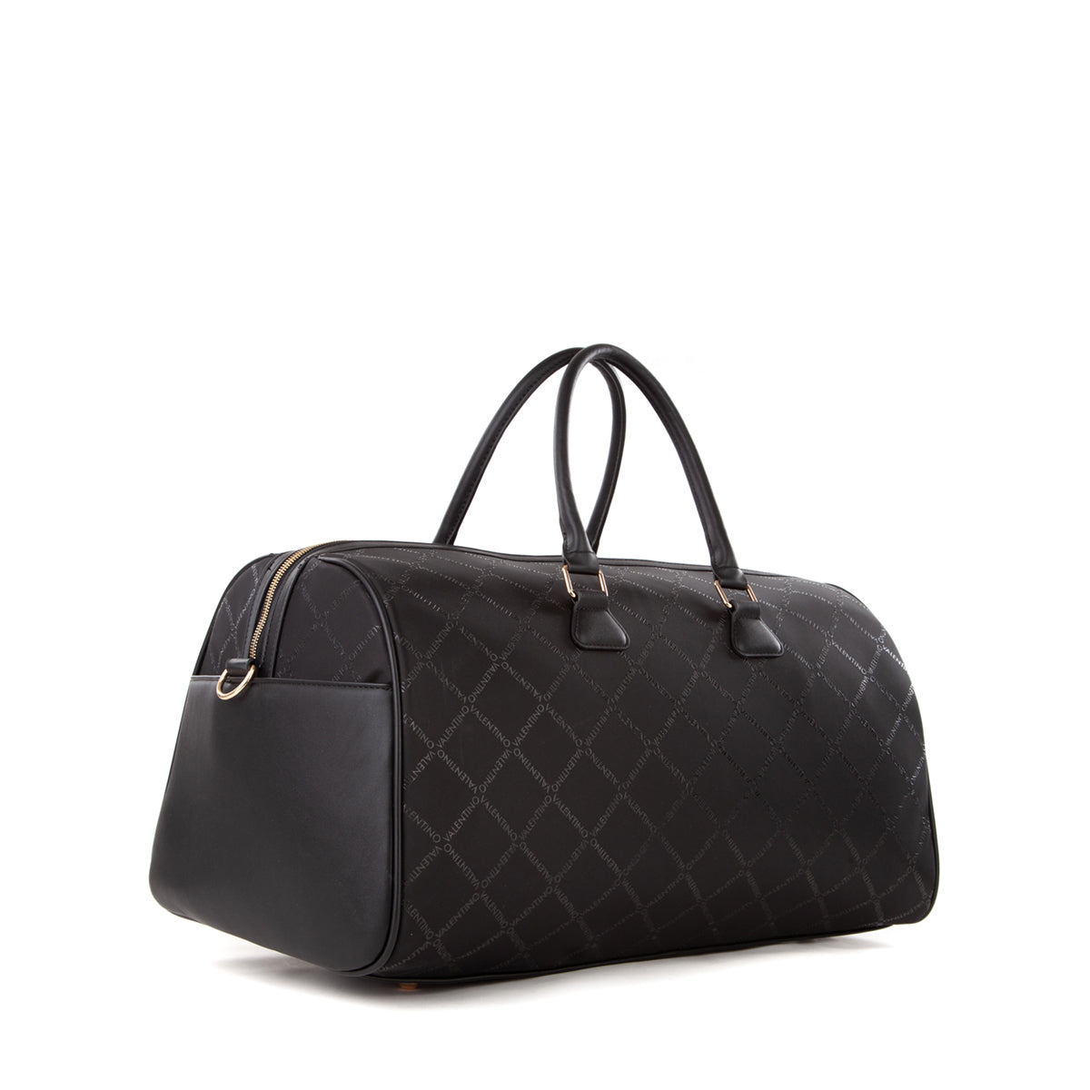 Weekender in nylon riciclato e personalizzato, con riporto in nappa in tinta. E' dotata di una tracolla in nastro personalizzata.