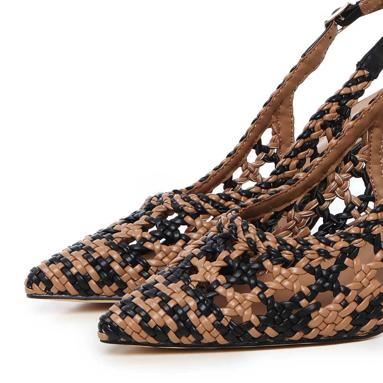 Entdecken Sie die neuen Miriade-Décolleté, das Must-Have für Frühling/Sommer! Mit einem geflochtenen Obermaterial, das alle Blicke auf sich zieht, verleihen diese spitzen Schmuckstücke Ihrem Outfit einen Hauch von Klasse. Der verstellbare Riemen umschließt das Fußgelenk und sorgt für den perfekten Sitz, während der Stiletto-Absatz Ihnen Länge verleiht, ohne auf Komfort zu verzichten. Perfekt für jeden Look, begeistern sie mit ihrer schlanken Silhouette und zeitlosen Eleganz.