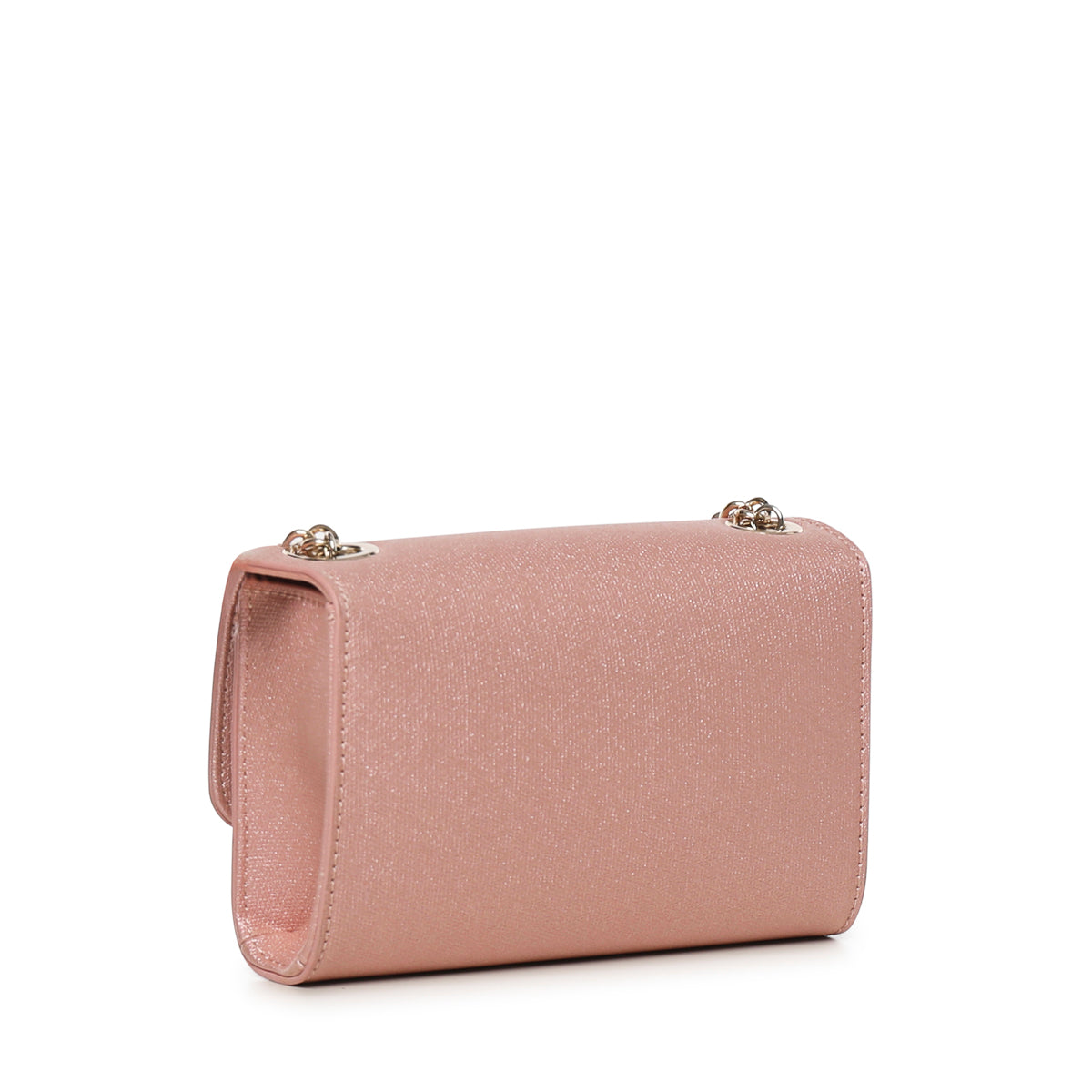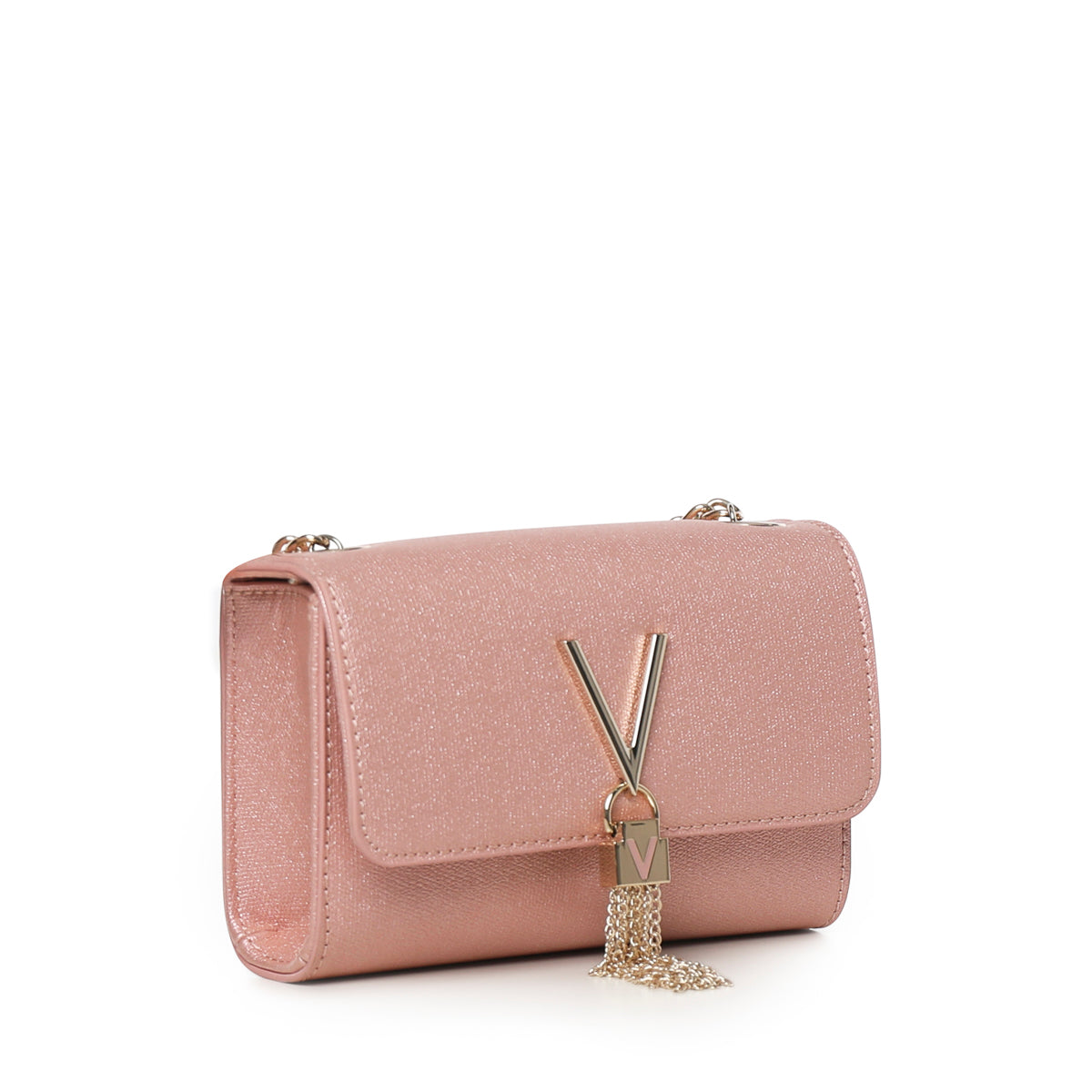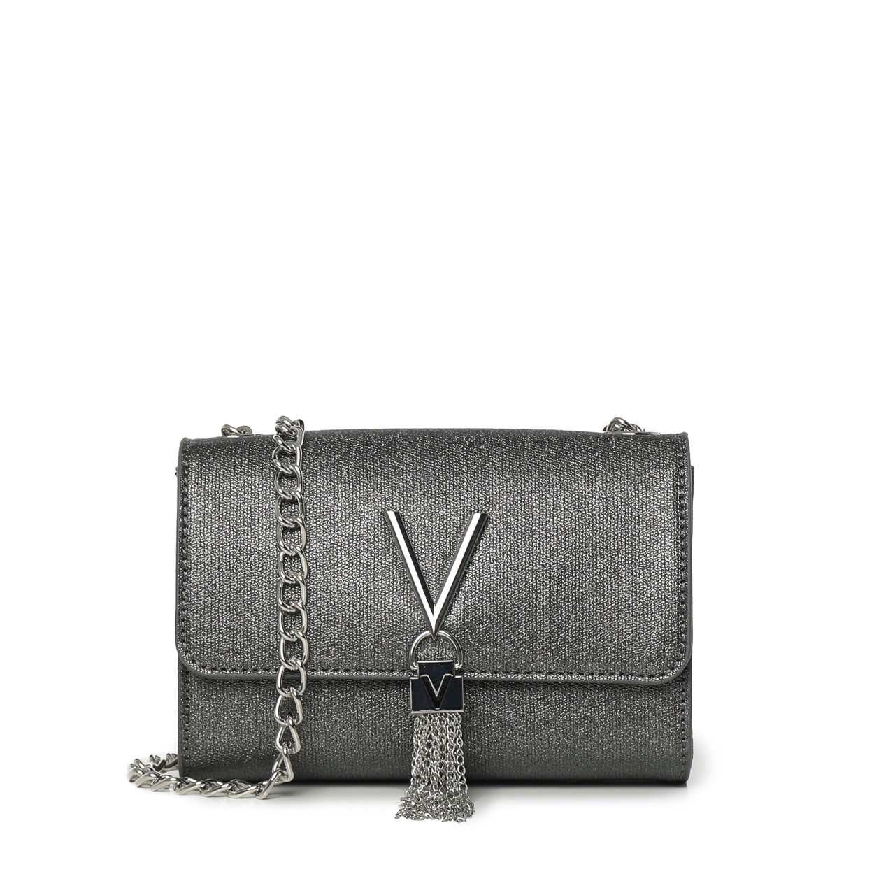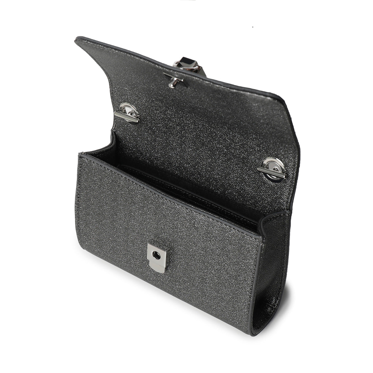 Pattina con tracolla in catena. La personalizzazione V presenta il dettaglio con lucchetto e micro catene pendenti.