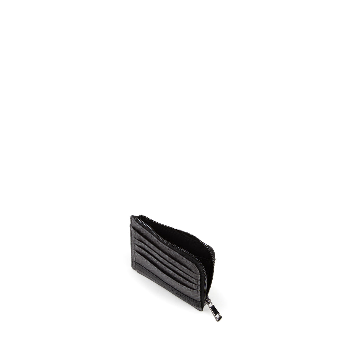 portacarte con chiusura a zip abbinato con stampa logata su superficie esterna e logo rialzato su frontale