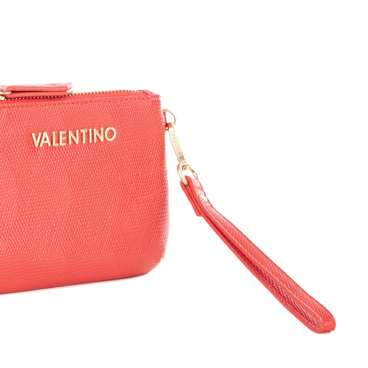 Diese Valentino Pochette ist das schicke und funktionale Accessoire, das Sie gesucht haben! Mit einem oberen Reißverschluss sorgt sie für die Sicherheit Ihrer Gegenstände, während der abnehmbare Handgelenkriemen Ihnen vielseitige Eleganz für jede Gelegenheit bietet. Mit einer körnigen Textur und dem aufgedruckten Markenlogo auf der Vorderseite ist sie ein ikonisches Stück, das nicht unbemerkt bleibt. Perfekt, um Ihr Outfit mit einem Hauch von Klasse zu vervollständigen!