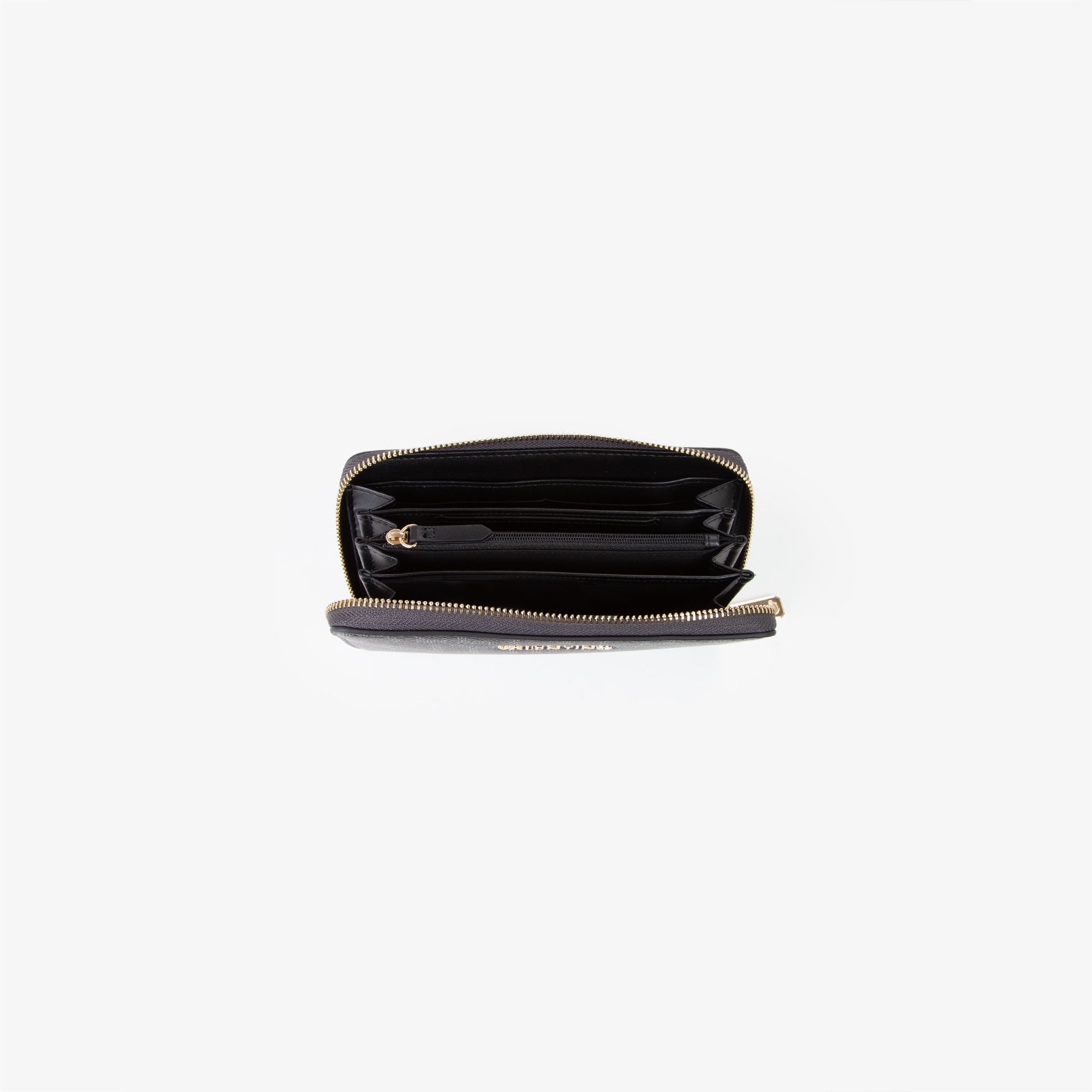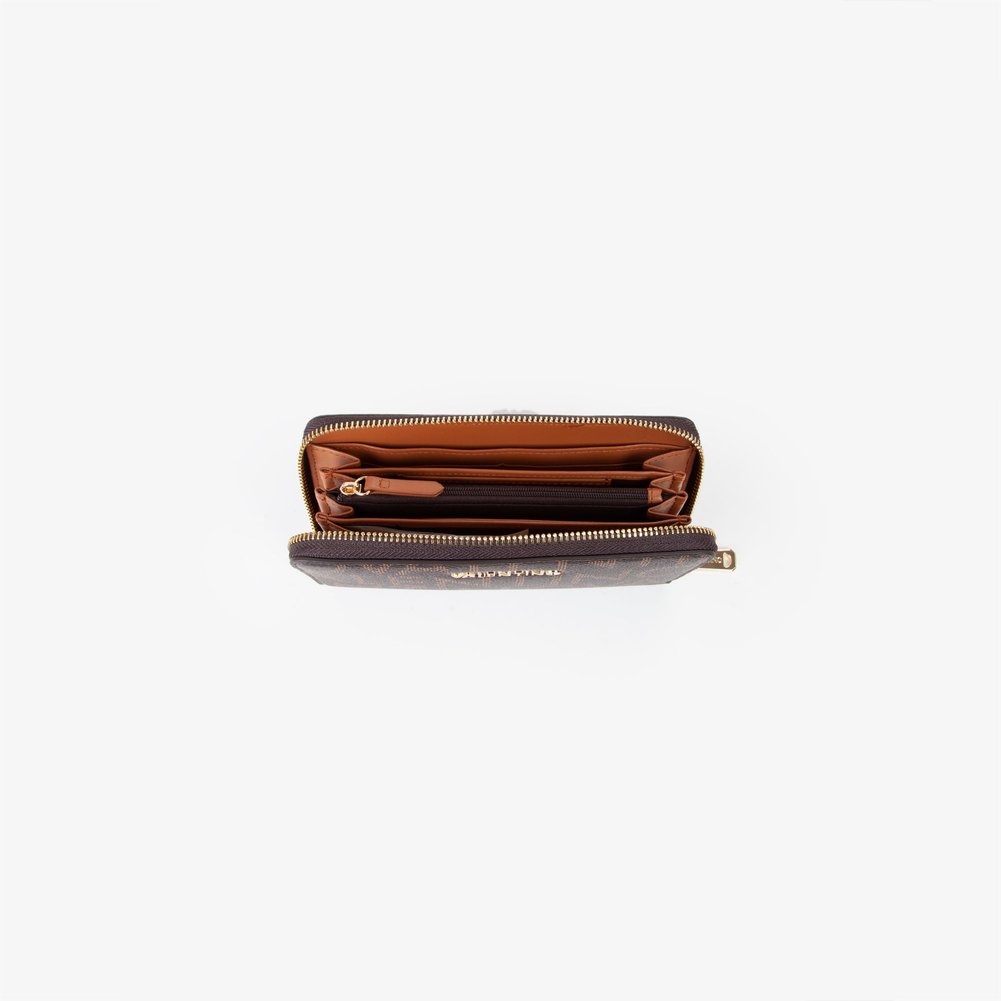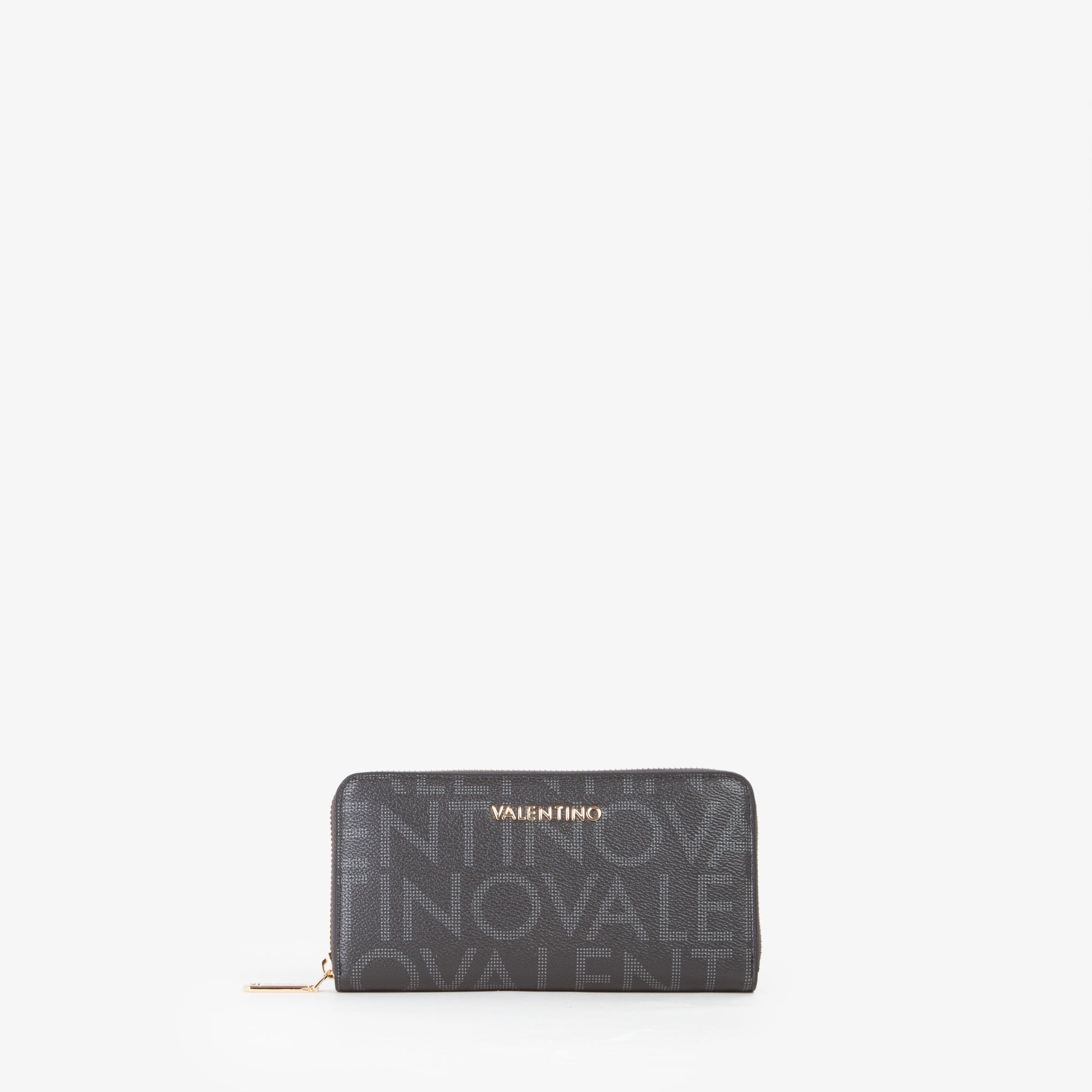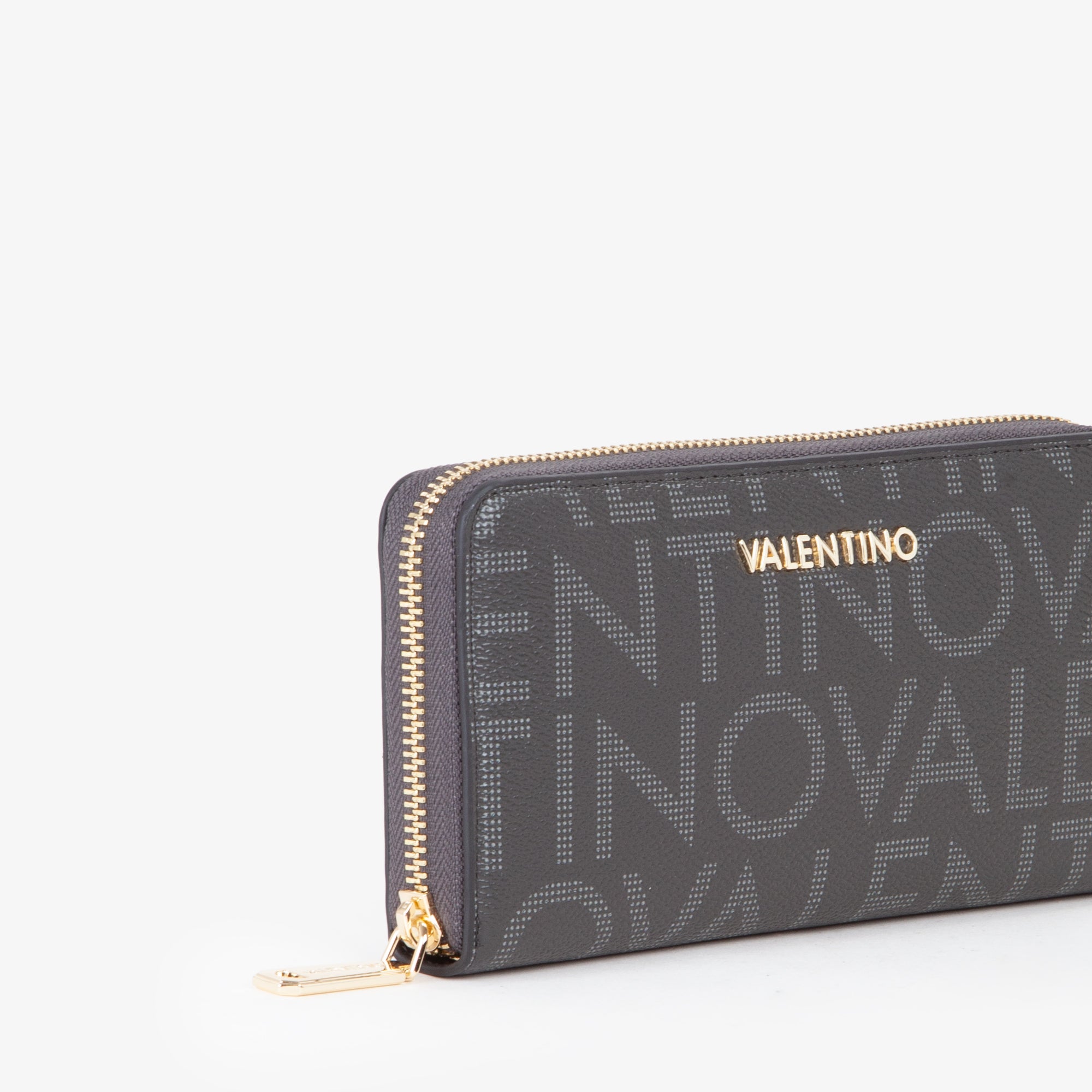 Portafoglio con stampa all over logato su base grana riciclata, e dettagli in nappa