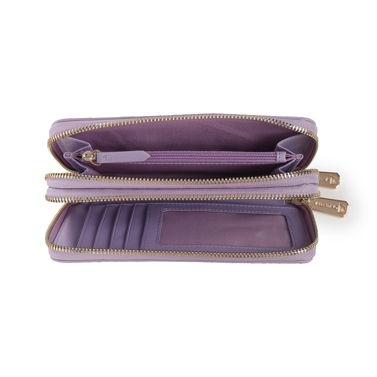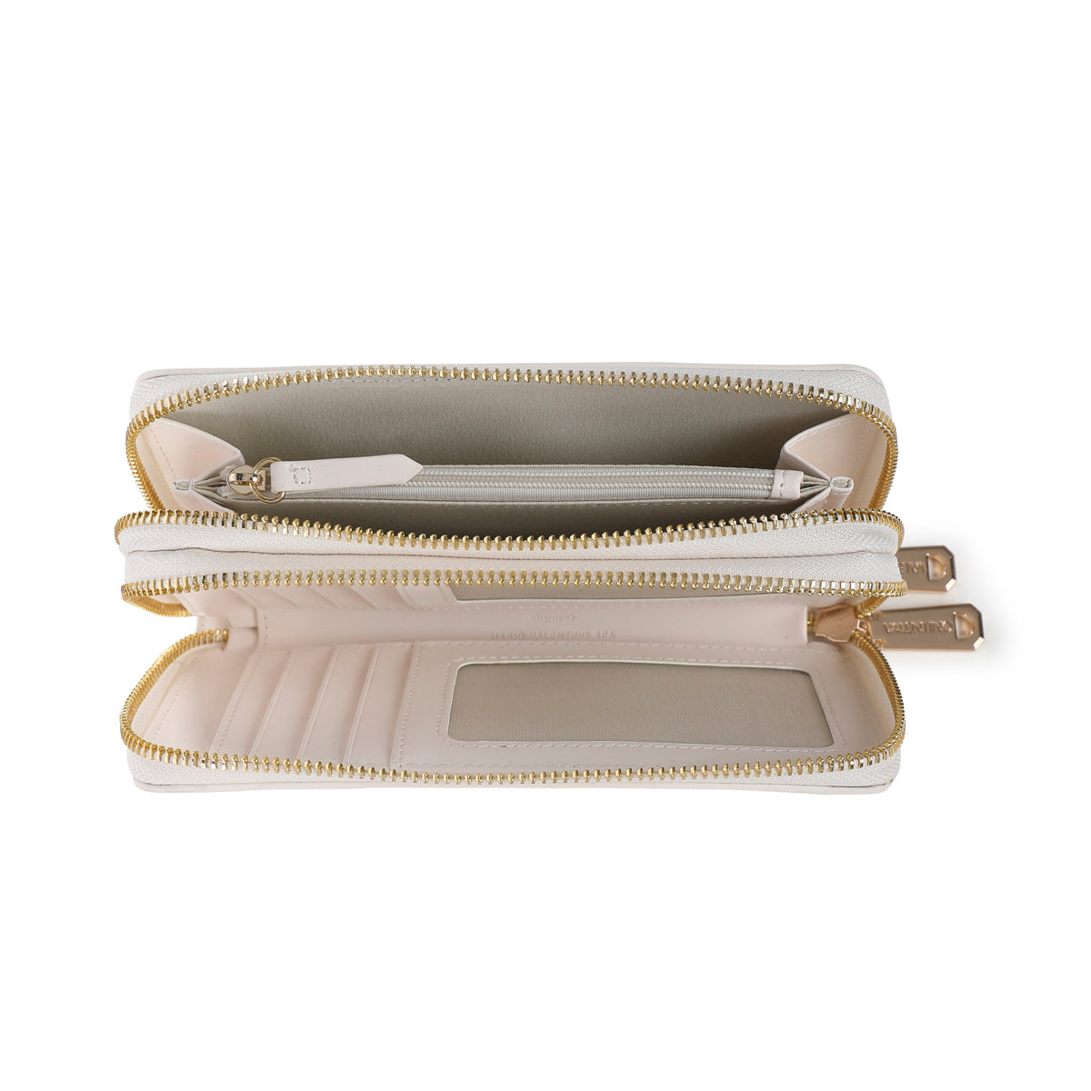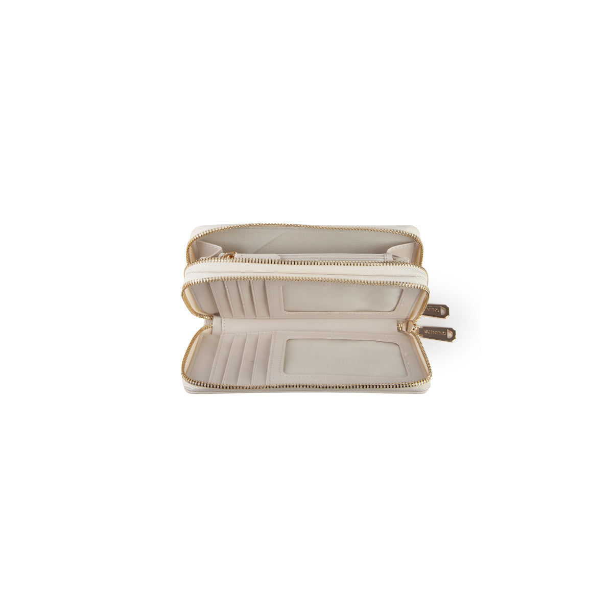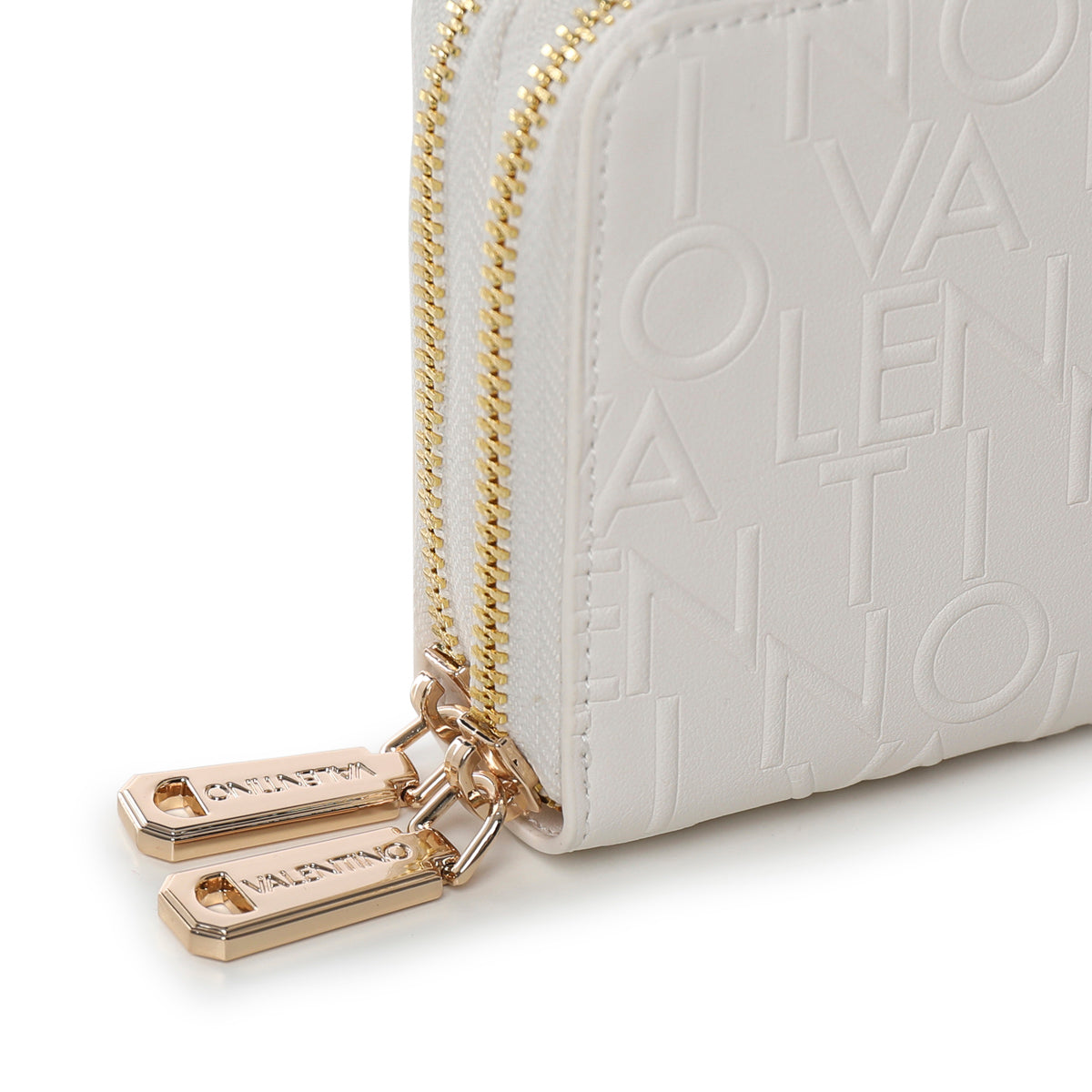 Entdecken Sie das Accessoire, das Ihren Alltagsstil hebt: ein praktischer Alleskönner von Valentino, perfekt, um alles stilvoll in Ordnung zu halten. Elegante Textur mit dem erhabenen Markennamen, die ein anspruchsvolles Design offenbart; der Reißverschluss sorgt für Sicherheit und Komfort. Innen finden Sie gut organisierte Fächer für Ihre Karten und eine Reißverschlusstasche für kleinere Gegenstände. Der rechteckige Reißverschlussanhänger verleiht einen einzigartigen Hauch von Klasse. Unverzichtbar und zugleich schick!