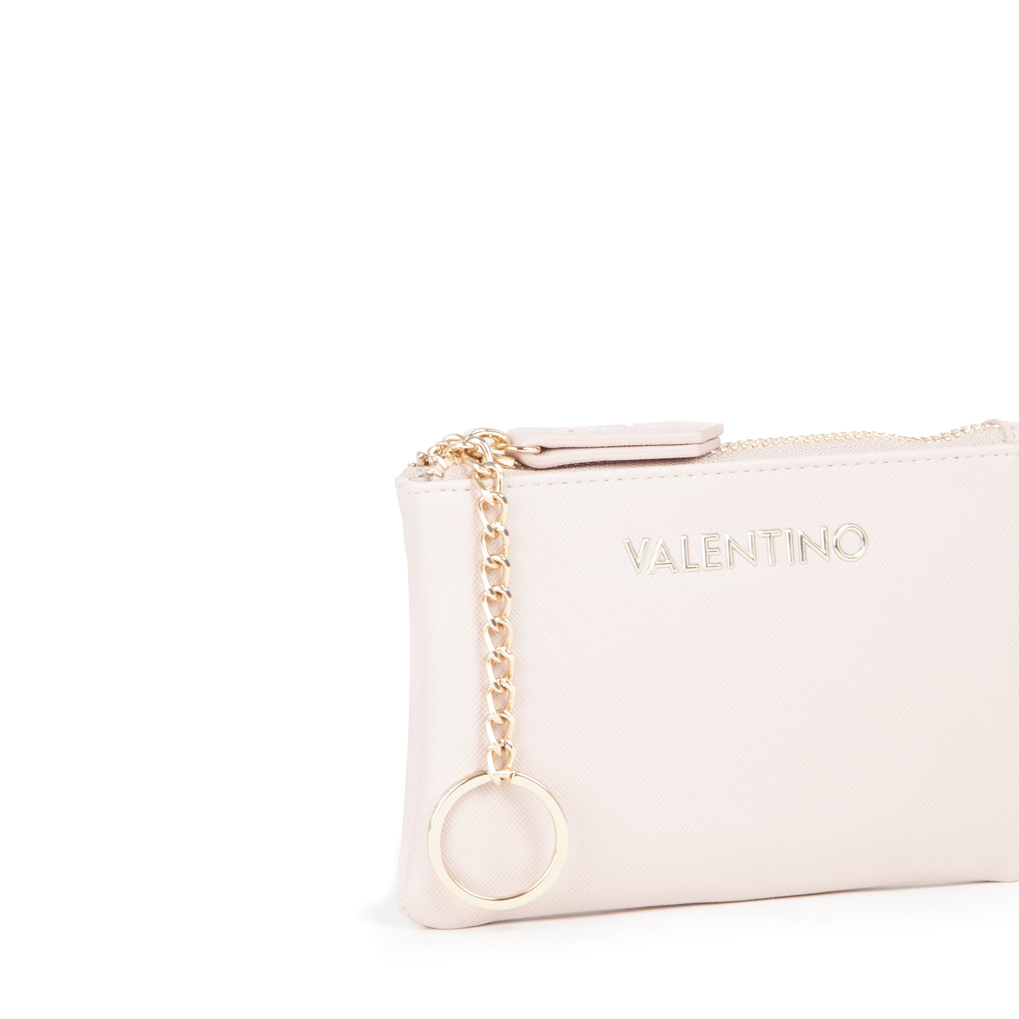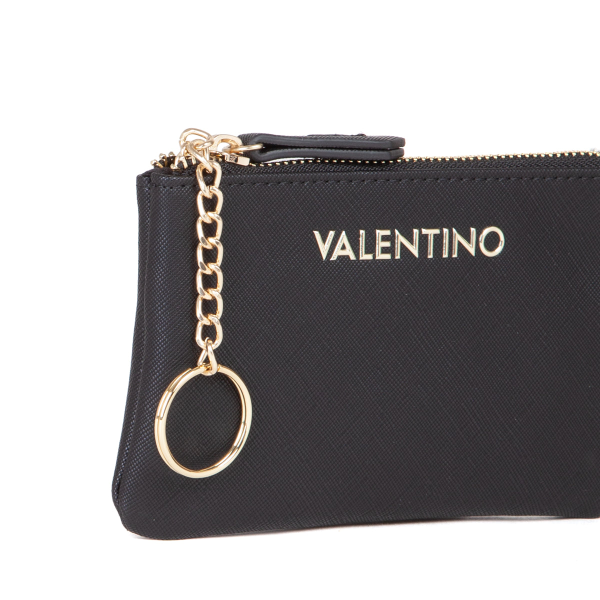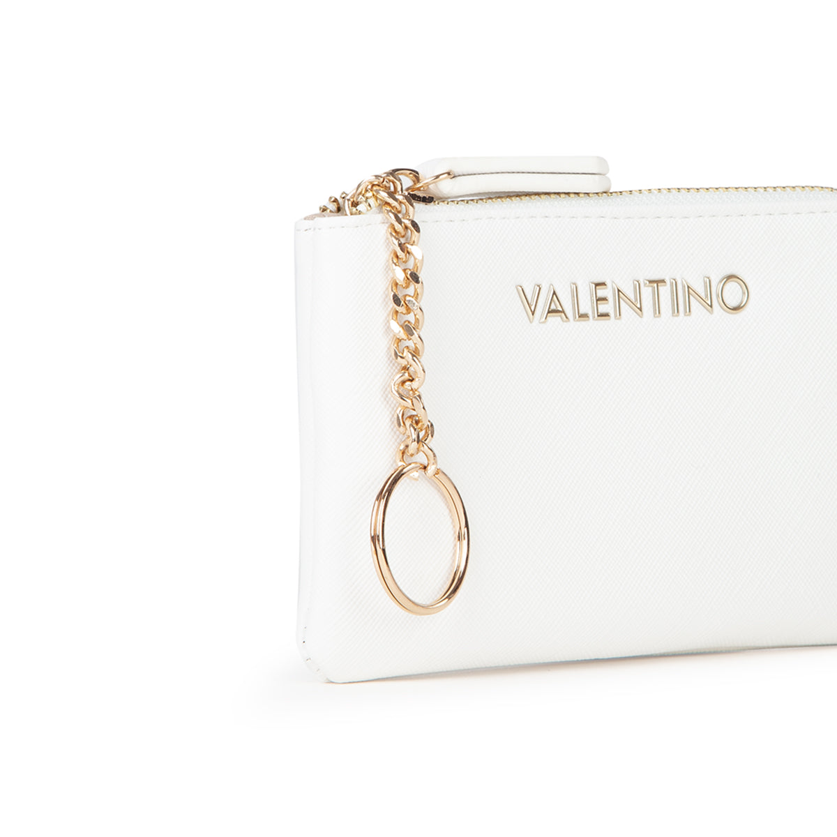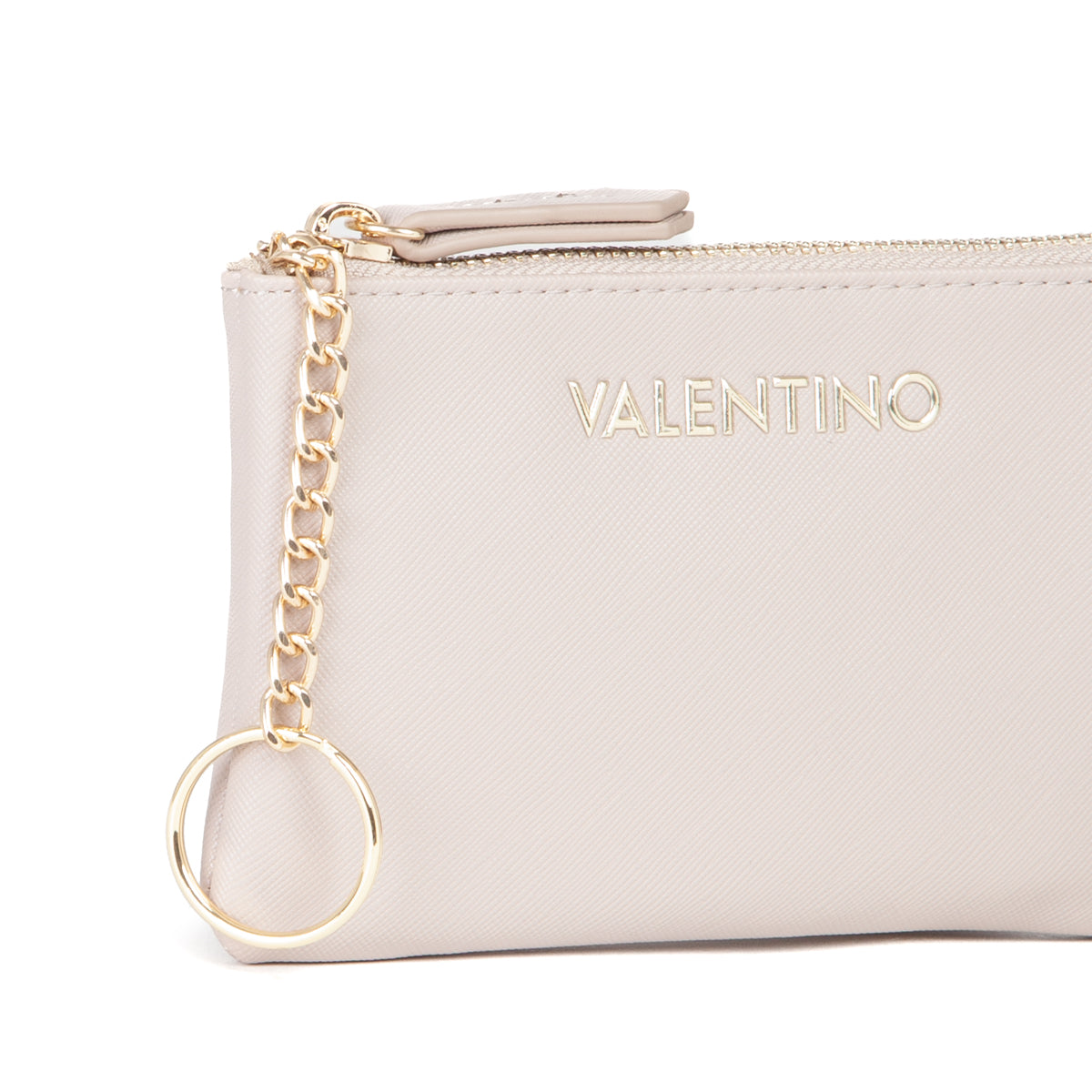 Entdecken Sie den eleganten Charme und die Praktikabilität dieses Accessoires von Valentino, perfekt für einen Hauch von Klasse in Ihrem Alltag. Ein unverwechselbarer goldener Reißverschluss bereichert das Design und bietet einen sicheren und einfachen Verschluss. Das glänzende Detail setzt sich mit einem Ketten-Schlüsselanhänger fort und verleiht einen Hauch von Raffinesse und Nützlichkeit. Mit einem unverwechselbaren Stil zeichnet sich dieses kompakte Accessoire durch sein markantes Design aus, das durch den hervorgehobenen Markenschriftzug veredelt wird. Ein Must-have für jede Gelegenheit, vom Brunch bis zur Arbeit!