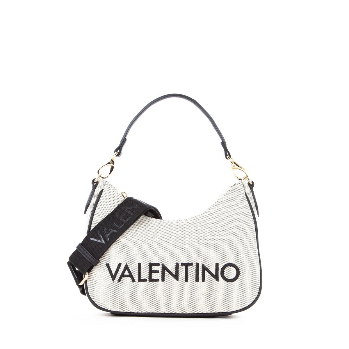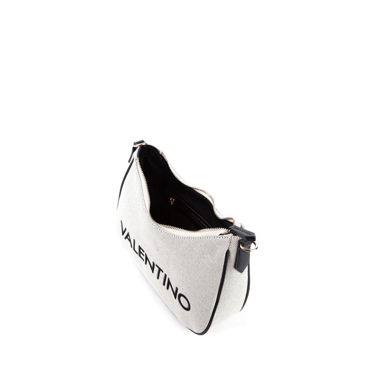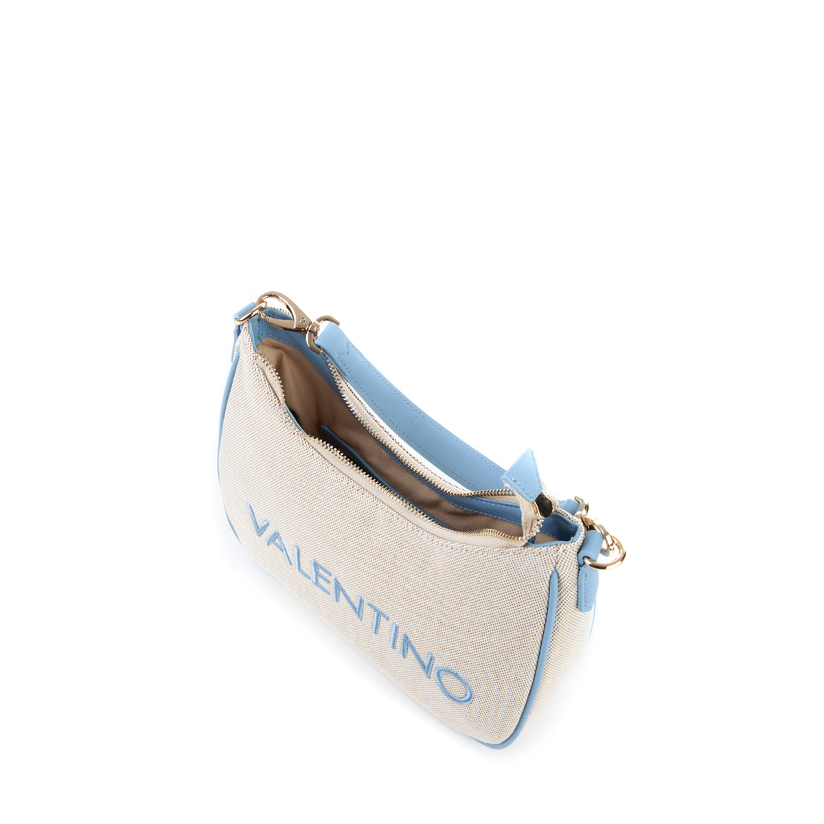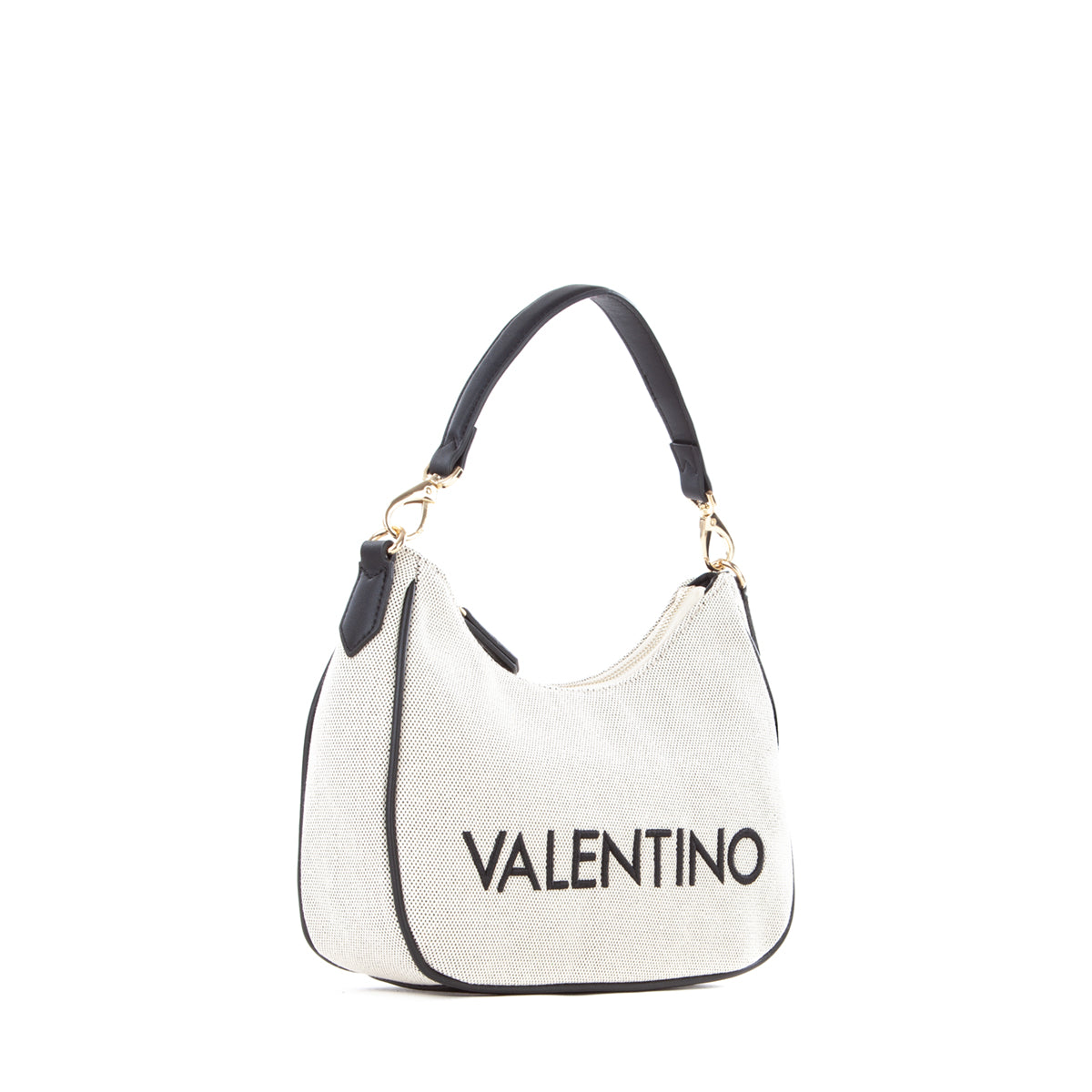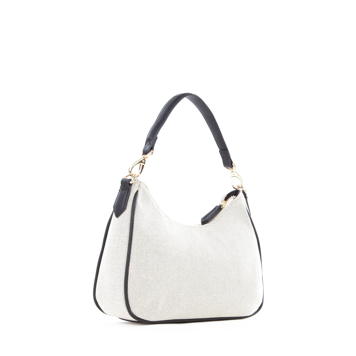 Sacca a spalla in canvas con riporto in nappa a contrasto. La personalizzazione è ricamata in tinta al riporto. E' dotata di una tracolla di servizio in nastro in tinta al riporto.