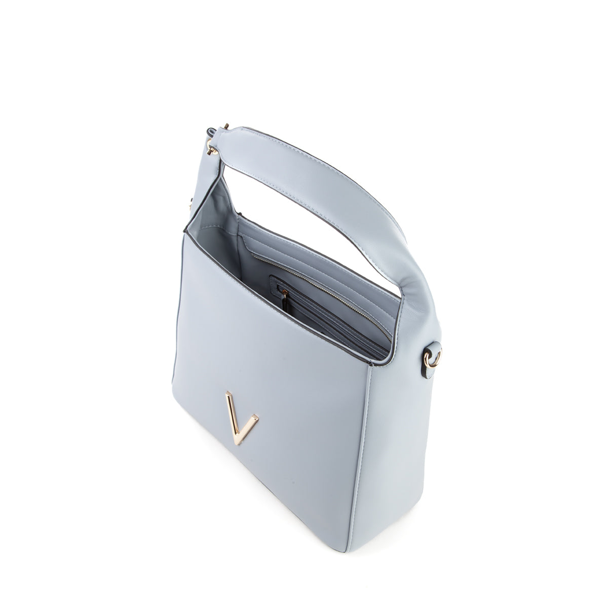Sacca in nappa, con logo in metallo e dettaglio con attacco manico personalizzato.
