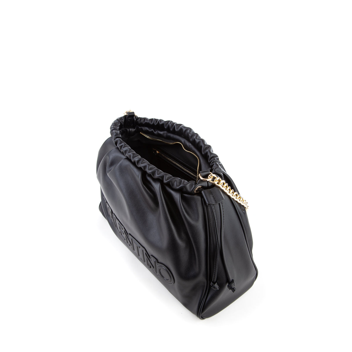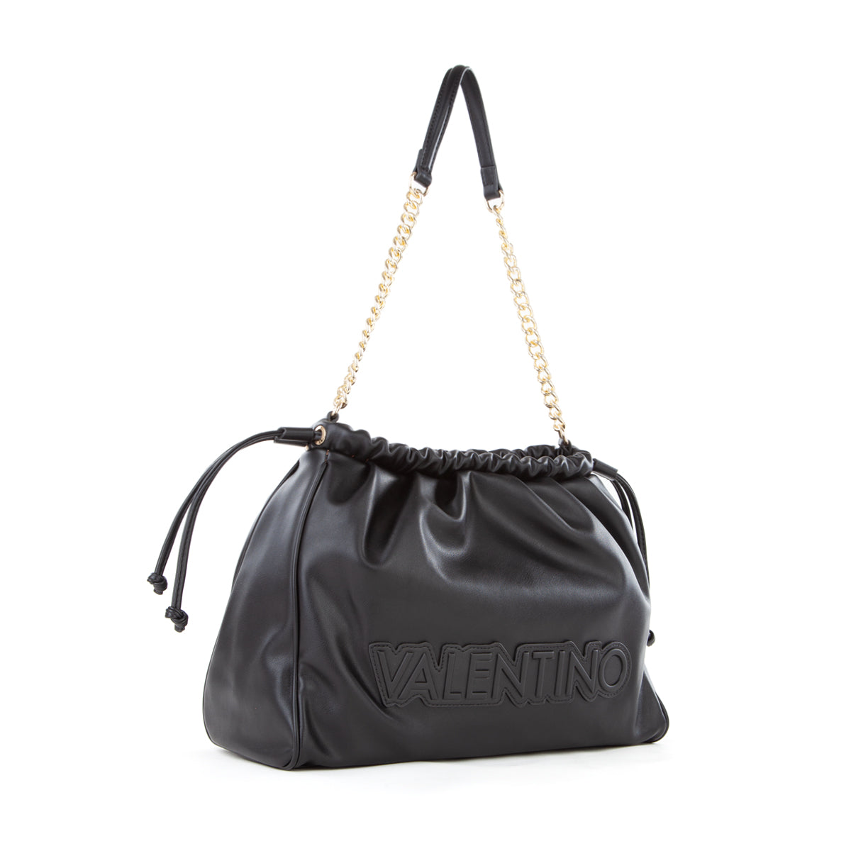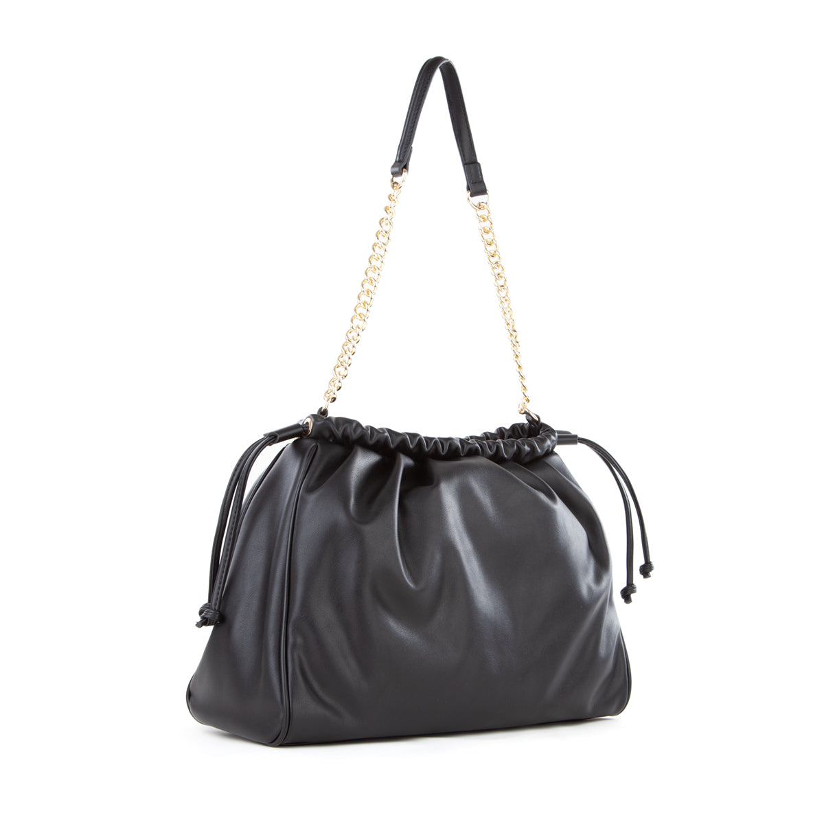 Sacca in nappa, con personalizzazione in metallo e verniciata in tinta al corpo borsa. E' dotata di una tracolla staccabile di servizio in nappa.