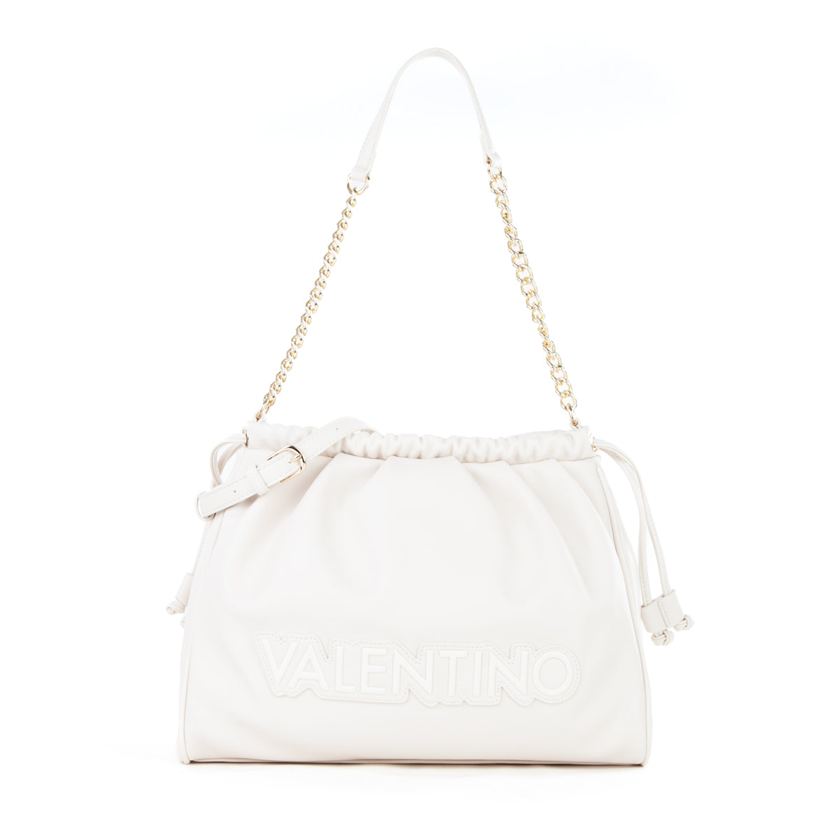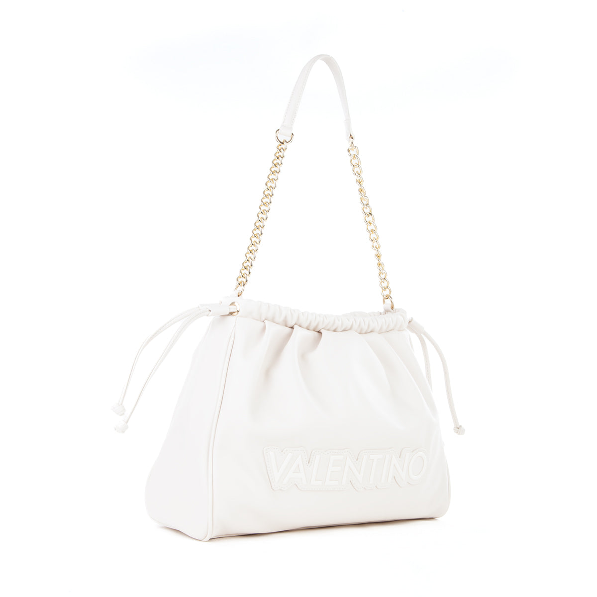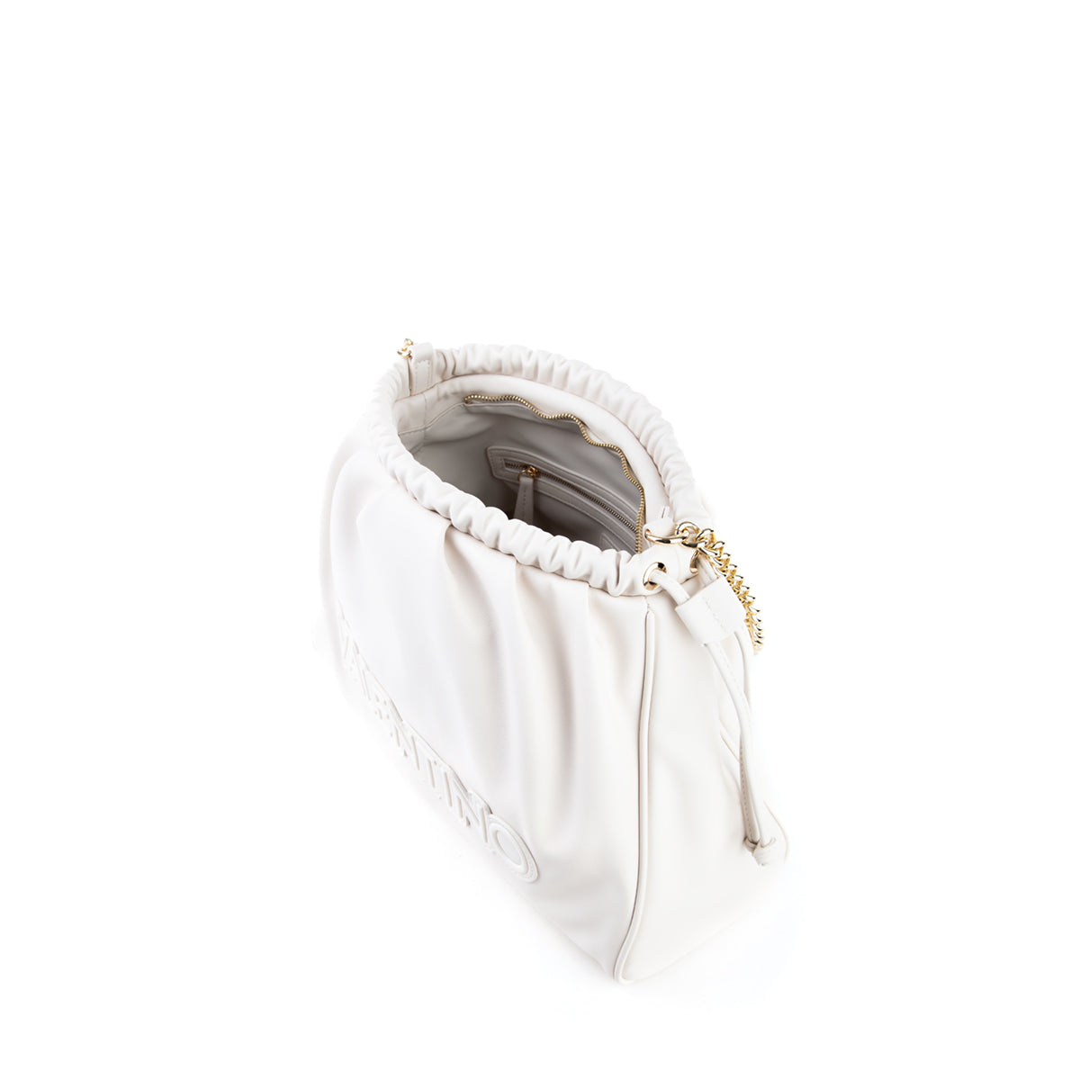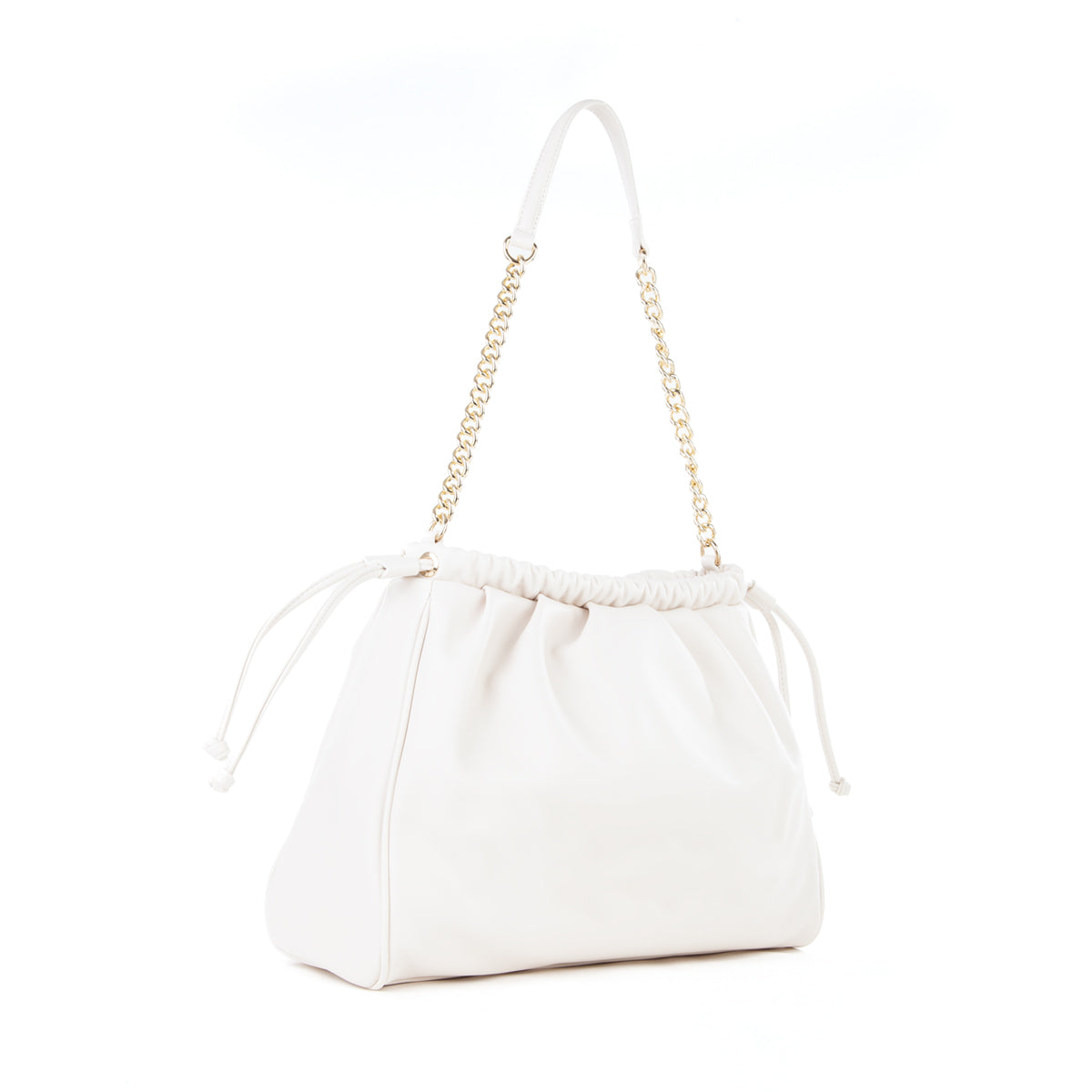 Sacca in nappa, con personalizzazione in metallo e verniciata in tinta al corpo borsa. E' dotata di una tracolla staccabile di servizio in nappa.