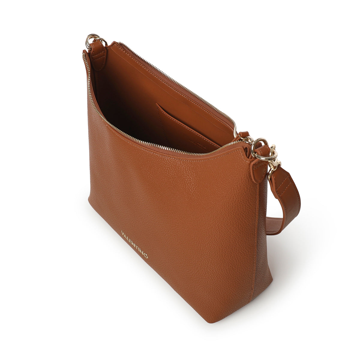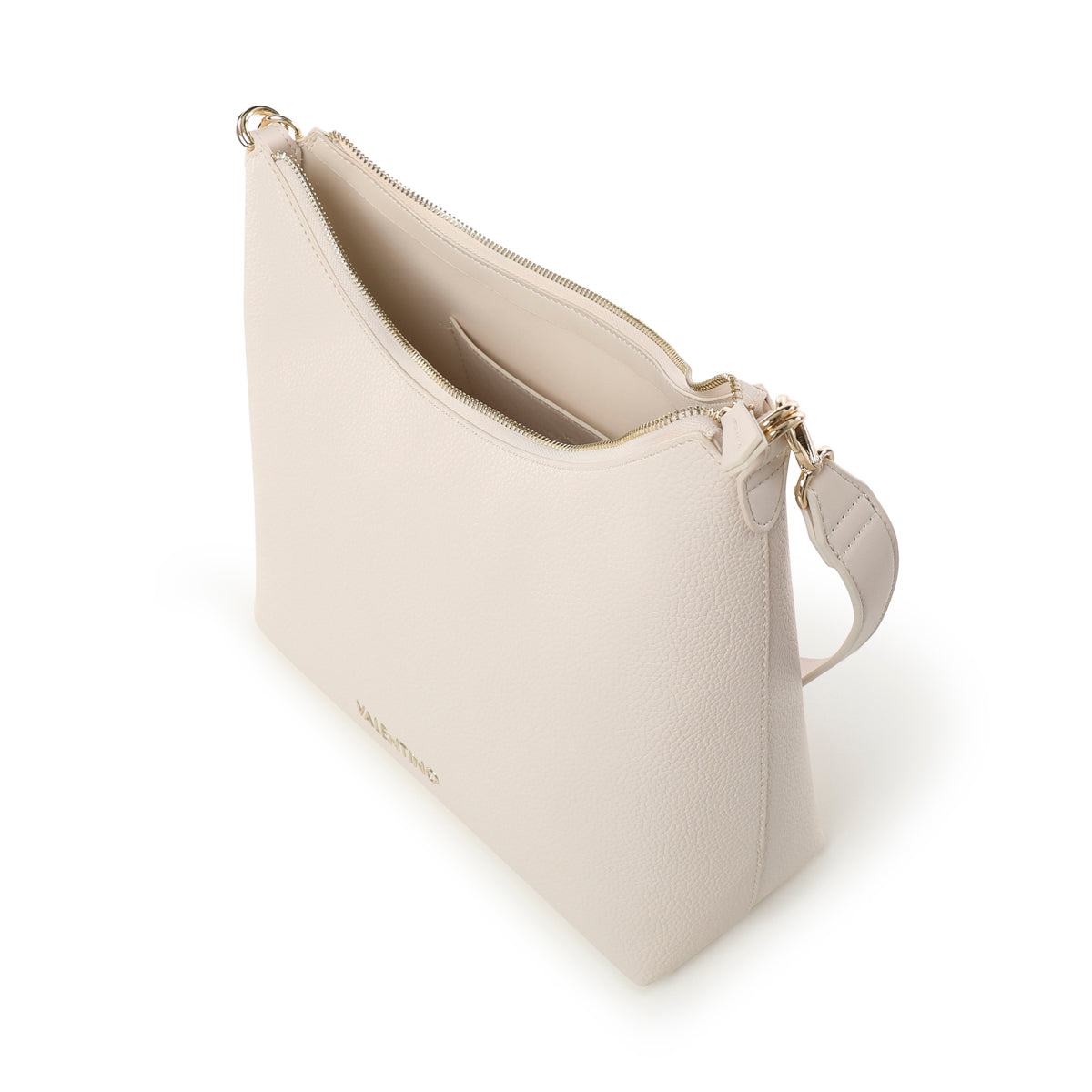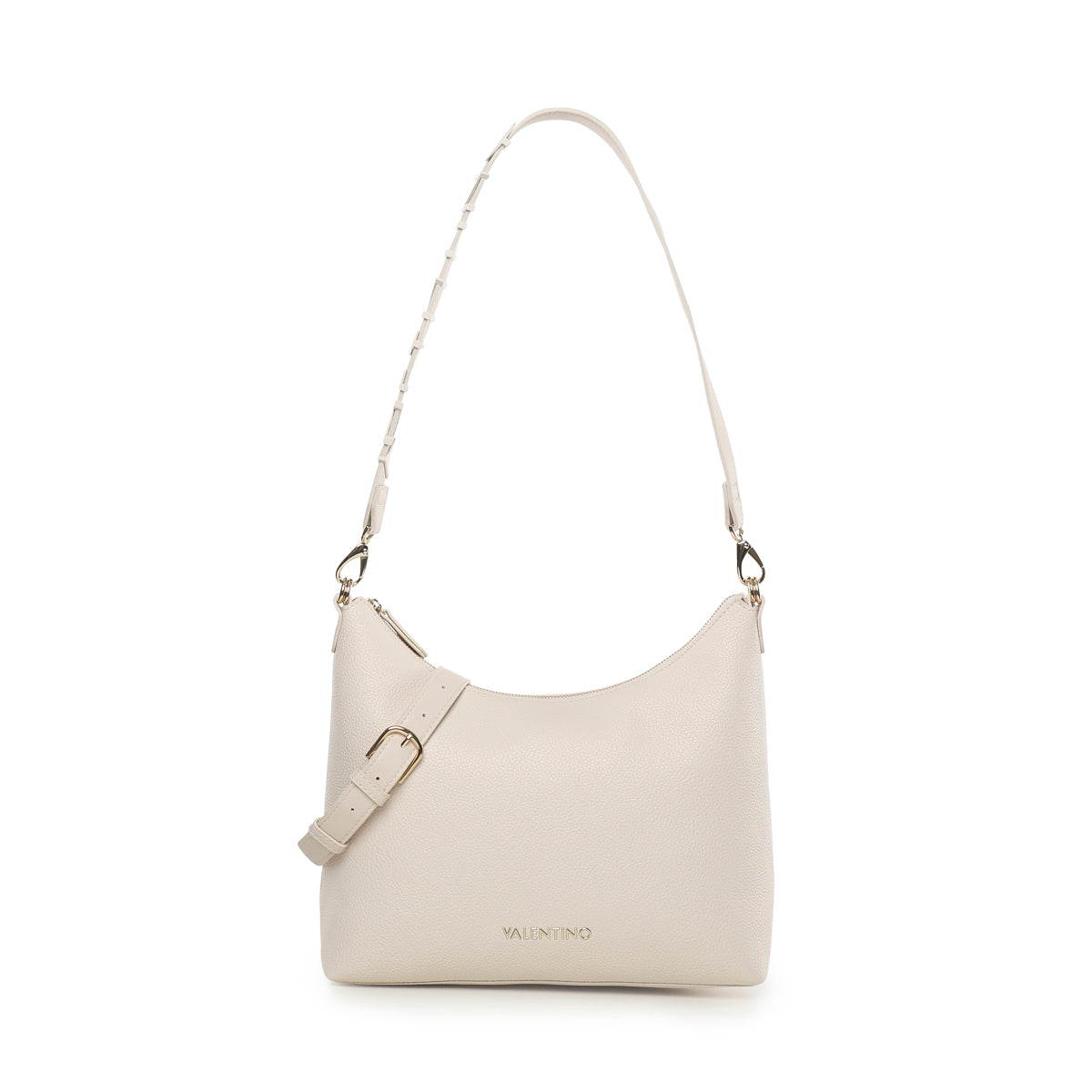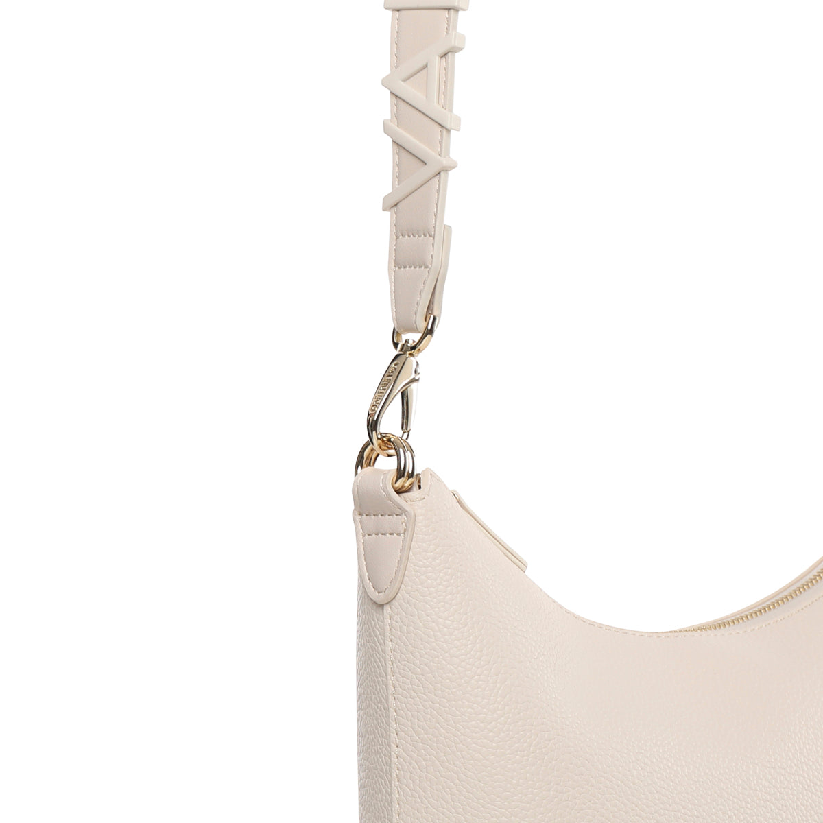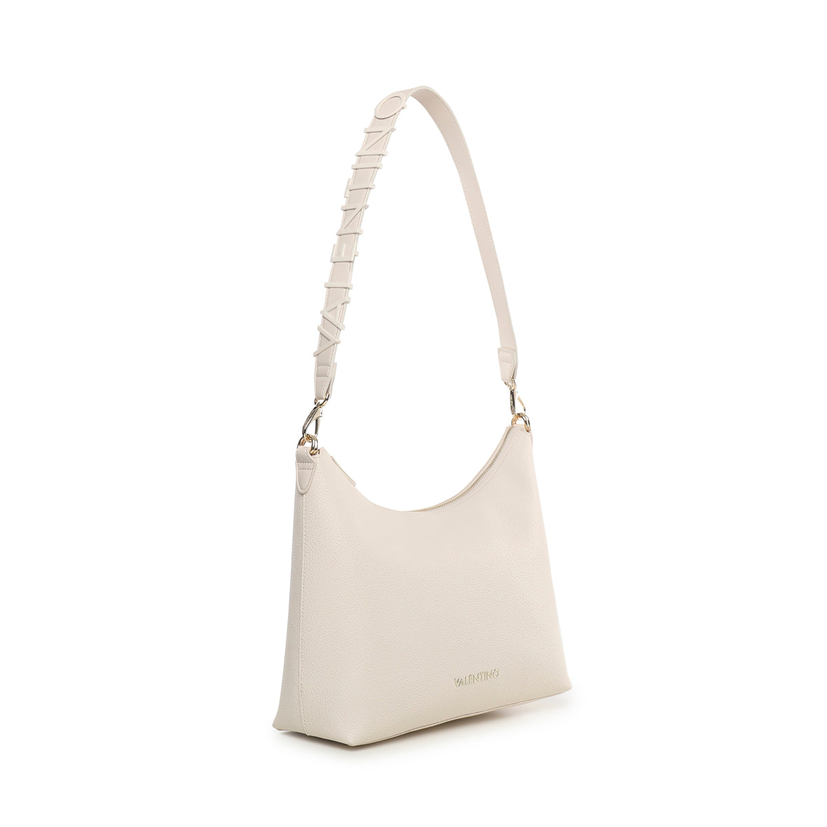 sacca in grana morbida con tracolla e maxi lettering smaltato in tono. Personalizzazione frontale in alta frequenza.