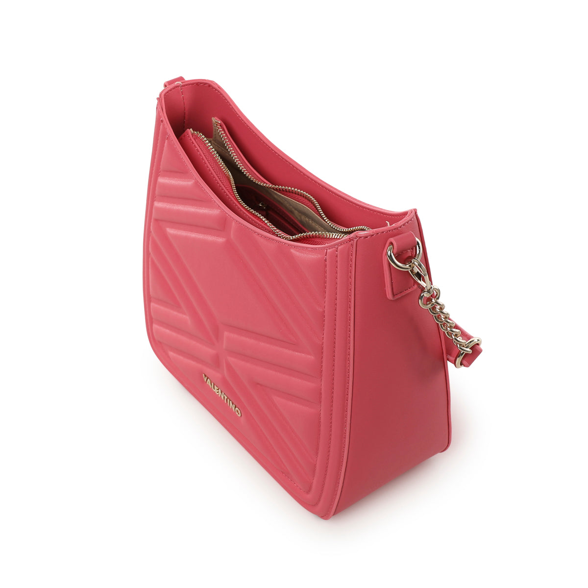 La Sacca SOUVENIR RE Valentino ha una finitura in materiale riciclato. Il design presenta una fantasia geometrica con letterine Valentino gommate in oro sulla parte frontale. L'interno è capiente e consente di organizzare tutto il necessario grazie agli scompartimultipli. La tracolla è regolabile e realizzata in parte in fibra e in parte a catena dorata. La chiusura è a zip. Disponibile nei colori nero, rosa, cuoio, ecru e polvere.