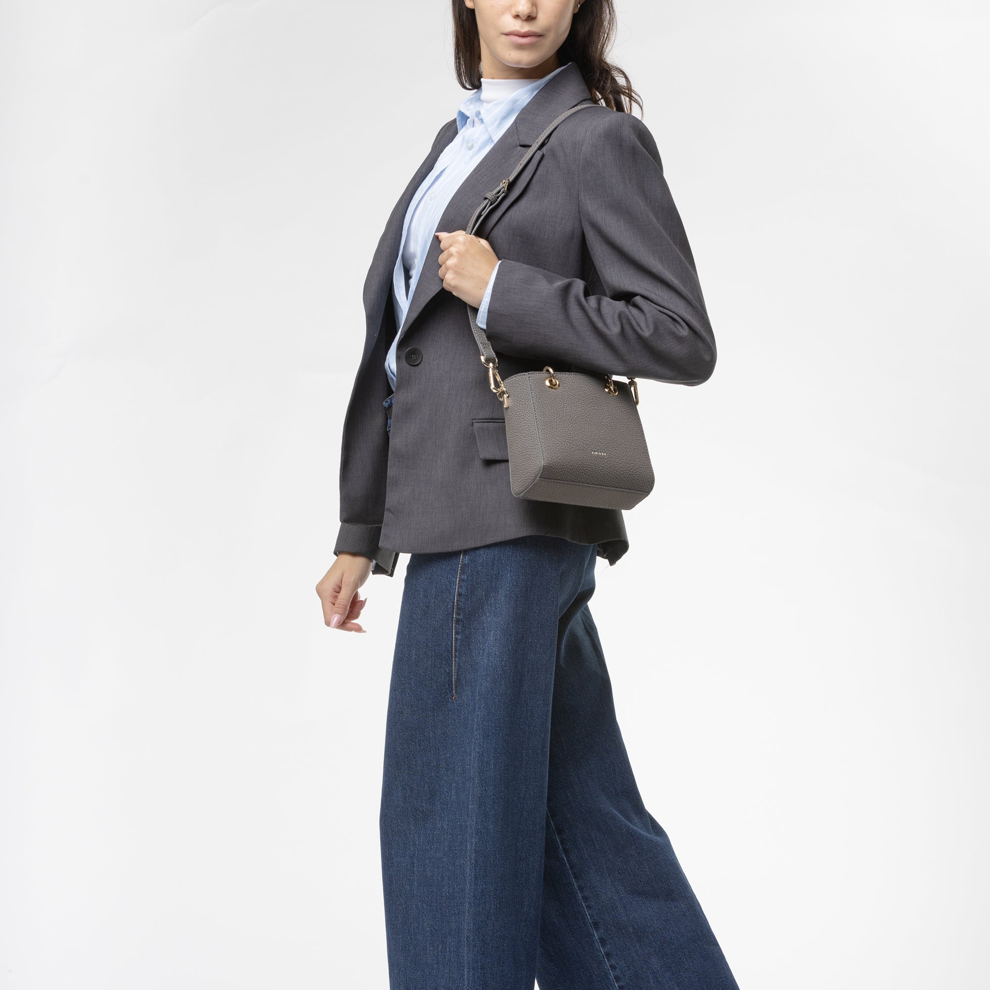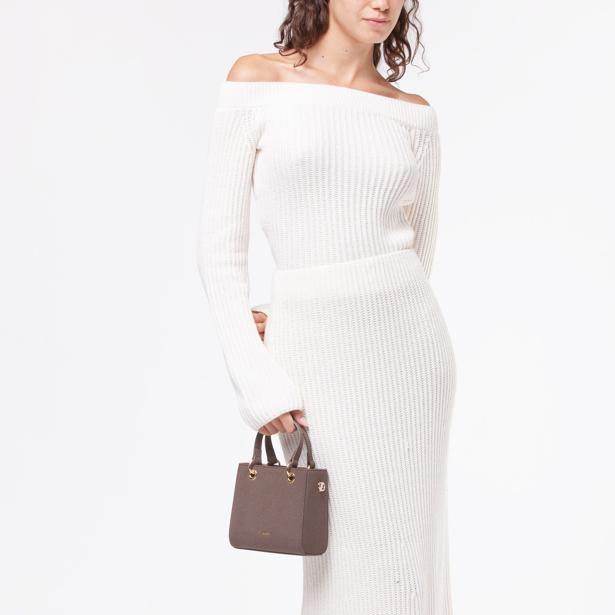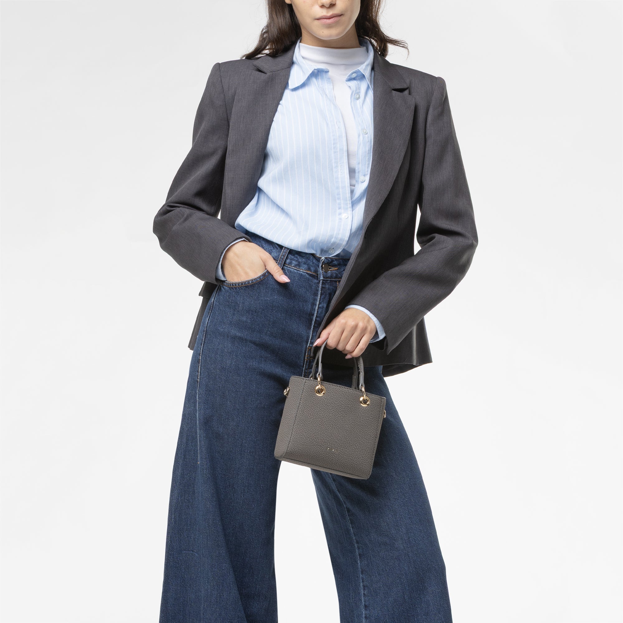 Il design della mini shopping è caratterizzato da manici fissati tramite anelli metallici dorati, che aggiungono un tocco di eleganza e robustezza.-Perfetta per l'uso quotidiano, questa mini shopping è un must-have per chi cerca un accessorio funzionale e alla moda.