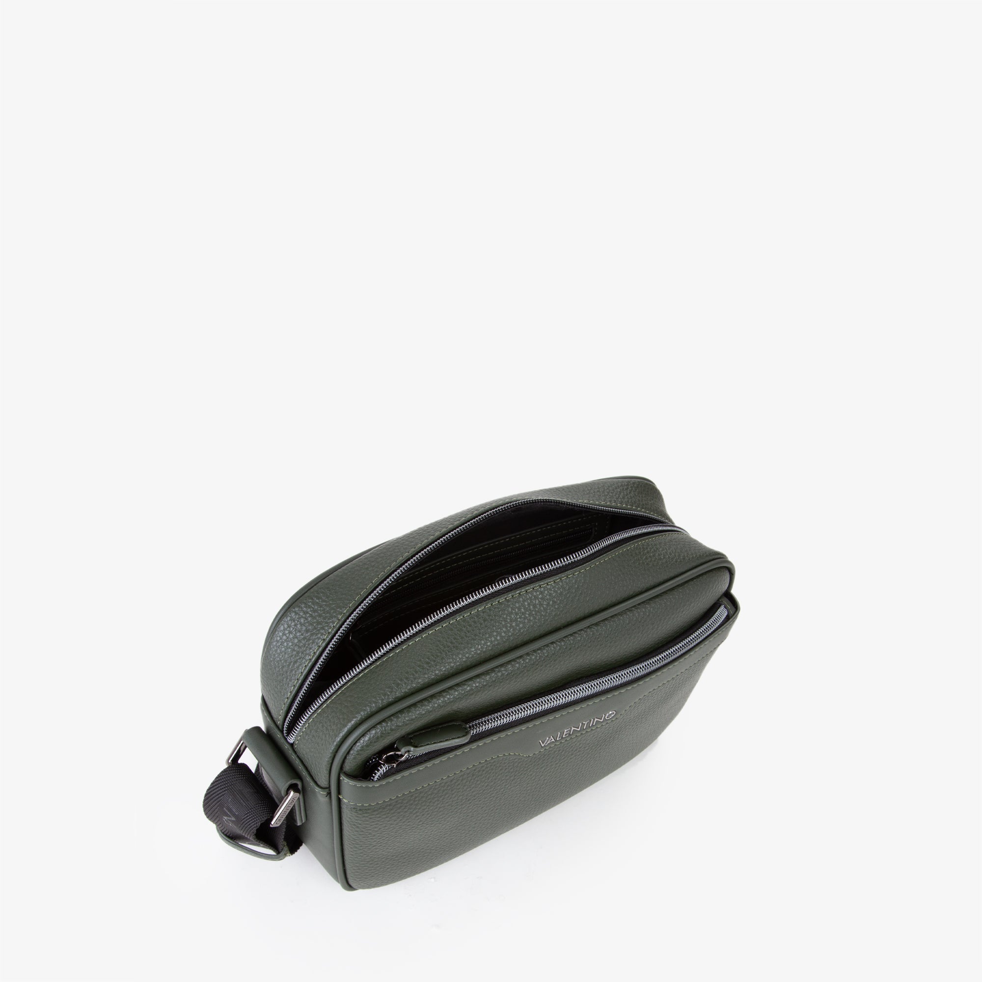 tracolla in sintetico basica con logo in alta frequenza metallizzato e zip metal gun