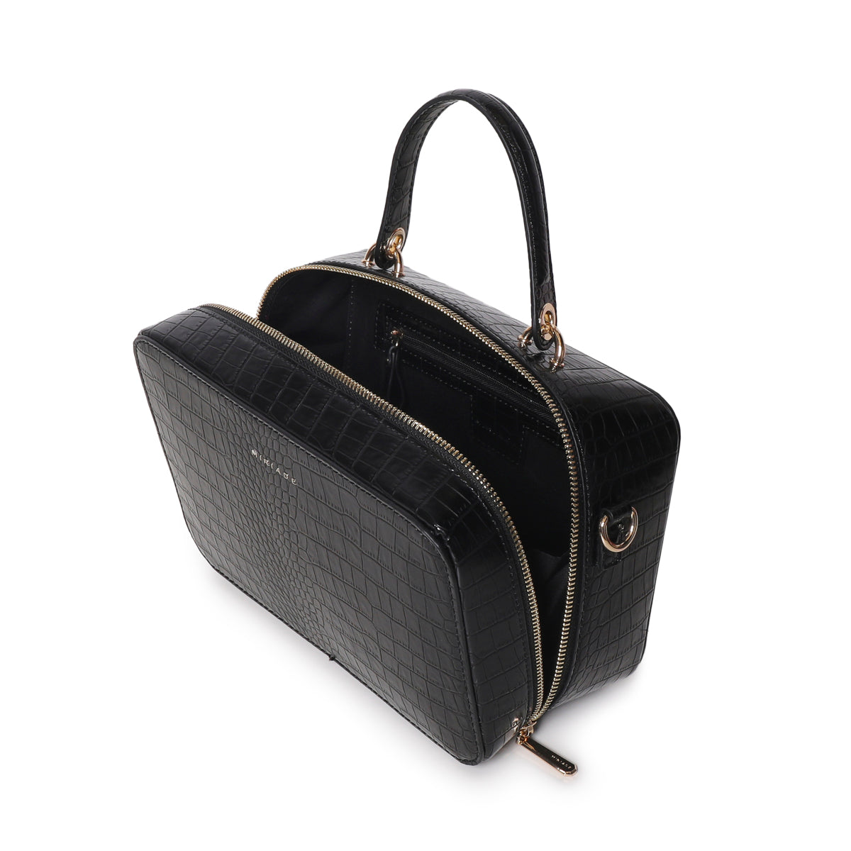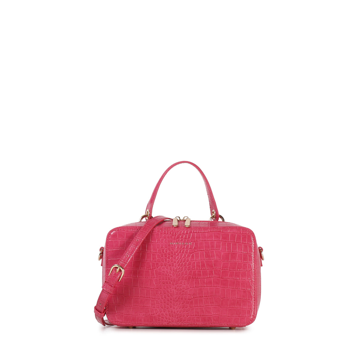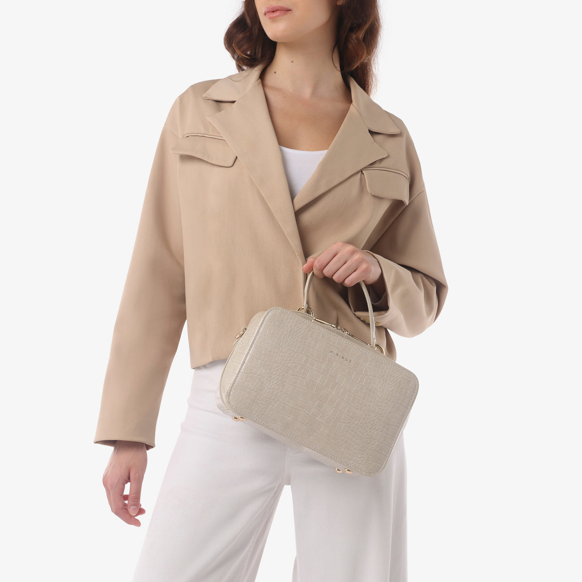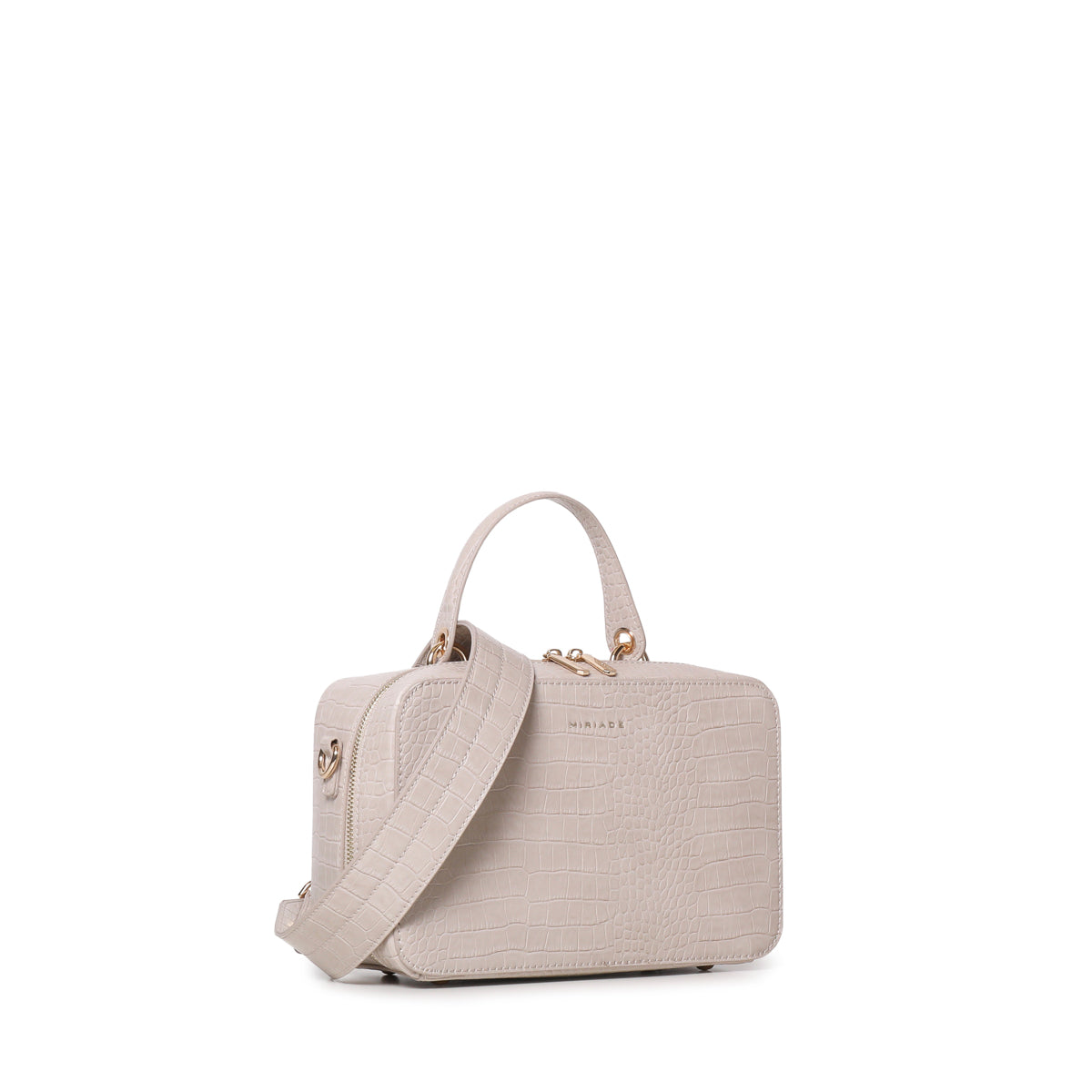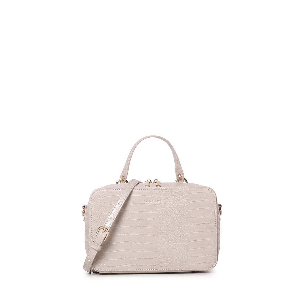 The SOLANA satchel from Miriade combines style and practicality. Its compact shape and embossed texture make it perfect for any occasion. Featuring a top handle and an adjustable, detachable strap, you can carry it by hand or over the shoulder, easily adapting to your needs. The zip closure ensures security and ease of use. Inside, a small beauty case completes the bag’s functionality, making it ideal for organizing your personal items.