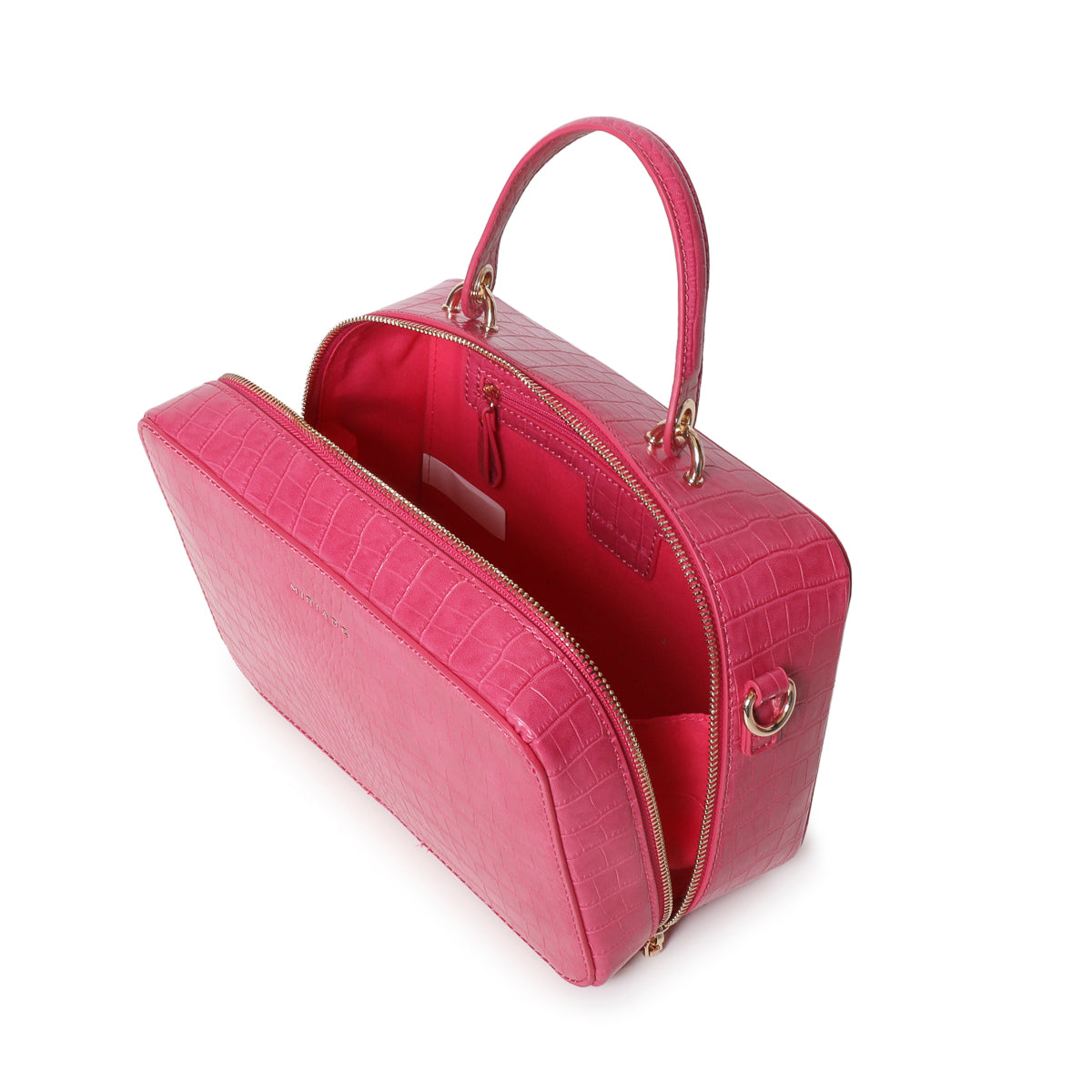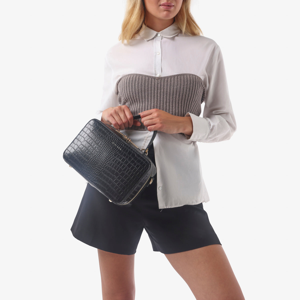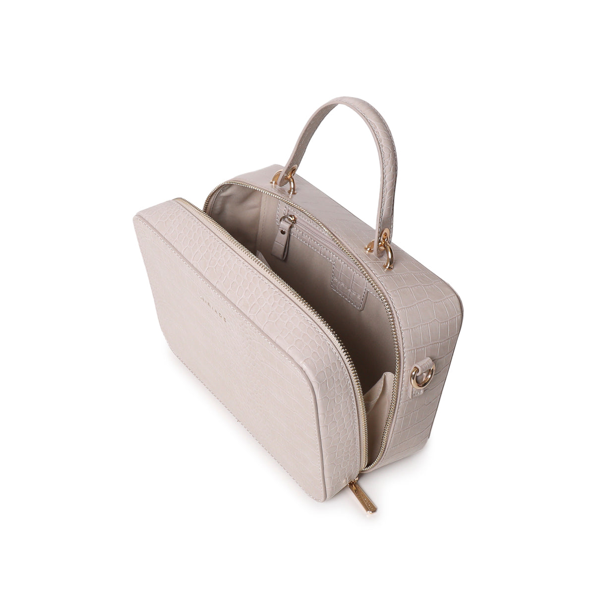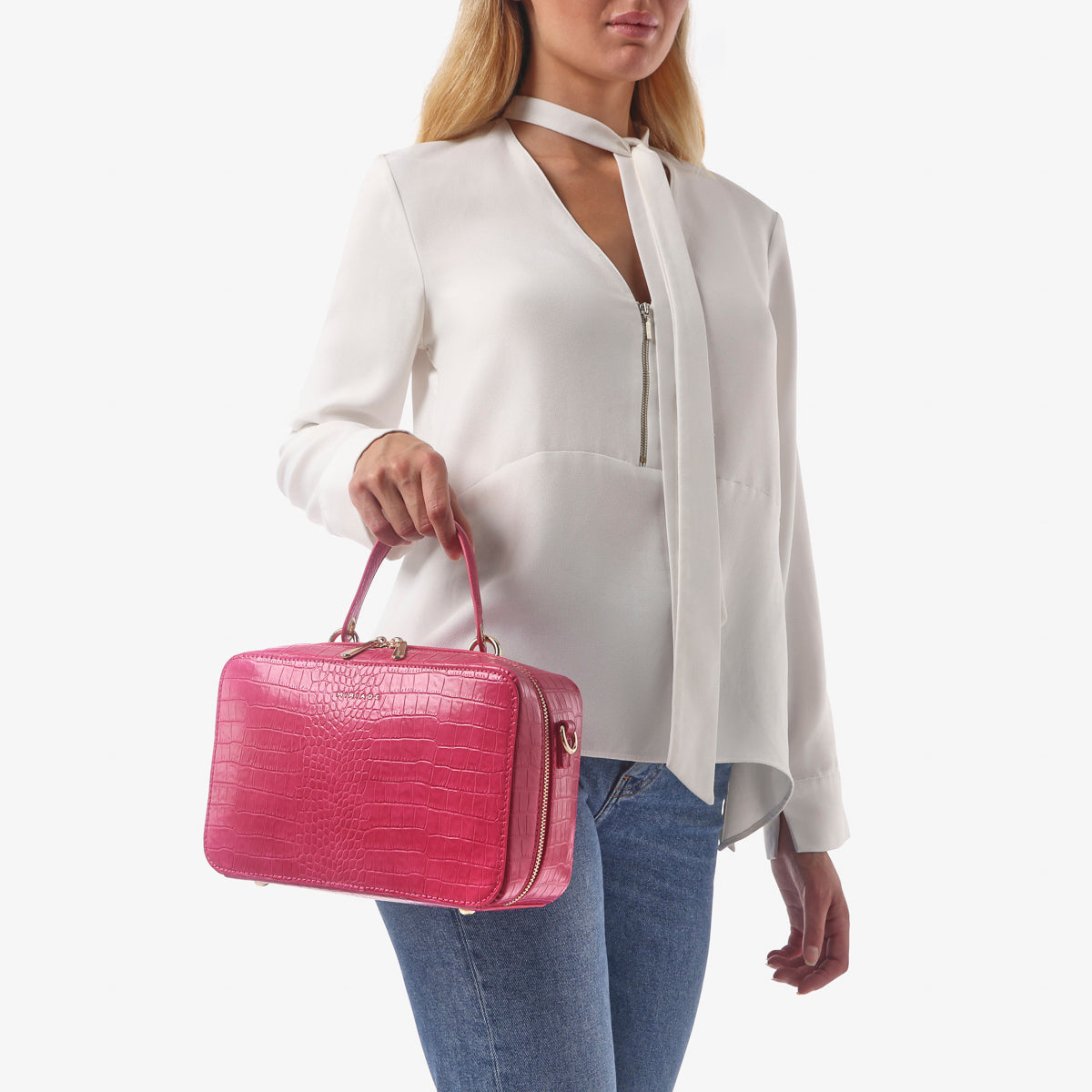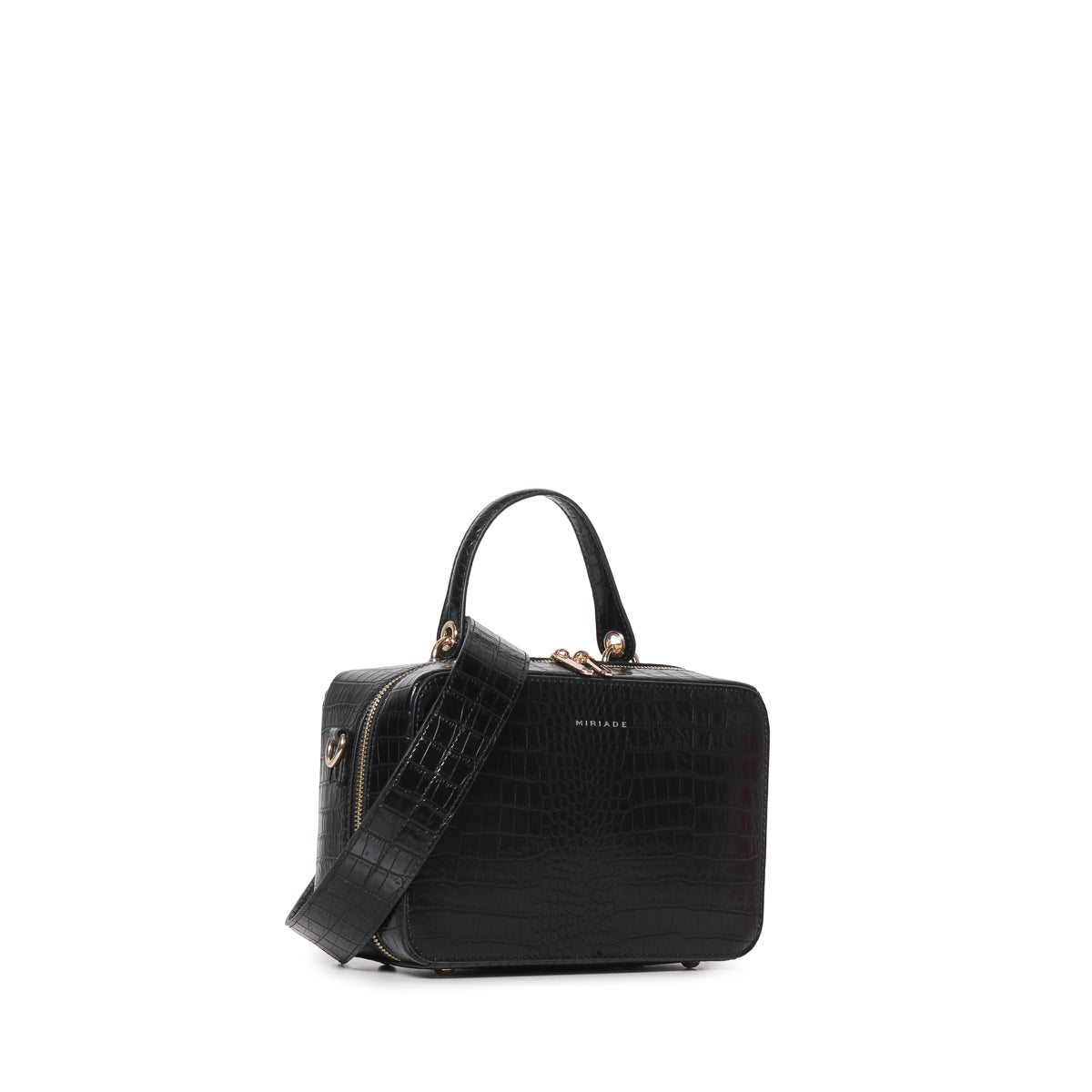 The SOLANA satchel from Miriade combines style and practicality. Its compact shape and embossed texture make it perfect for any occasion. Featuring a top handle and an adjustable, detachable strap, you can carry it by hand or over the shoulder, easily adapting to your needs. The zip closure ensures security and ease of use. Inside, a small beauty case completes the bag’s functionality, making it ideal for organizing your personal items.