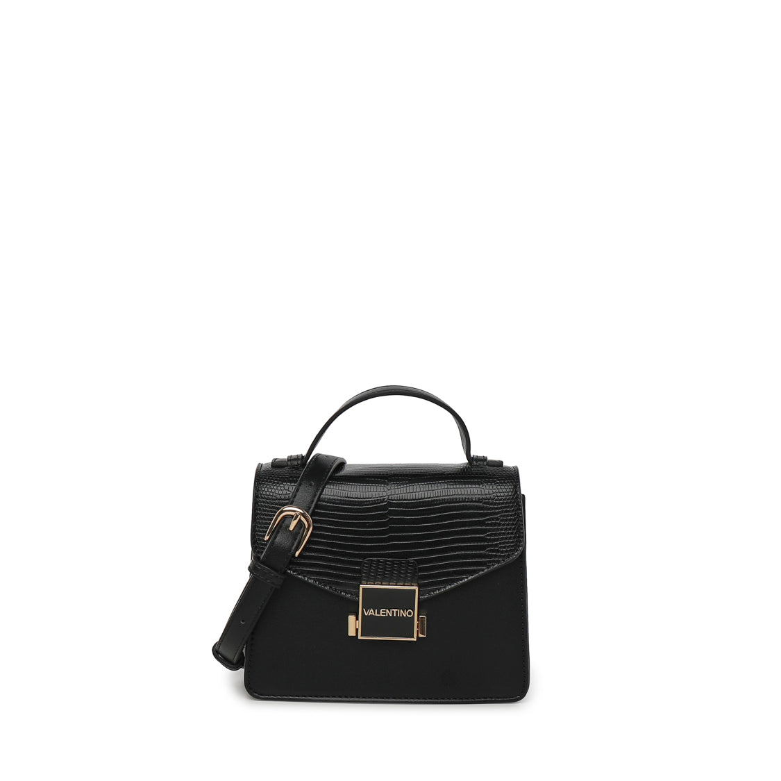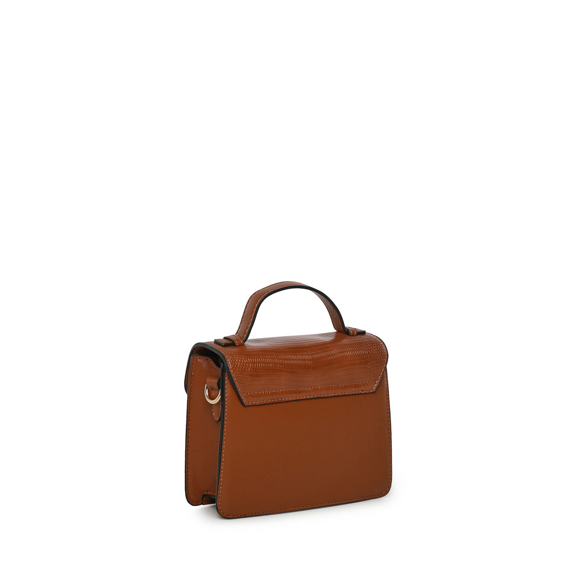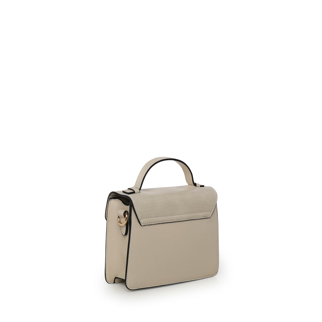 Mini cartella raffinata ed elegante, con tracolla estraibile, in nappa e micro lucertolina con chiusura smaltata su tasca frontale.