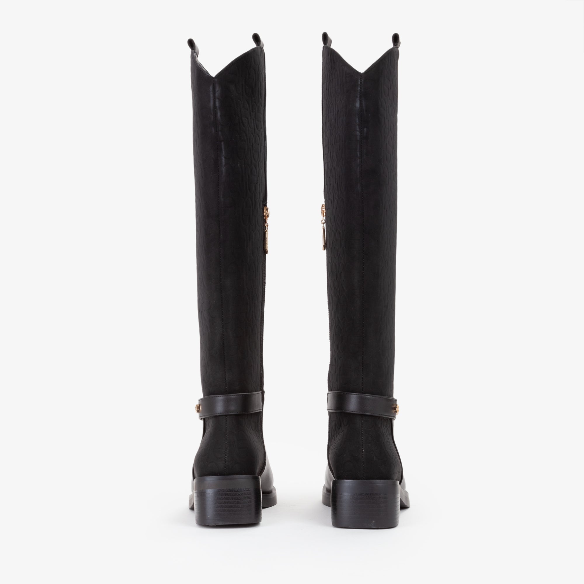 Check out the CATALINA BY boots, perfect for the Fall/Winter season. With an elegant silhouette and unique details, these boots combine style and comfort. The side zipper closure ensures easy wear, while the polished finishes add a touch of class. The sleek shape and soft fabric make them ideal for any outfit. Designed by BY BYBLOS, they're the perfect accessory to face every day with style.