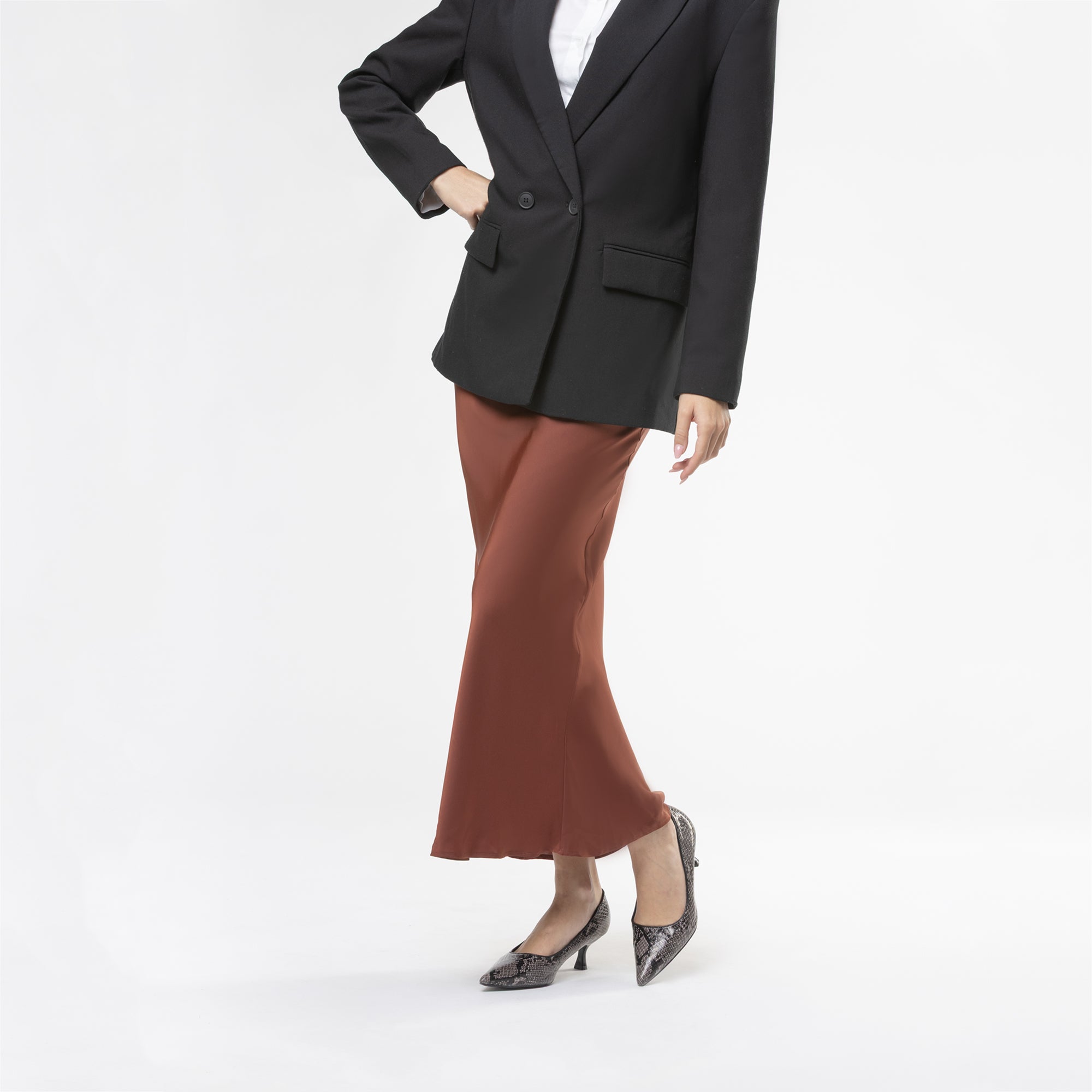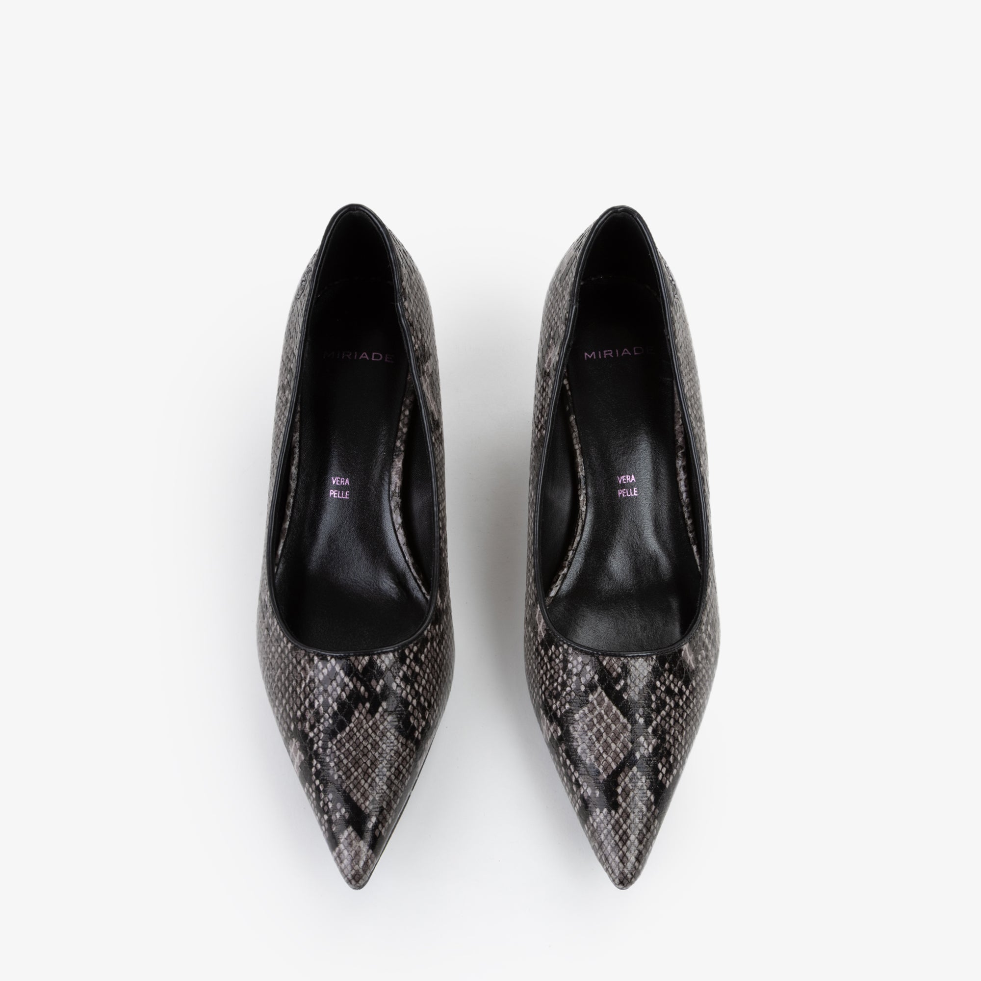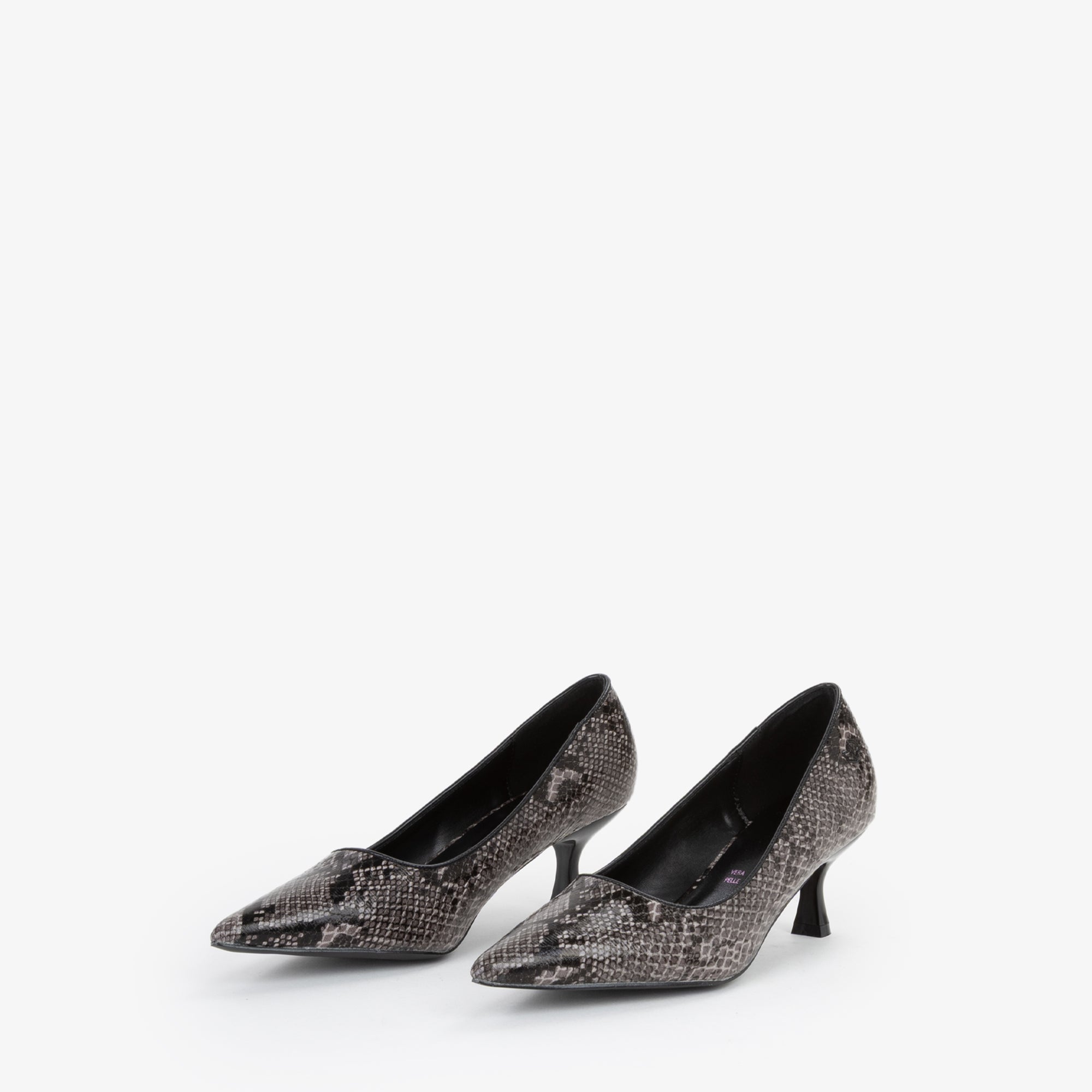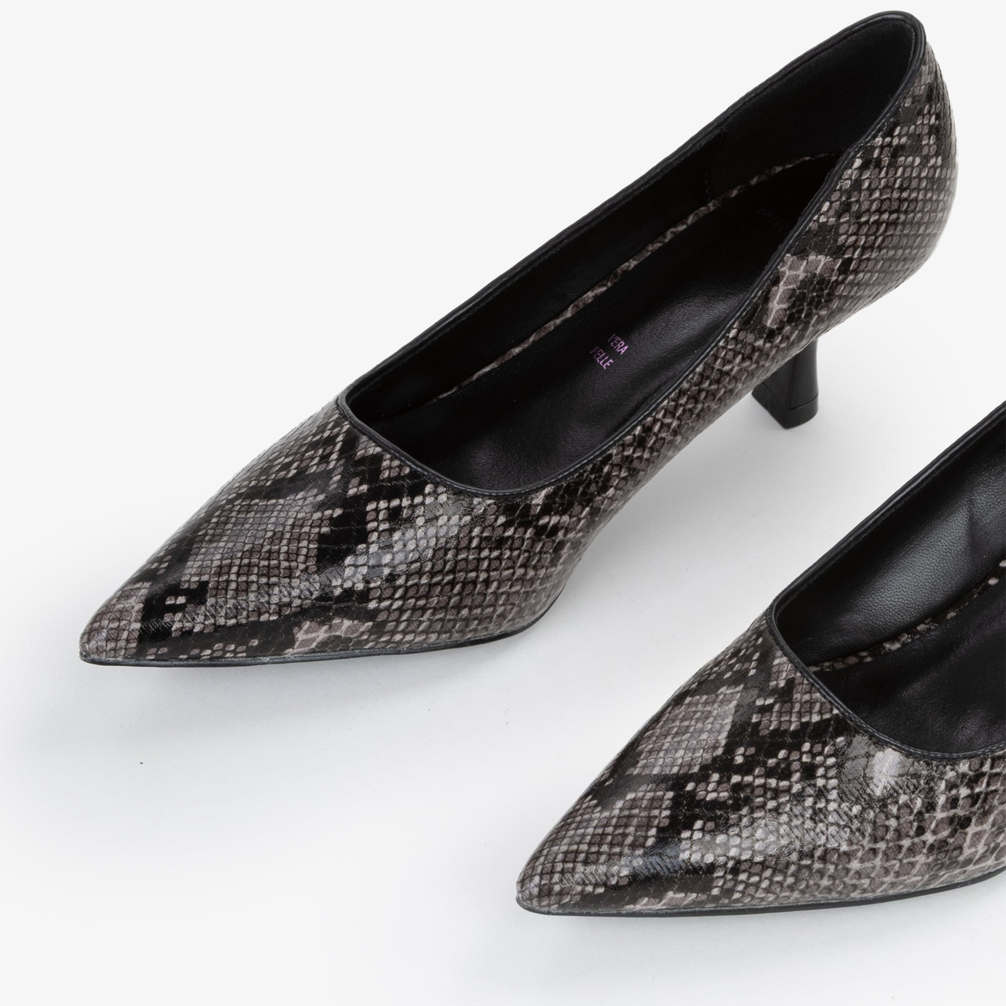 Décolleté in materiale sintetico con stampa pitonata, la scarpa perfetta per chi ama distinguersi con classe. Con punta affusolata etacco basso, valorizza la silhouette unendo sensualità e raffinatezza. Perfetta per serate speciali, eventi eleganti o per dare carattere a un outfit da ufficio, trasformando ogni passo in un vero statement di stile.undefined