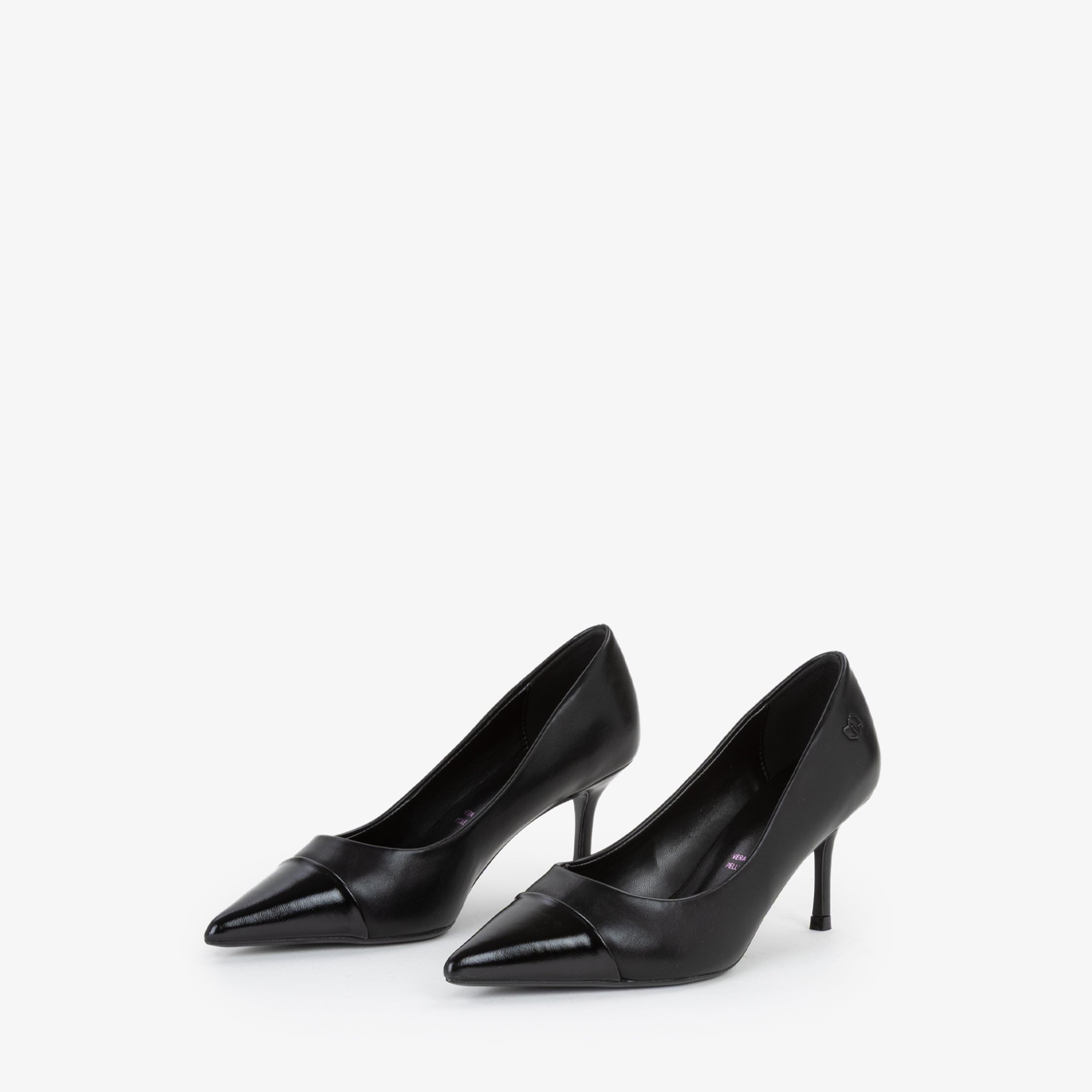 Décolleté in materiale sintetico con punta affusolata e linea pulita, pensata per uno stile elegante e versatile. Il tacco a stiletto di media altezza, sottile e slanciato, aggiunge femminilità senza rinunciare alla stabilità. La suola in materiale tecnico garantisce flessibilità e comfort nella camminata. Ideale per lufficio, eventi serali o cerimonie, si abbina perfettamente a pantaloni sartoriali o abiti midi per un look raffinato e moderno.