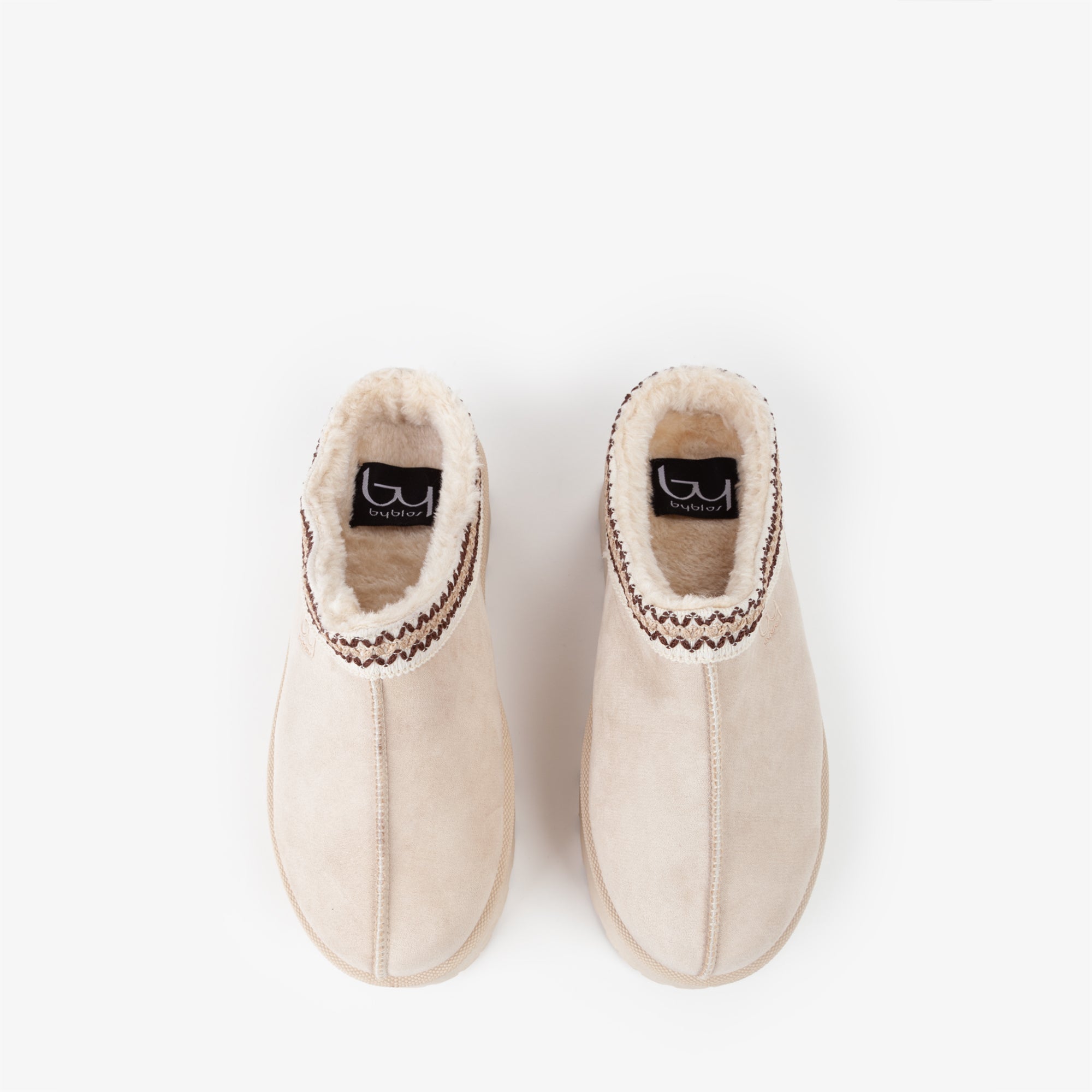 Meet the SOPHIE BY slippers from BY BYBLOS, your go-to for staying stylish in cold weather. These shoes blend comfort and design with their snug fit and sturdy sole that ensures a stable walk. The embroidered finishes add a unique touch, while the soft lining keeps your feet cozy with every step. Perfect for a casual look, they're the ideal addition to your laid-back days.
