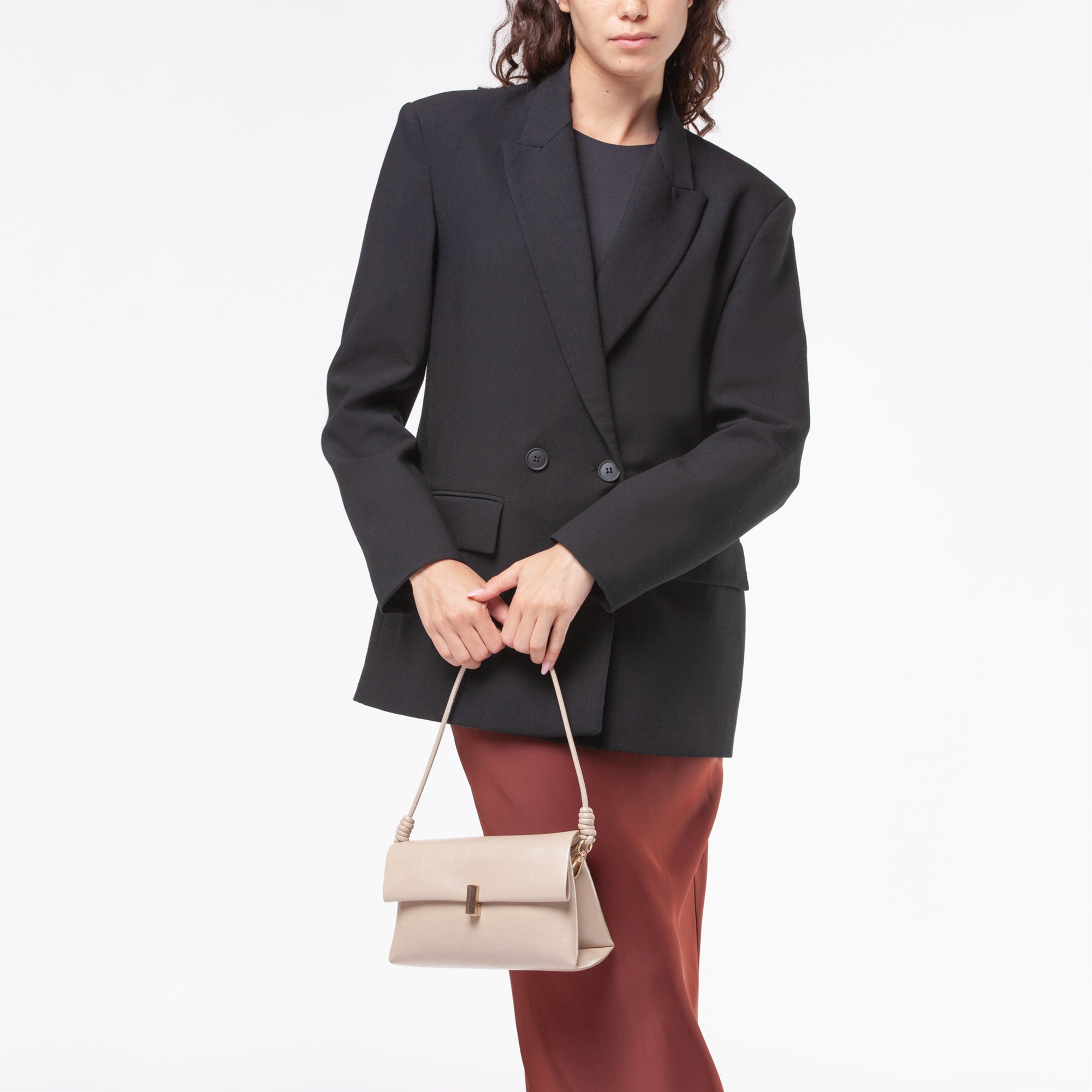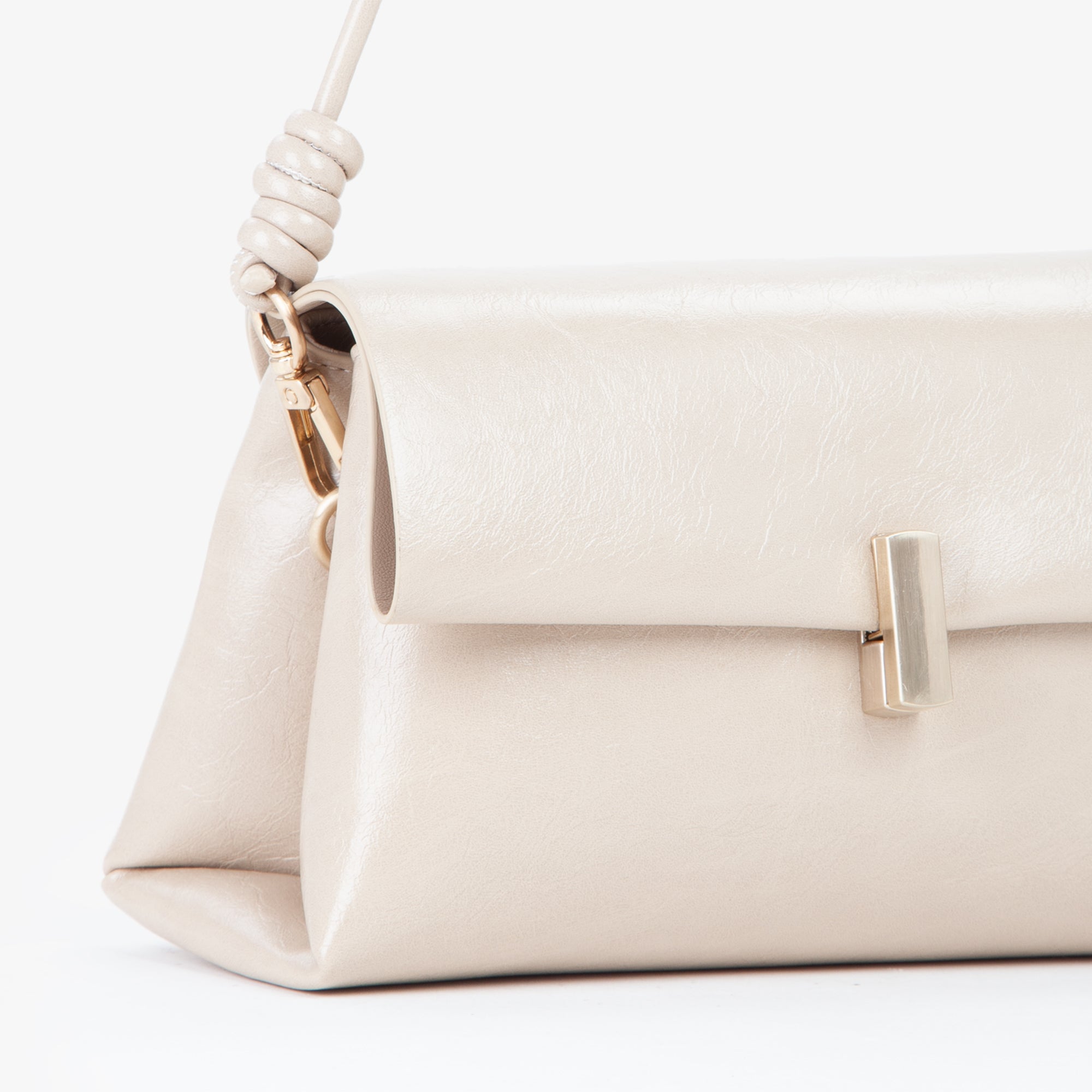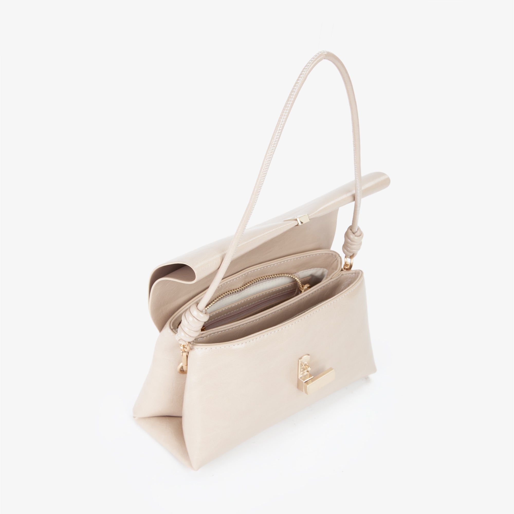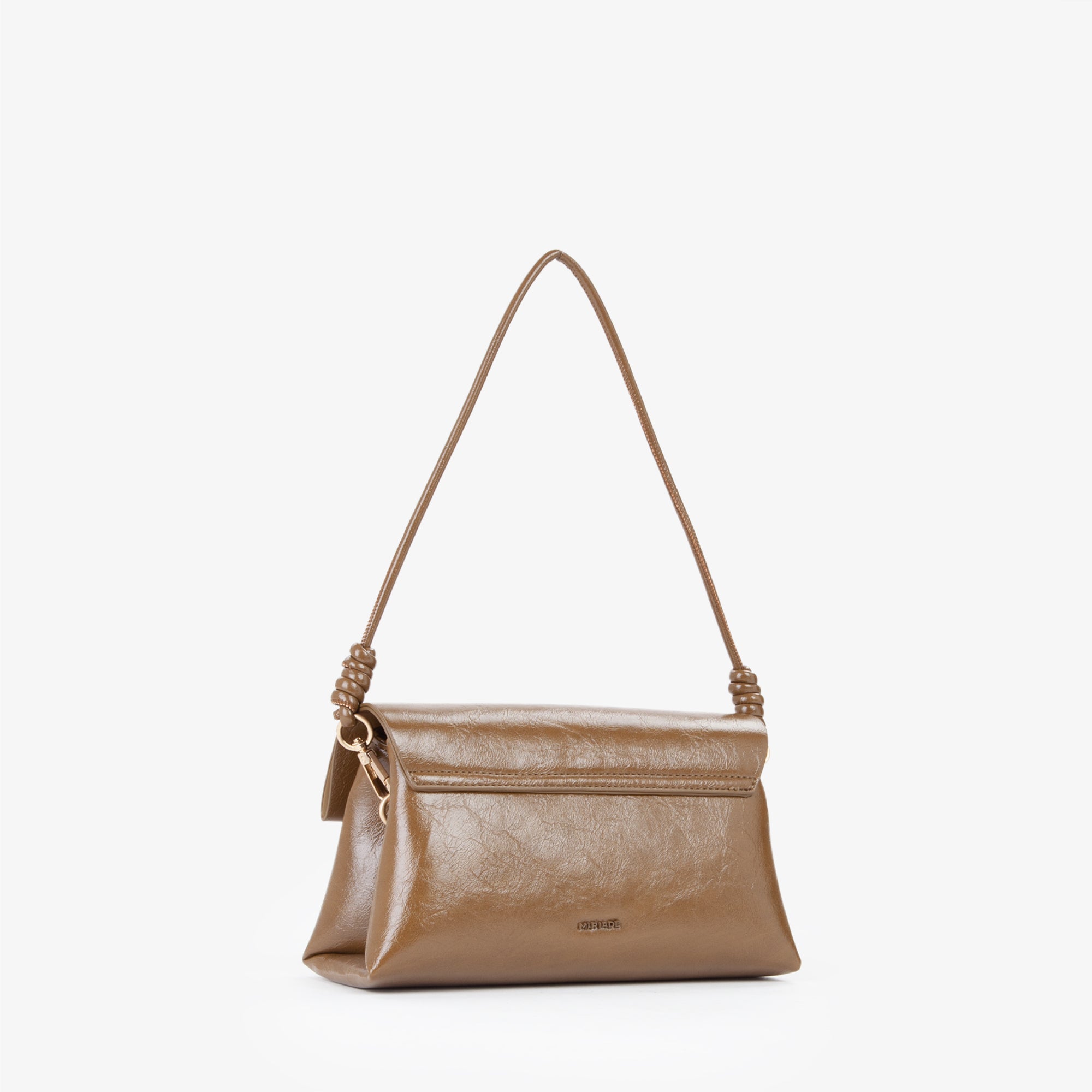 pattina con effetto stropicciato, un accessorio di classe che unisce eleganza e funzionalità.-La chiusura a girello, posizionata sulla parte frontale della borsa, non solo garantisce sicurezza, ma aggiunge anche un elemento di design distintivo. Il manico staccabile è decorato con un dettaglio a nodo su entrambi i lati, conferendo un tocco unico e stiloso. Questo manico può essere facilmente rimosso.-La borsa è dotata di una tracolla staccabile e regolabile, che permette di portarla comodamente a spalla. Questa versatilitàla rende ideale per diverse occasioni, dal lavoro al tempo libero. Perfetta per chi cerca un accessorio elegante e pratico, questapattina in grana è un must-have nel guardaroba di ogni donna.