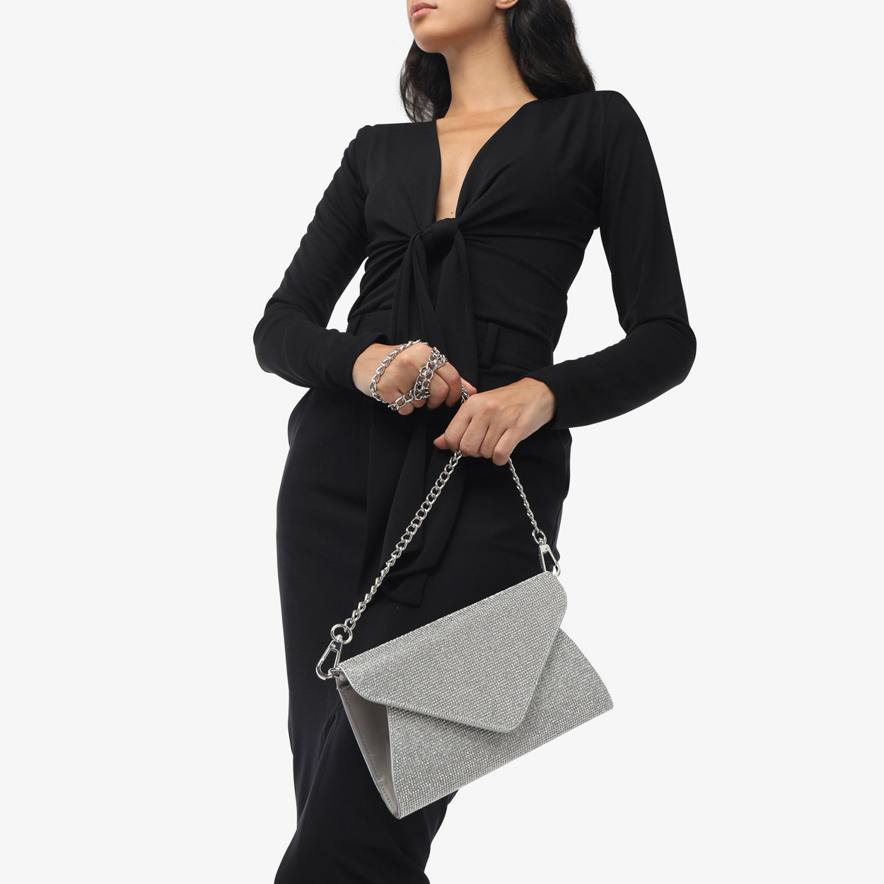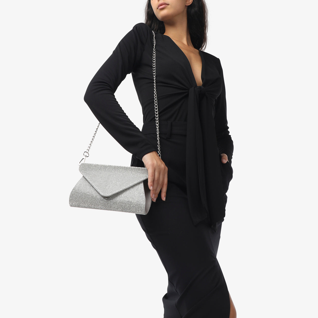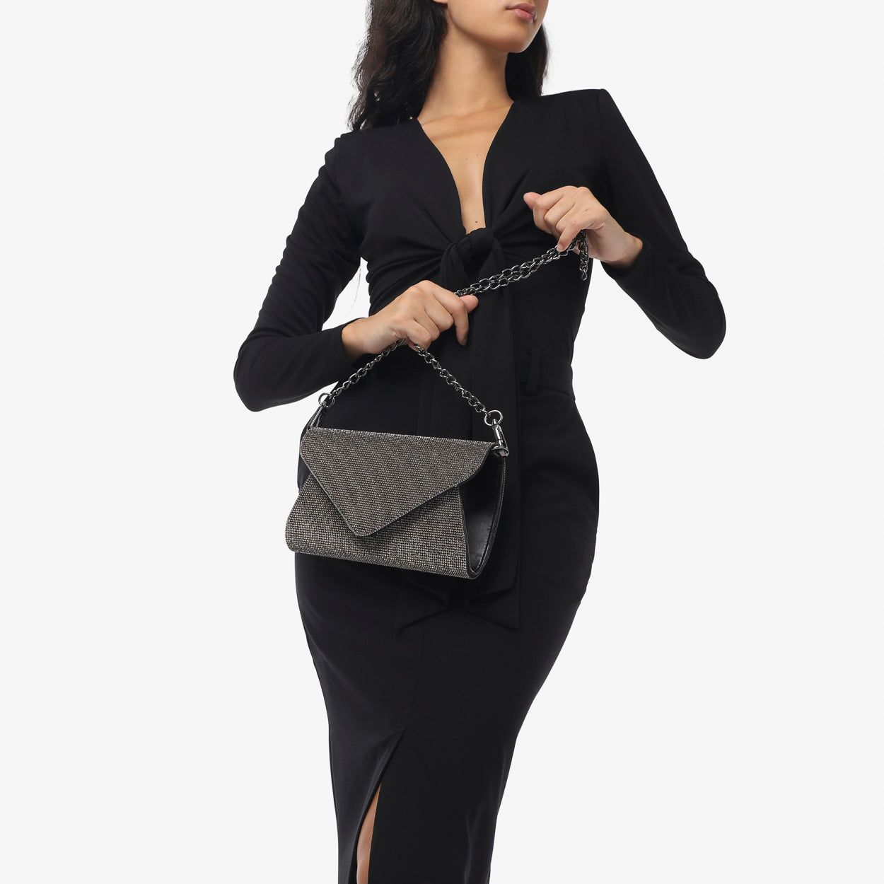 The DYAMOND Clutch by Miriade adds a touch of elegance to your style. With its sleek shape and sparkling fabric, this clutch is perfect for glamorous evenings. Featuring a handy chain strap, you can wear it over the shoulder or carry it by hand, making it versatile for any occasion. The snap closure ensures safety and convenience, while inside you'll find a small beauty case to keep everything organized. A unique accessory for those who love to stand out.