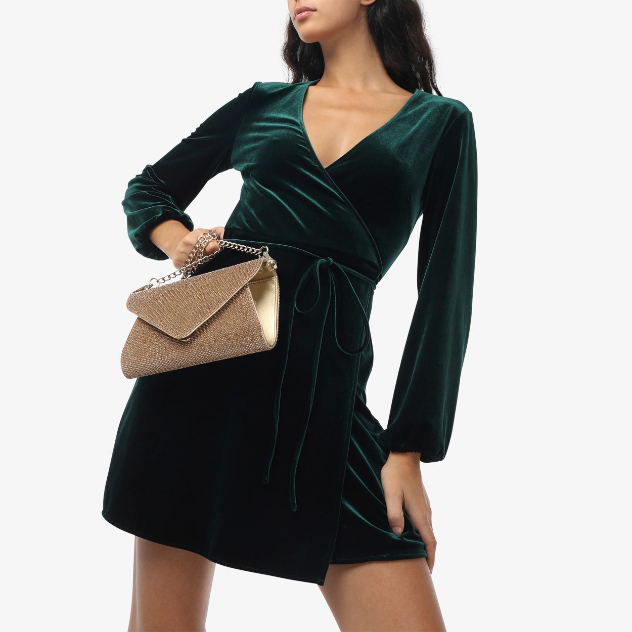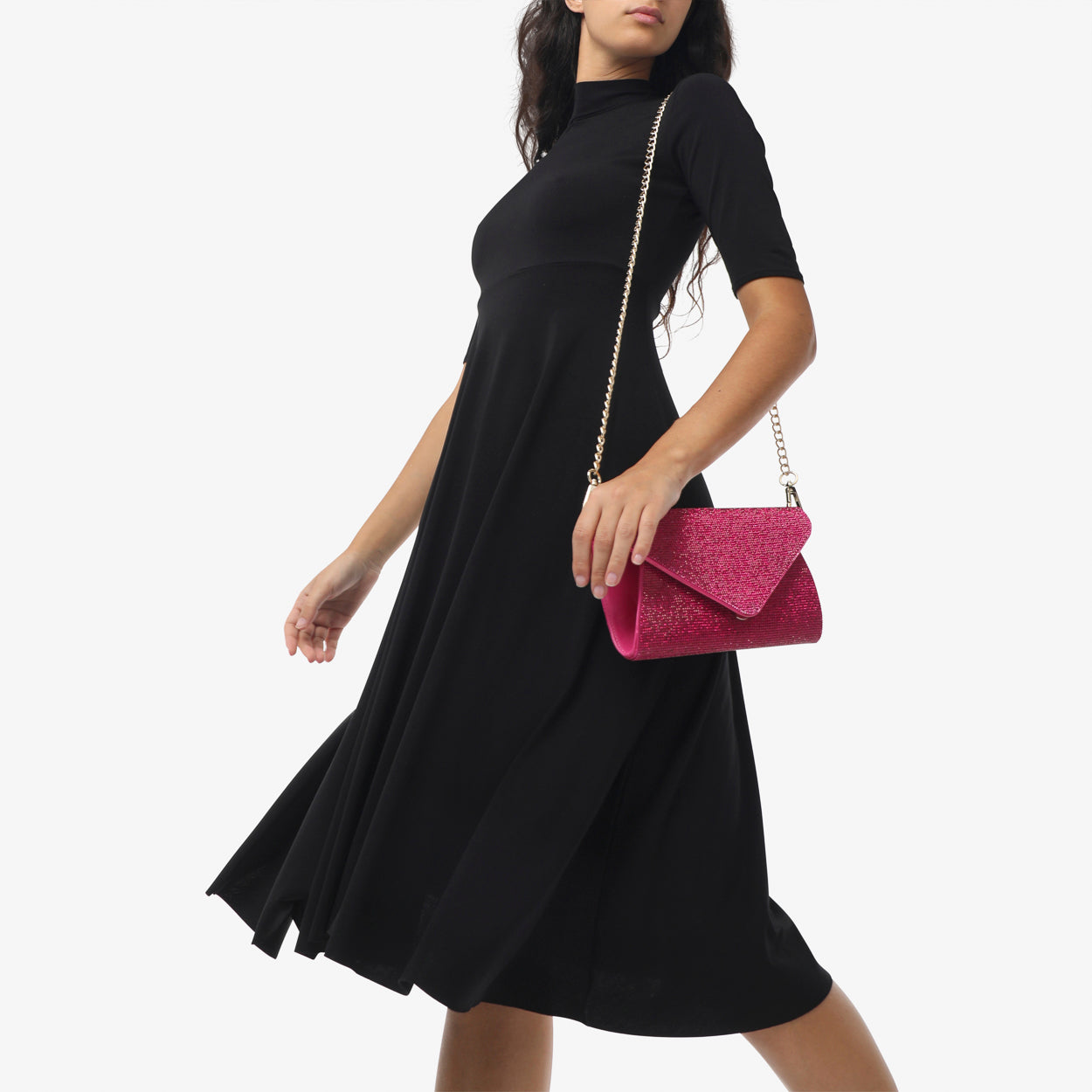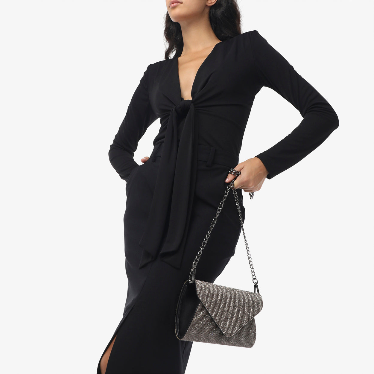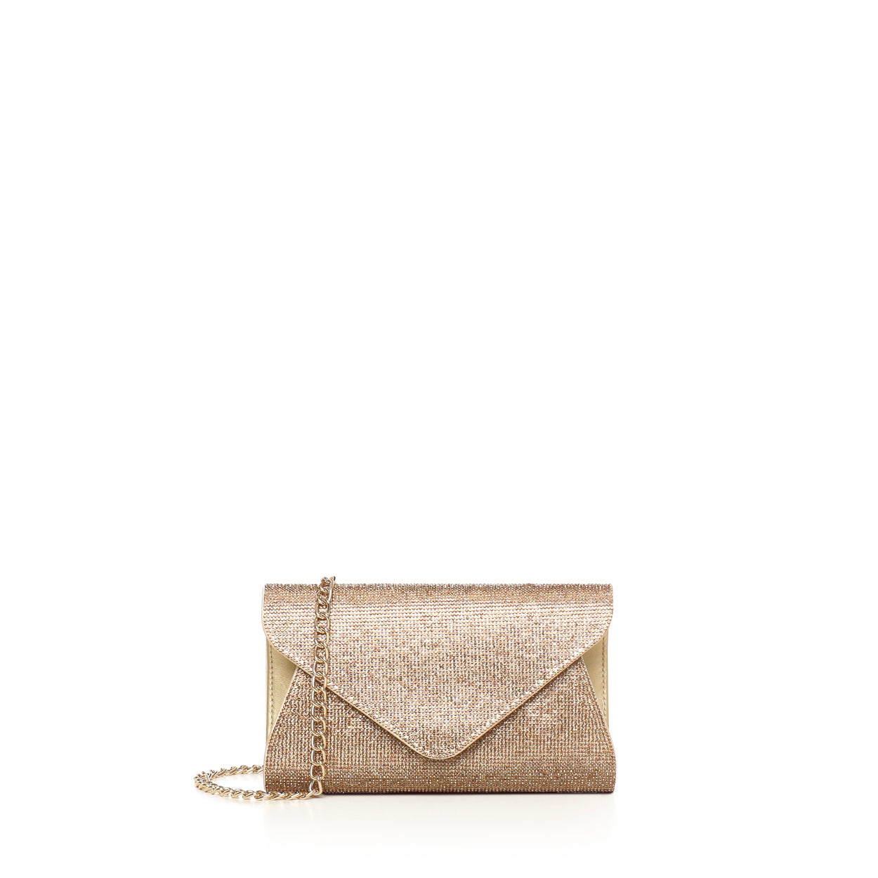 The DYAMOND Clutch by Miriade adds a touch of elegance to your style. With its sleek shape and sparkling fabric, this clutch is perfect for glamorous evenings. Featuring a handy chain strap, you can wear it over the shoulder or carry it by hand, making it versatile for any occasion. The snap closure ensures safety and convenience, while inside you'll find a small beauty case to keep everything organized. A unique accessory for those who love to stand out.