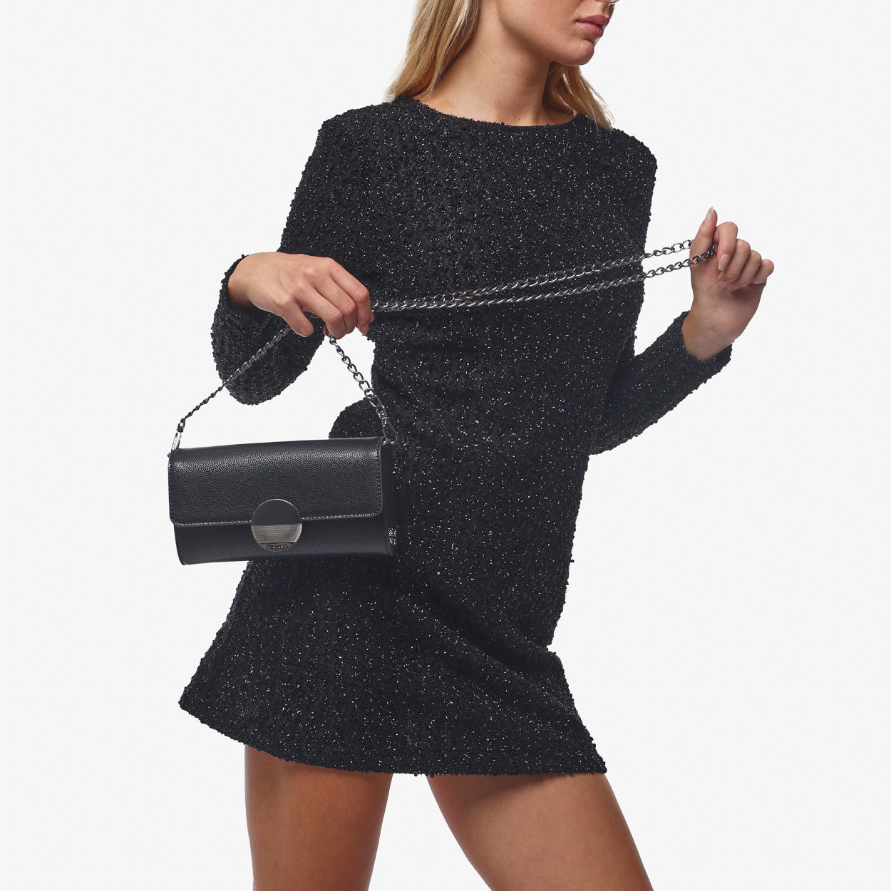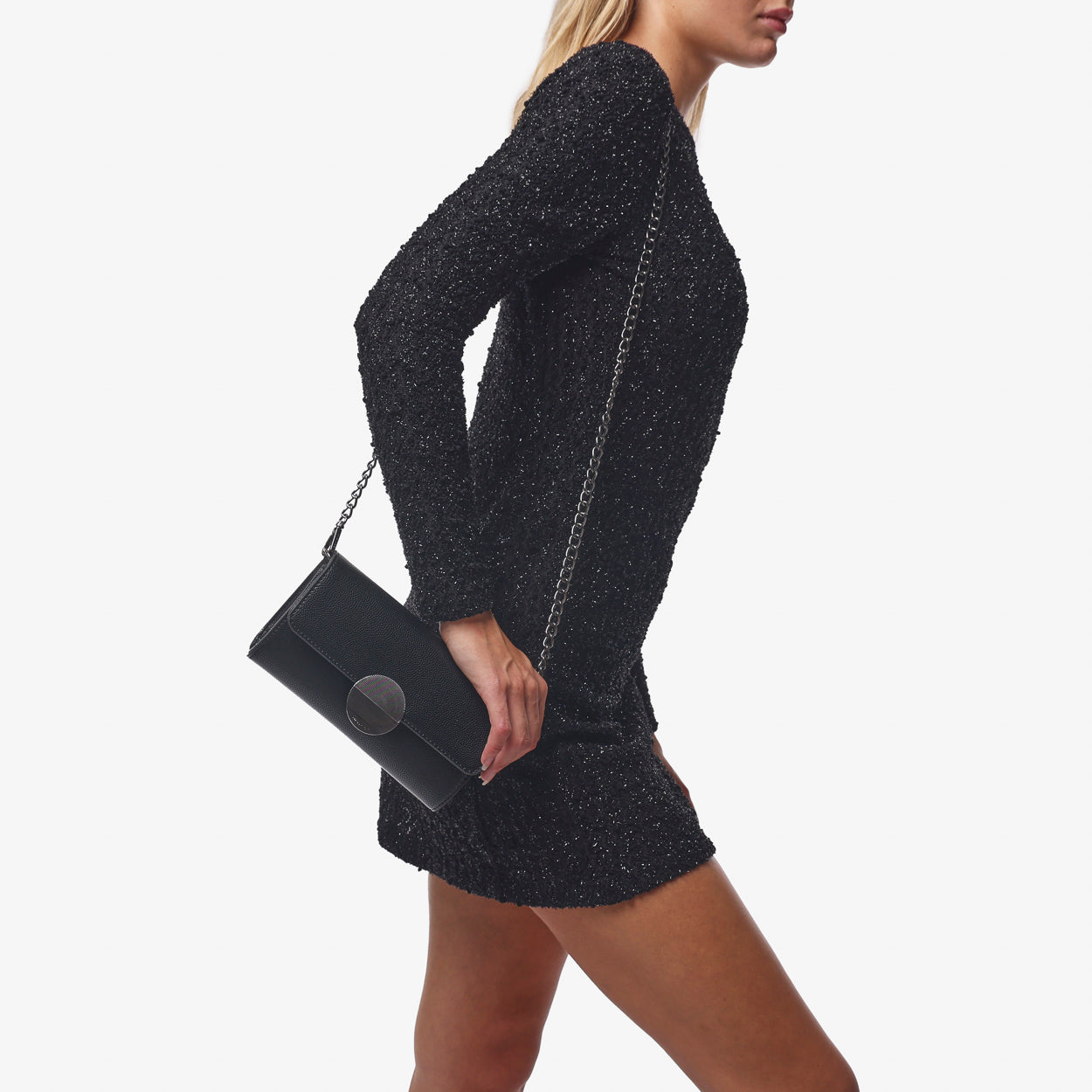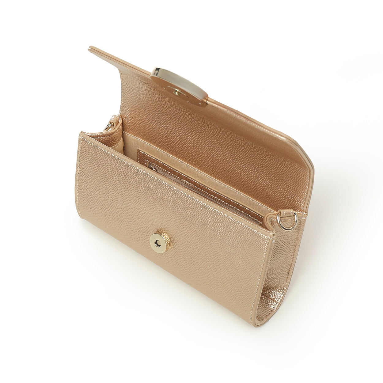 The RADIOSA Clutch by Miriade is the perfect accessory for those seeking practicality and style. With its compact design and clean lines, it's ideal for any occasion. The snap closure ensures security, while the adjustable chain lets you wear it crossbody or handheld with ease. Inside, you'll find a small beauty, adding even more versatility to this clutch. The unique texture adds a touch of elegance, making it one-of-a-kind.