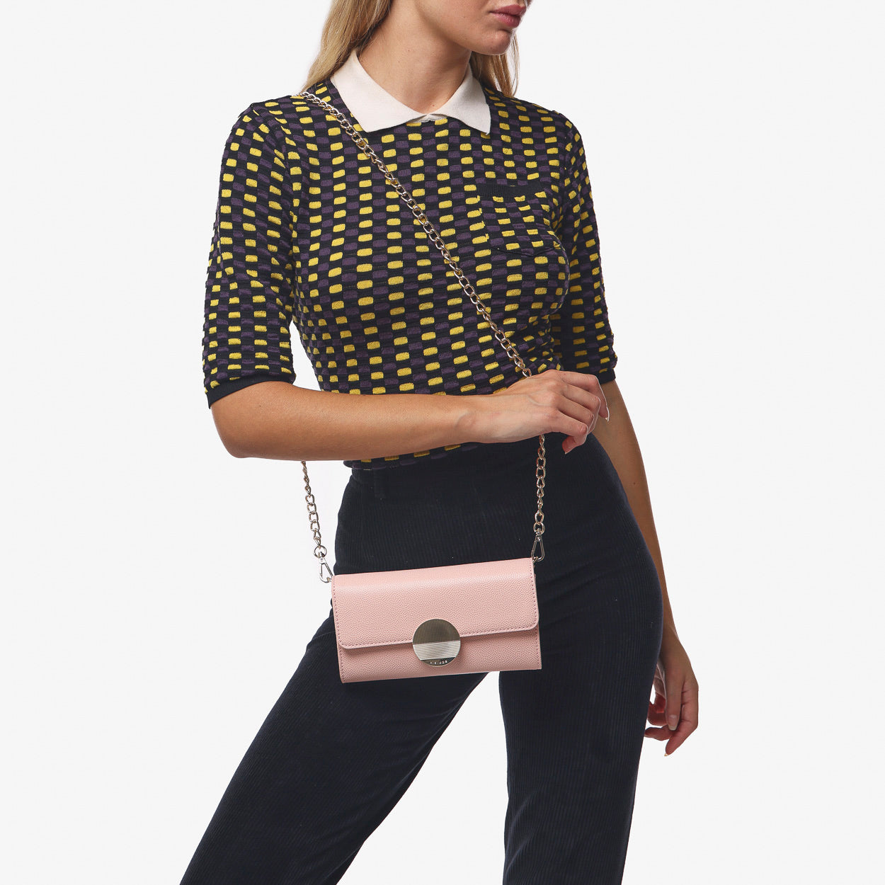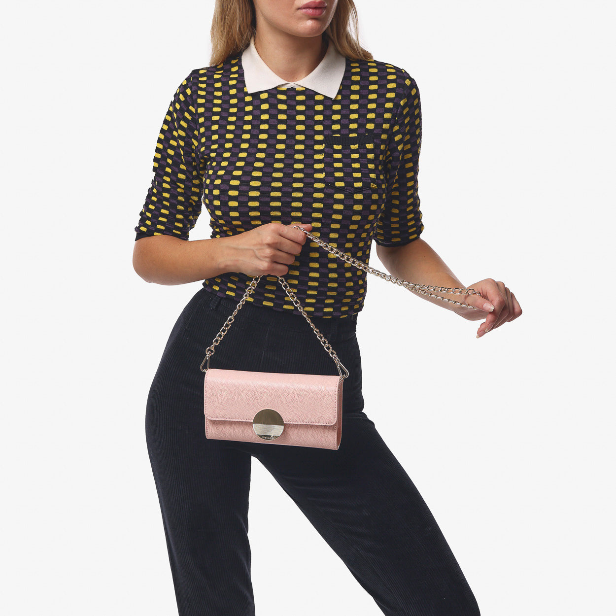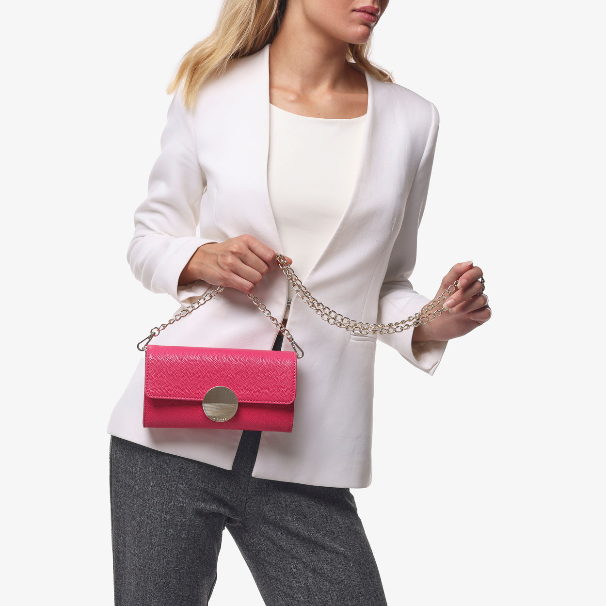 The RADIOSA Clutch by Miriade is the perfect accessory for those seeking practicality and style. With its compact design and clean lines, it's ideal for any occasion. The snap closure ensures security, while the adjustable chain lets you wear it crossbody or handheld with ease. Inside, you'll find a small beauty, adding even more versatility to this clutch. The unique texture adds a touch of elegance, making it one-of-a-kind.