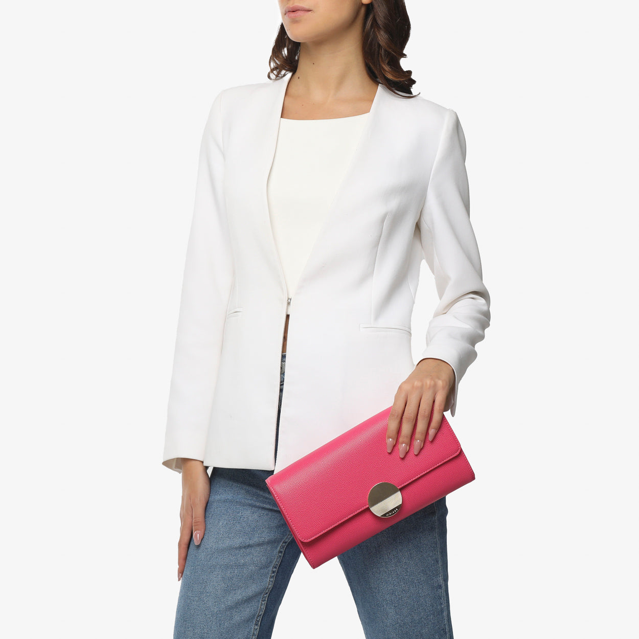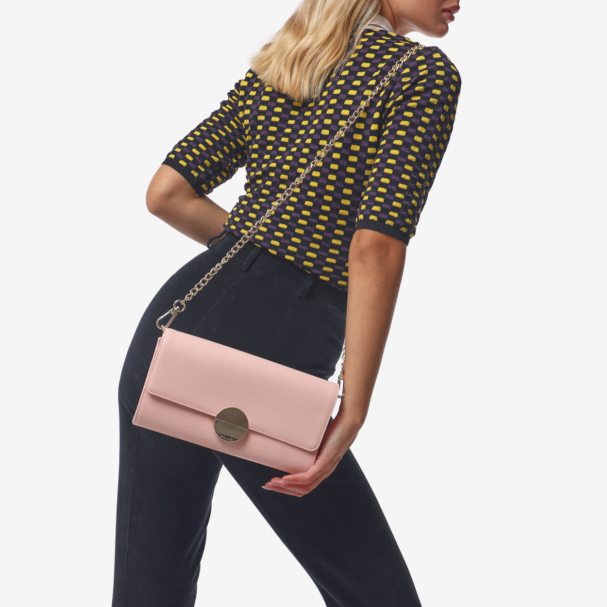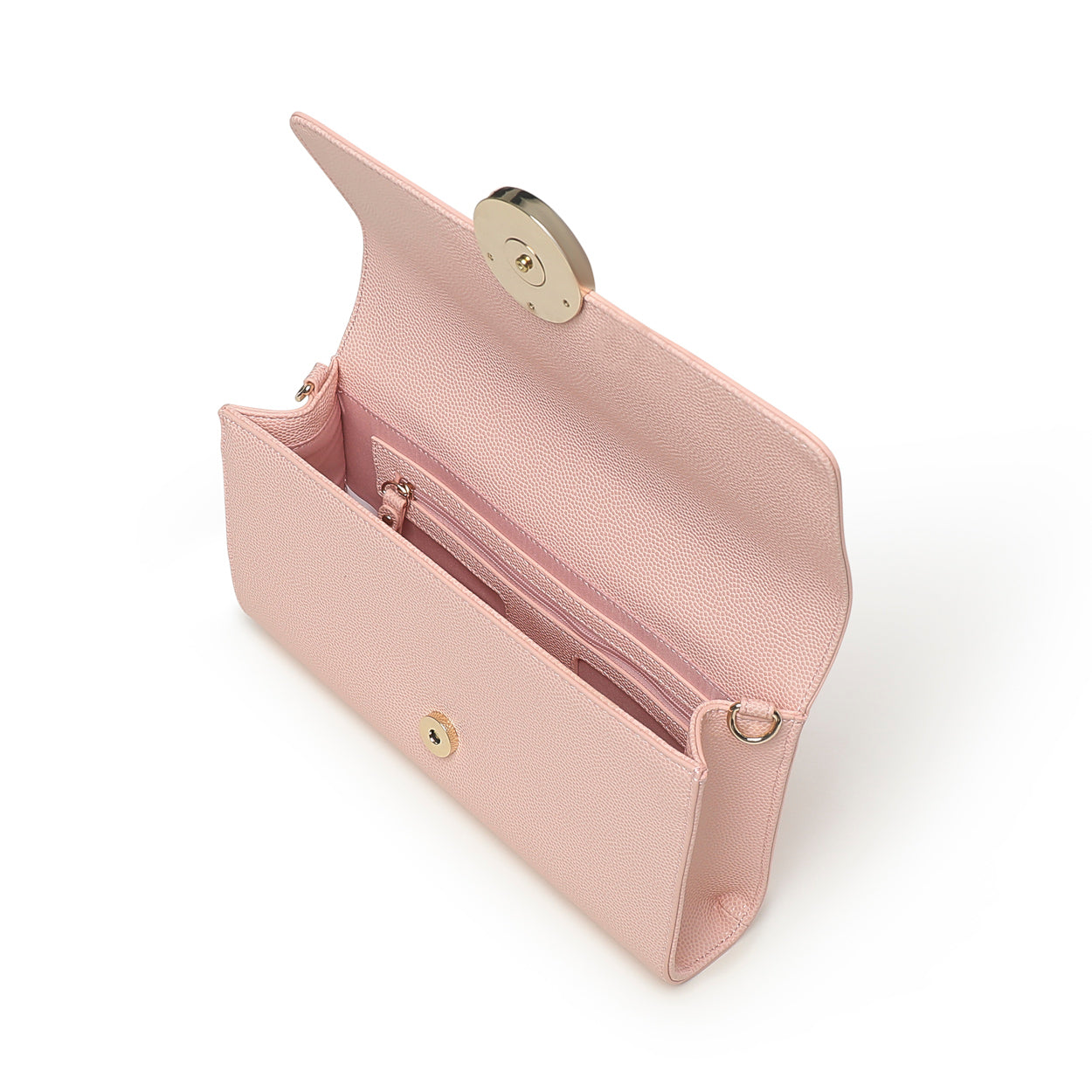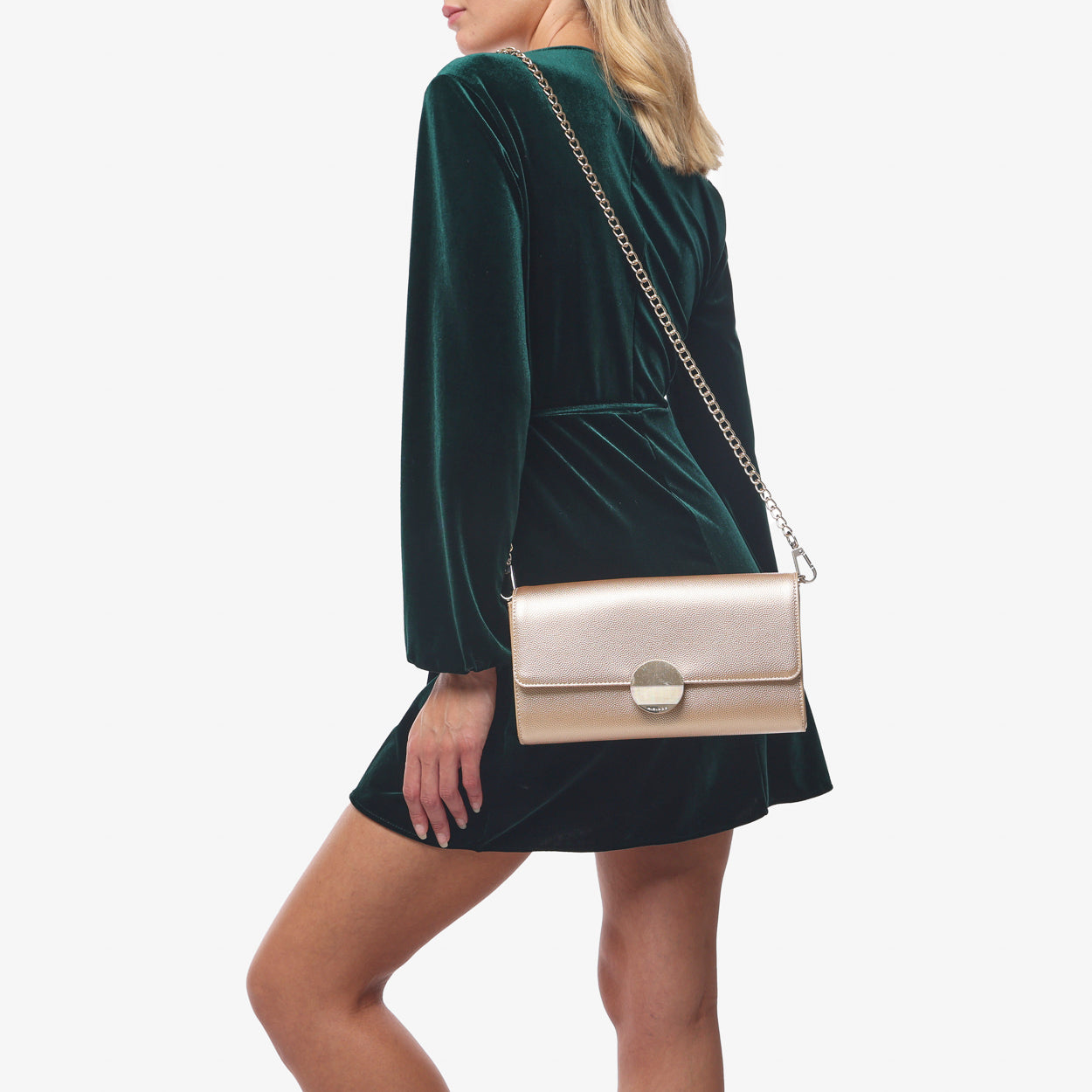 The Pochette RADIOSA by Miriade is your go-to accessory for a night out, blending elegance with practicality. Its compact design is perfect for evenings, and the adjustable chain strap lets you wear it as a clutch, over the shoulder, or crossbody. The magnetic closure keeps everything secure and easily accessible. Inside, a small beauty bag provides extra space for essentials. The sophisticated texture and metallic details add a touch of class that stands out.
