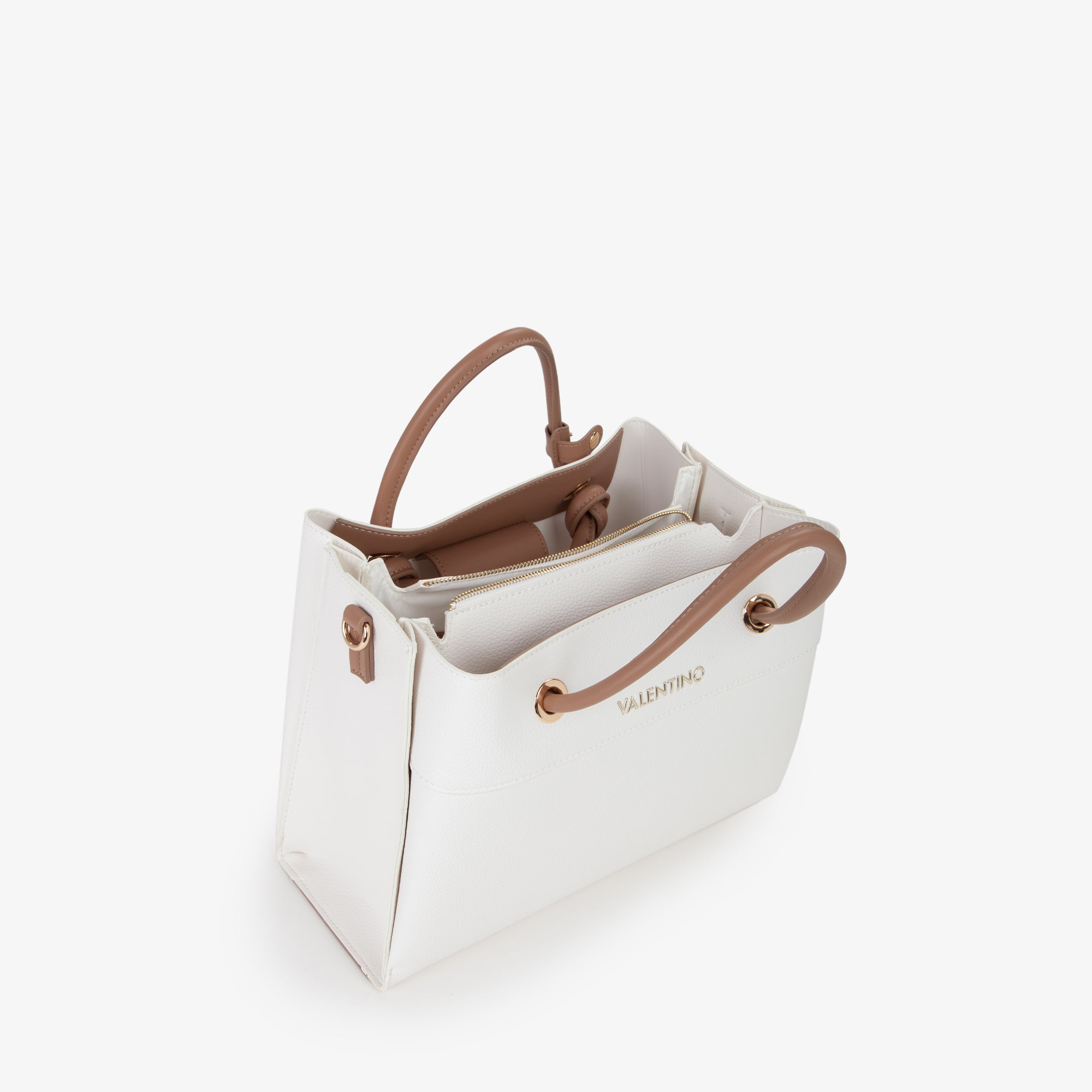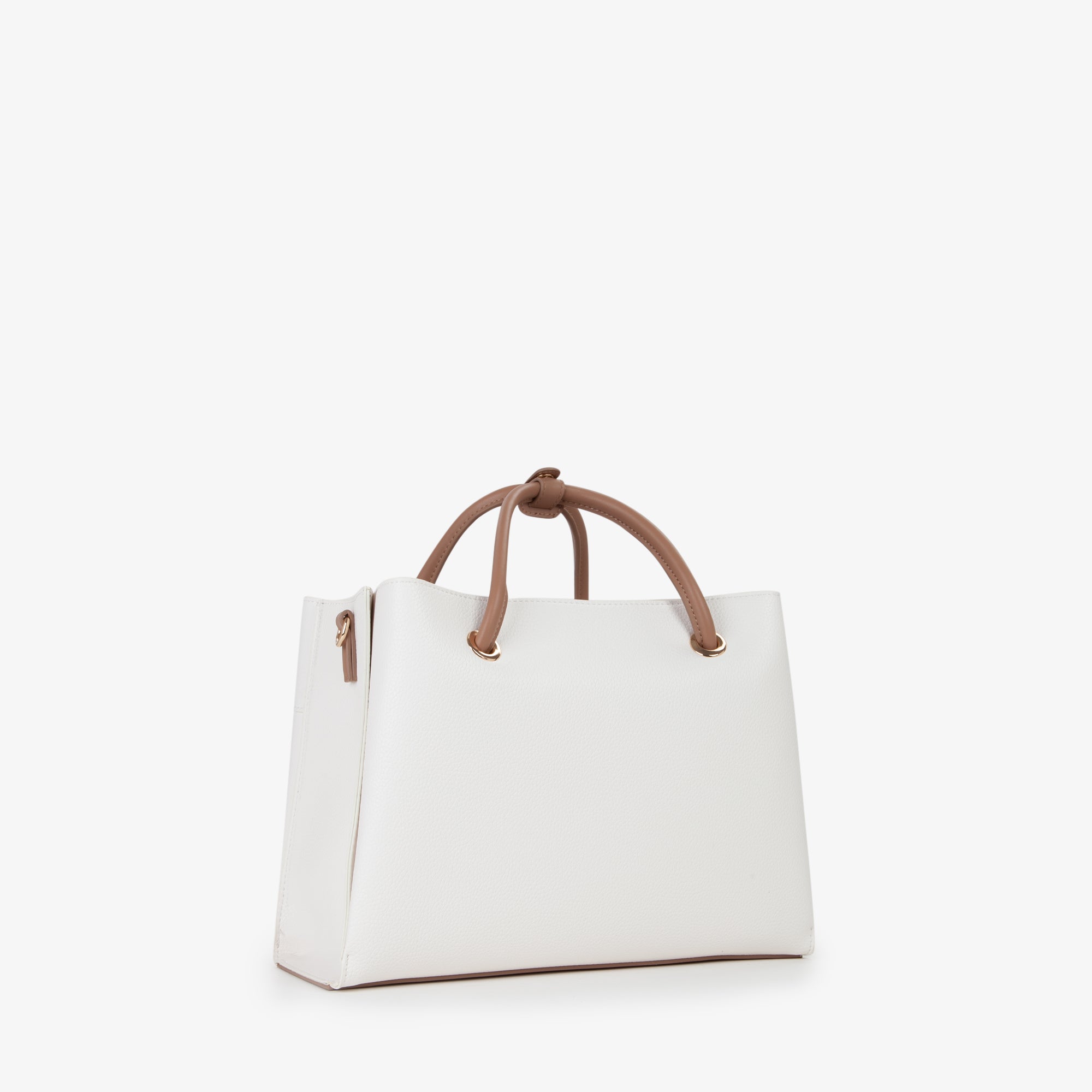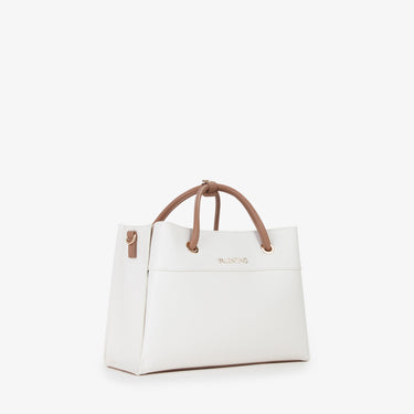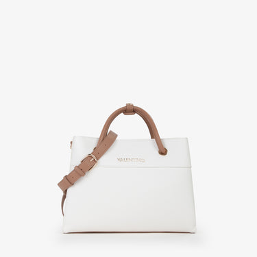 Let yourself be captivated by the refined practicality of the new Valentino shopping bag. With a structured design and two-tone details, this accessory is a true must-have for the season. Carry it as you prefer: it has two top handles for an elegant style and a removable and adjustable shoulder strap for maximum comfort. The brand label and the hanging charm add that unique touch that doesn't go unnoticed, while the top closure securely stores everything you need. Feet on the base ensure stability wherever you go.