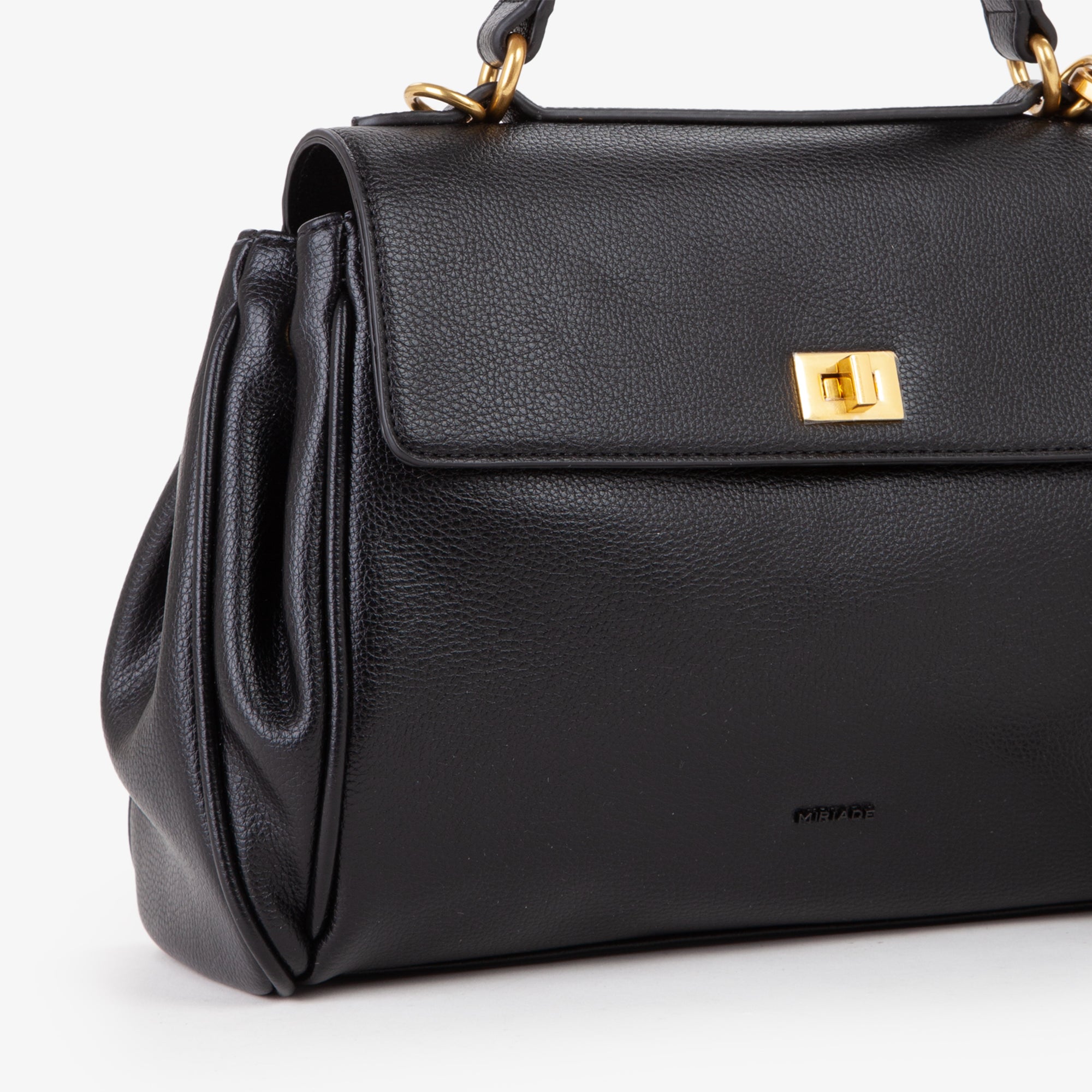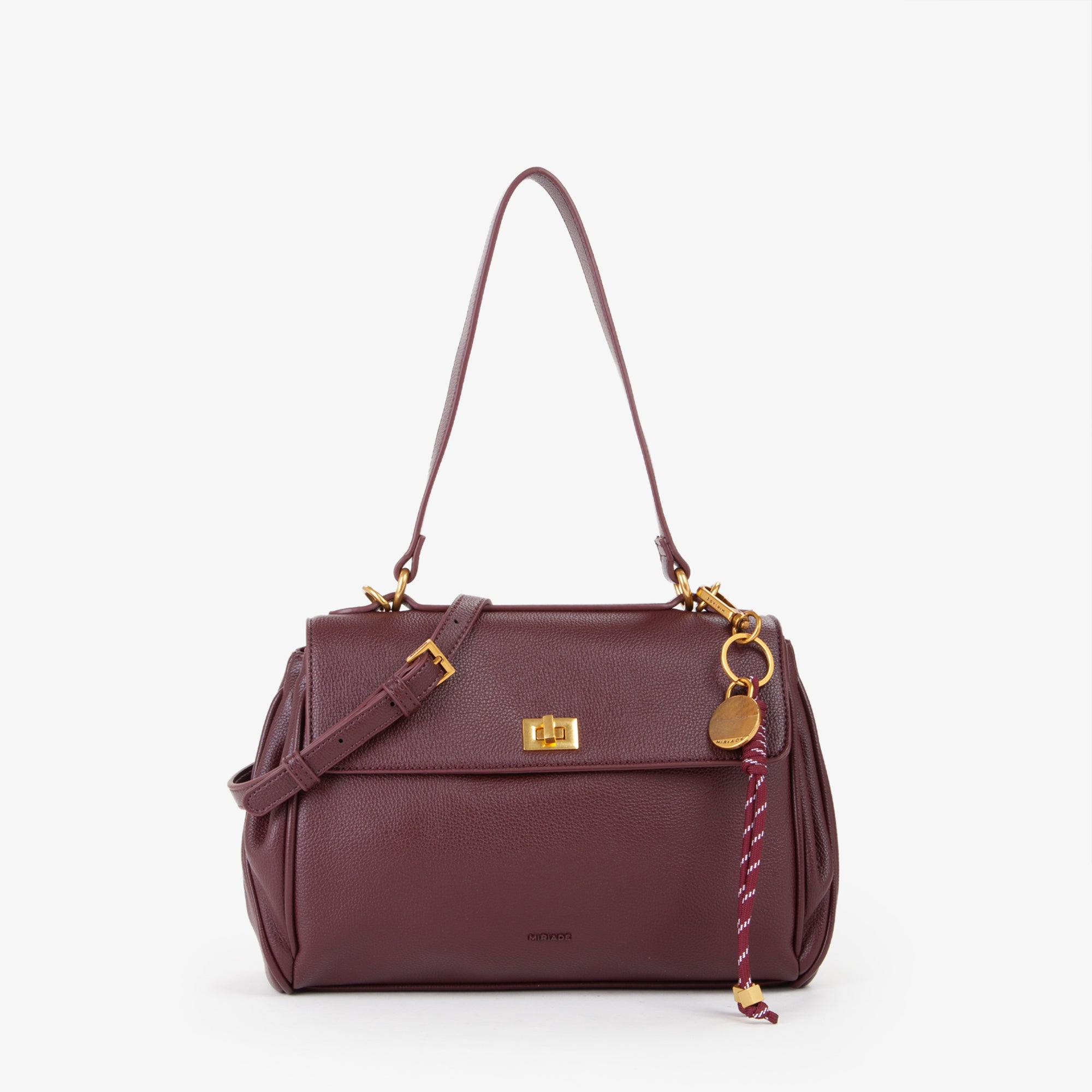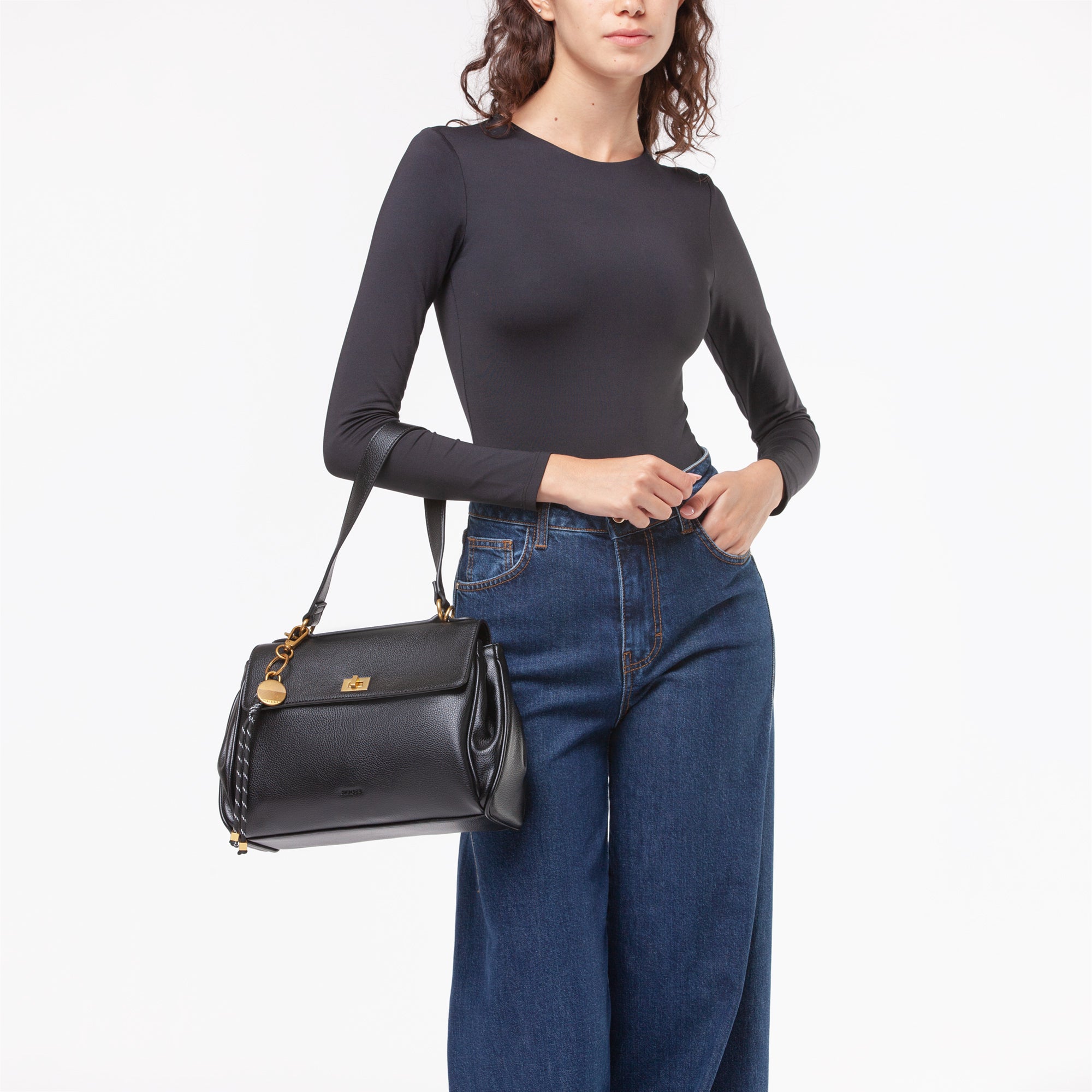 questa borsa in grana aggiunge un tocco di sofisticatezza ai look quotidiani. -Il design strutturato è completato da una patta con chiusura a girello, che garantisce sicurezza e stile.-La tracolla regolabile, attaccata tramite anelli metallici dorati, offre comfort e versatilità, permettendo di adattare la borsa a tutte le esigenze.-Inoltre, la borsa è arricchita da un ciondolo colorato attaccato, che aggiunge un tocco di vivacità e personalità.
