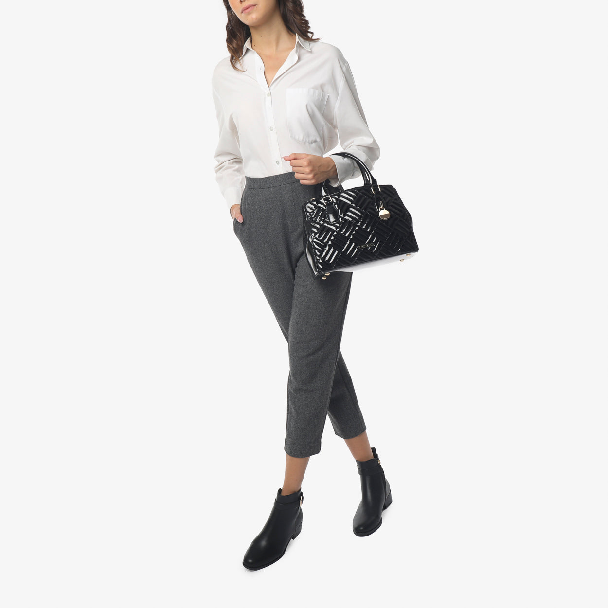 Meet the Shopping FREE bag by Miriade, your perfect companion for everyday adventures. With its modern design and glossy finish, it's a must-have in your wardrobe. Featuring an elegant and structured pattern, this bag comes with an adjustable and removable double strap, allowing you to carry it by hand, over the shoulder, or crossbody. The zip closure ensures security and convenience, while inside you'll find a small beauty pouch to keep your personal items organized. A stylish and functional choice for those who love to stay on trend.