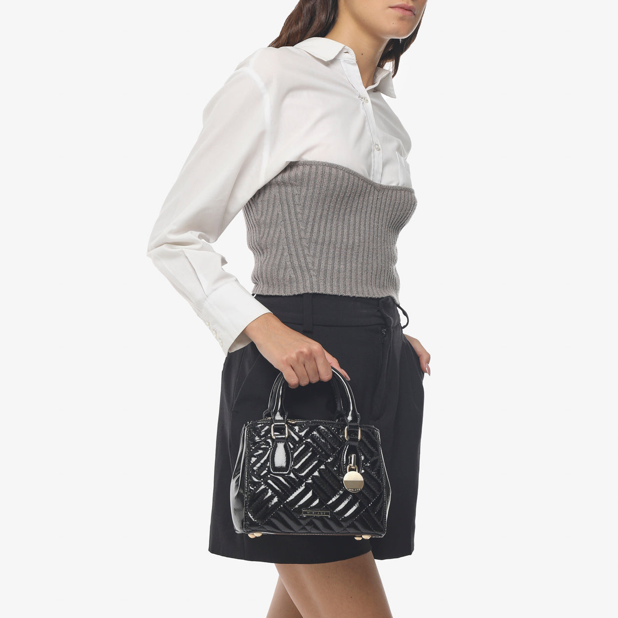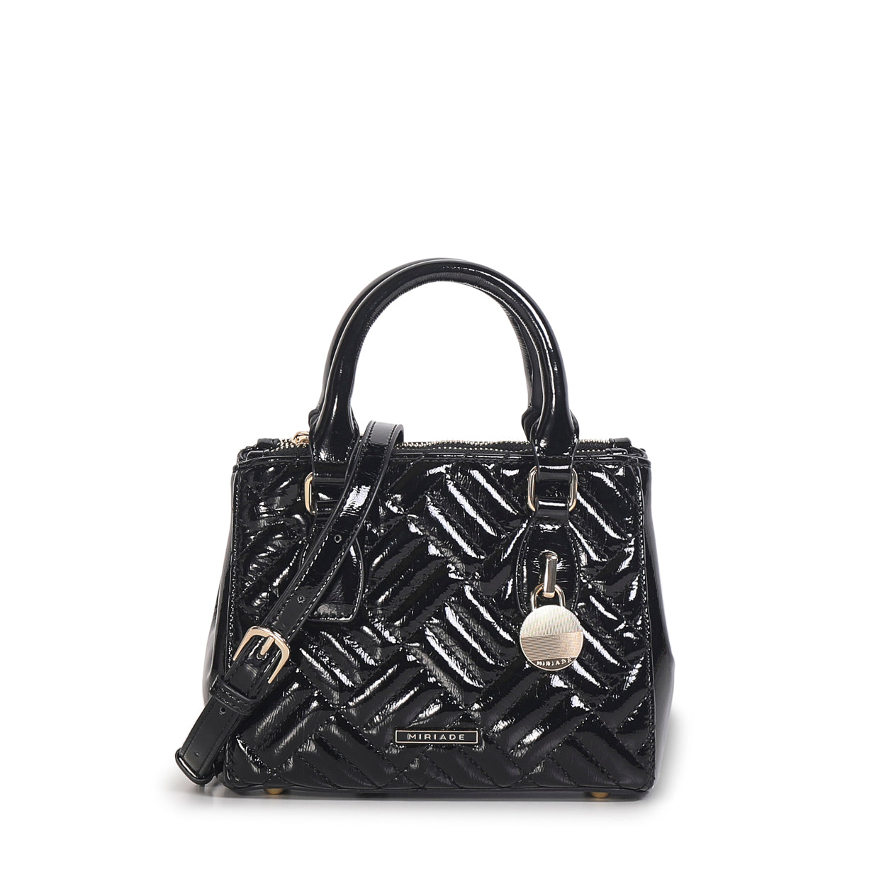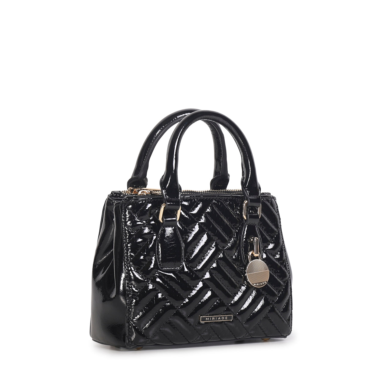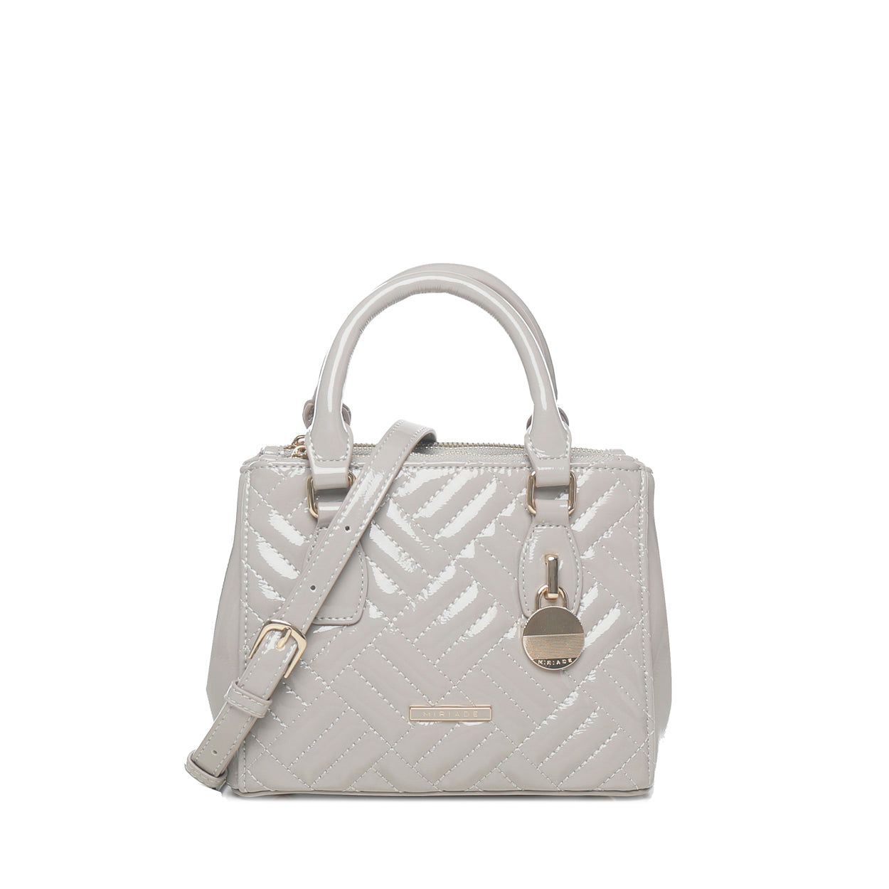 The Shopping FREE by Miriade is your ideal daily companion. With its eye-catching design, this bag combines practicality and style in one accessory. Its glossy finish and geometric pattern make it truly unique. You can carry it by hand, over the shoulder, or crossbody thanks to the adjustable and removable double strap. The zip closure ensures security and ease of use, while inside you'll find plenty of room for all your essentials, including a small beauty pouch for your accessories.