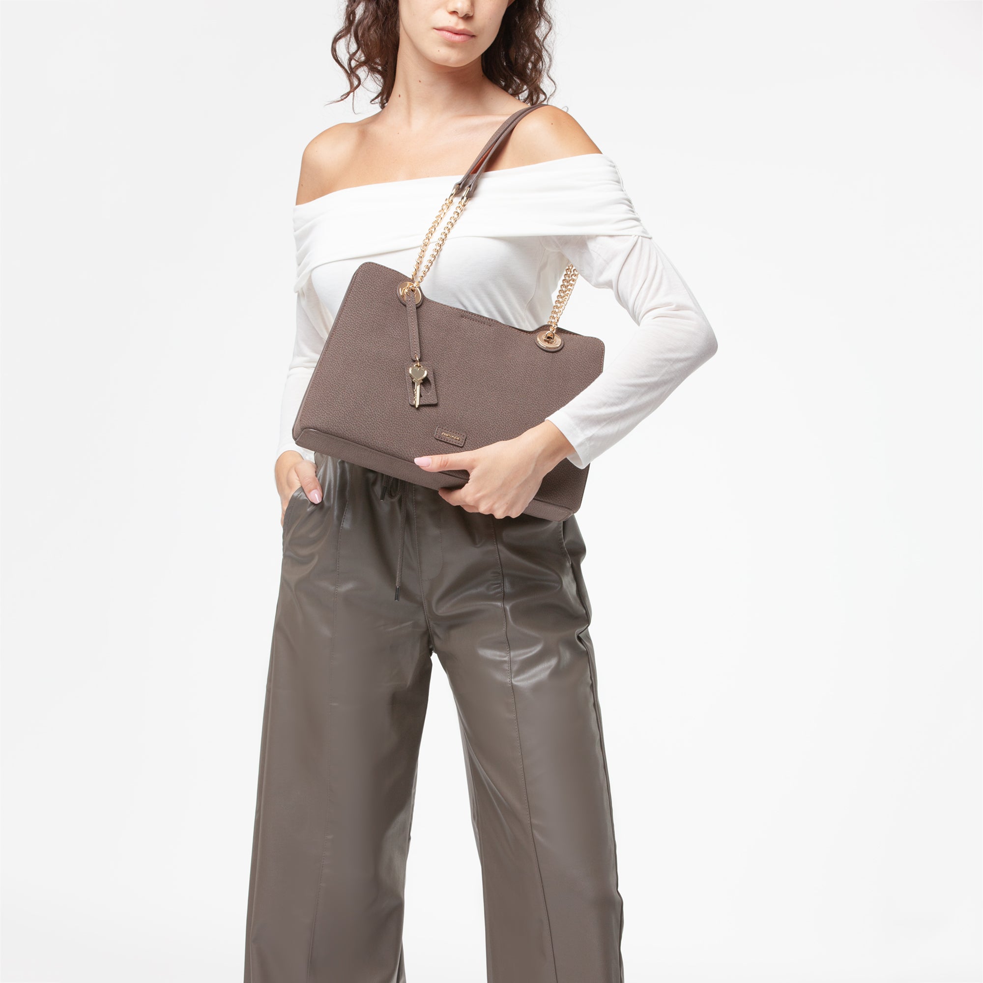 Eleganza e originalità si incontrano in questa raffinata borsa a spalla, impreziosita da un esclusivo ciondolo a forma di di chiave.Il design sofisticato la rende perfetta per chi cerca un accessorio pratico ma distintivo. Il manico è pratico ed elegante.undefined