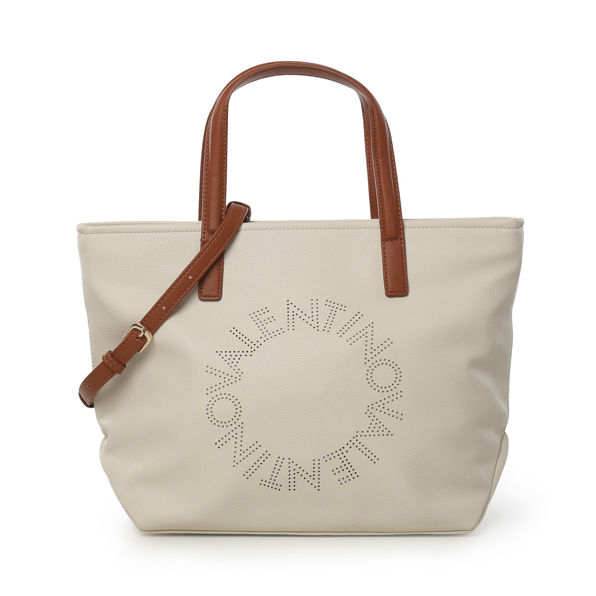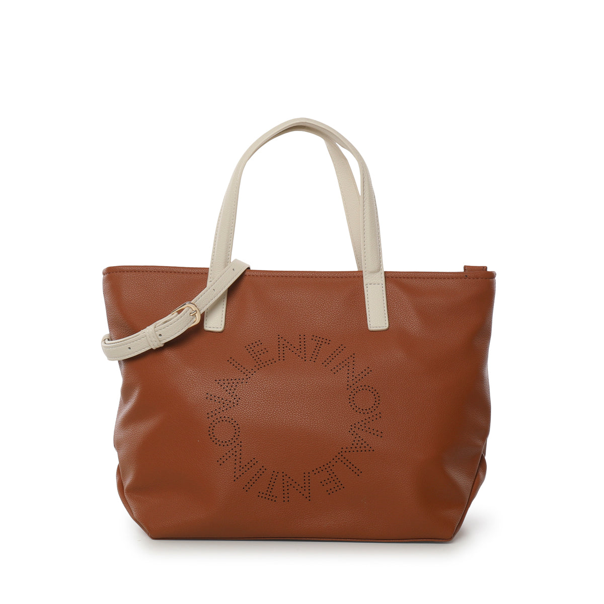 The SHOPPING STARFISH RE by Valentino is your go-to for busy days. Its eye-catching grain finish makes it both practical and trendy. The perforated central logo adds a distinctive touch, while the contrasting trims complete the look. It's equipped with a removable and adjustable strap, allowing you to wear it over the shoulder or by hand. Multiple compartments and a zip closure make it super functional, perfect for organizing all your essentials. Inside, you'll find a mini beauty case for those small items you don't want to lose sight of. A must-have for those who love to combine style and practicality.