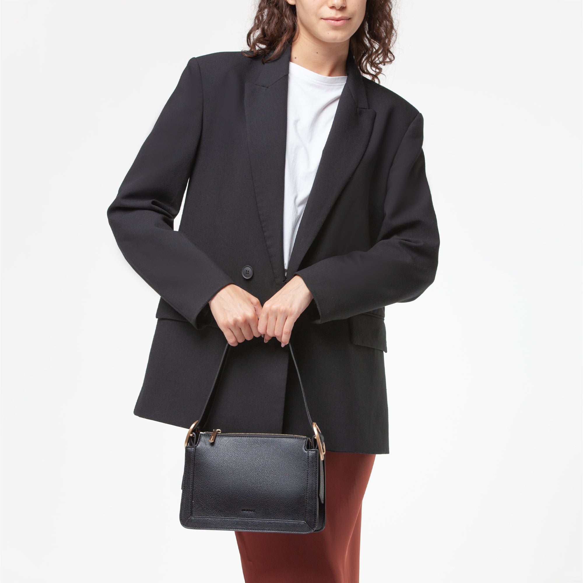borsa in grana morbida, un accessorio elegante e versatile perfetto per ogni occasione.-Il design della borsa è caratterizzato da unmanico regolabile, che permette di adattare la lunghezza per un comfort ottimale. Il manico è fissato alla borsa tramite una fibbiaovale, un dettaglio distintivo che aggiunge un tocco di eleganza e raffinatezza.-Le dimensioni della borsa sono ideali per l'uso quotidiano, offrendo stabilità e comfort durante il trasporto. La chiusura superiore è pratica e sicura, permettendo di portare con setutti gli oggetti essenziali con stile.
