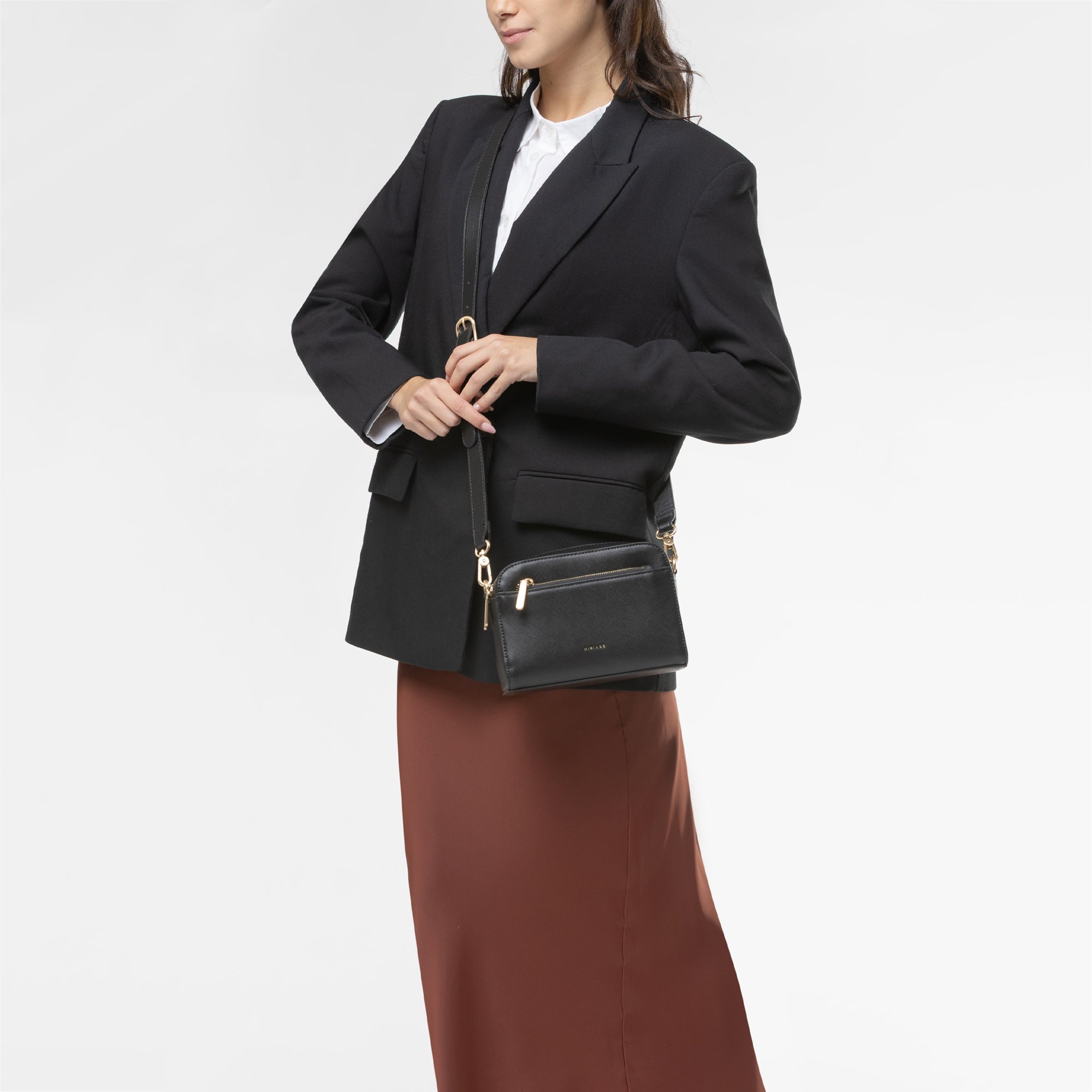 elegante tascapane in saffiano, un accessorio indispensabile per chi cerca stile e funzionalità. -Questa borsa offre una texture resistente e un aspetto raffinato, perfetto per ogni occasione.-è dotata di una tracolla regolabile e staccabile, offrendo la versatilità di portarla anche a spalla.-Le sue dimensioni la rendono ideale per contenere tutti gli oggetti essenziali.-Il logo MIRIADE sulla parte frontale aggiunge un tocco di eleganza e autenticità. -La borsa è perfetta per l'uso quotidiano, grazie alla sua combinazione di praticità e stile senza tempo.