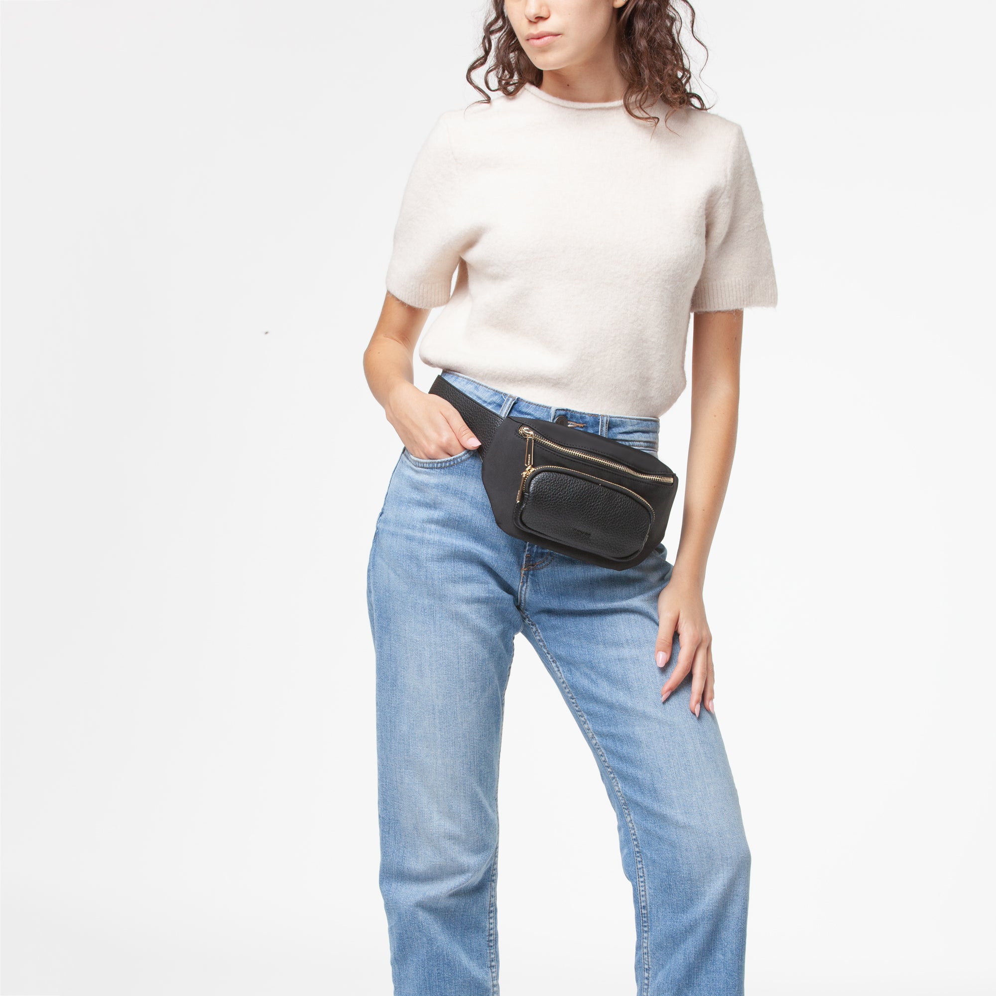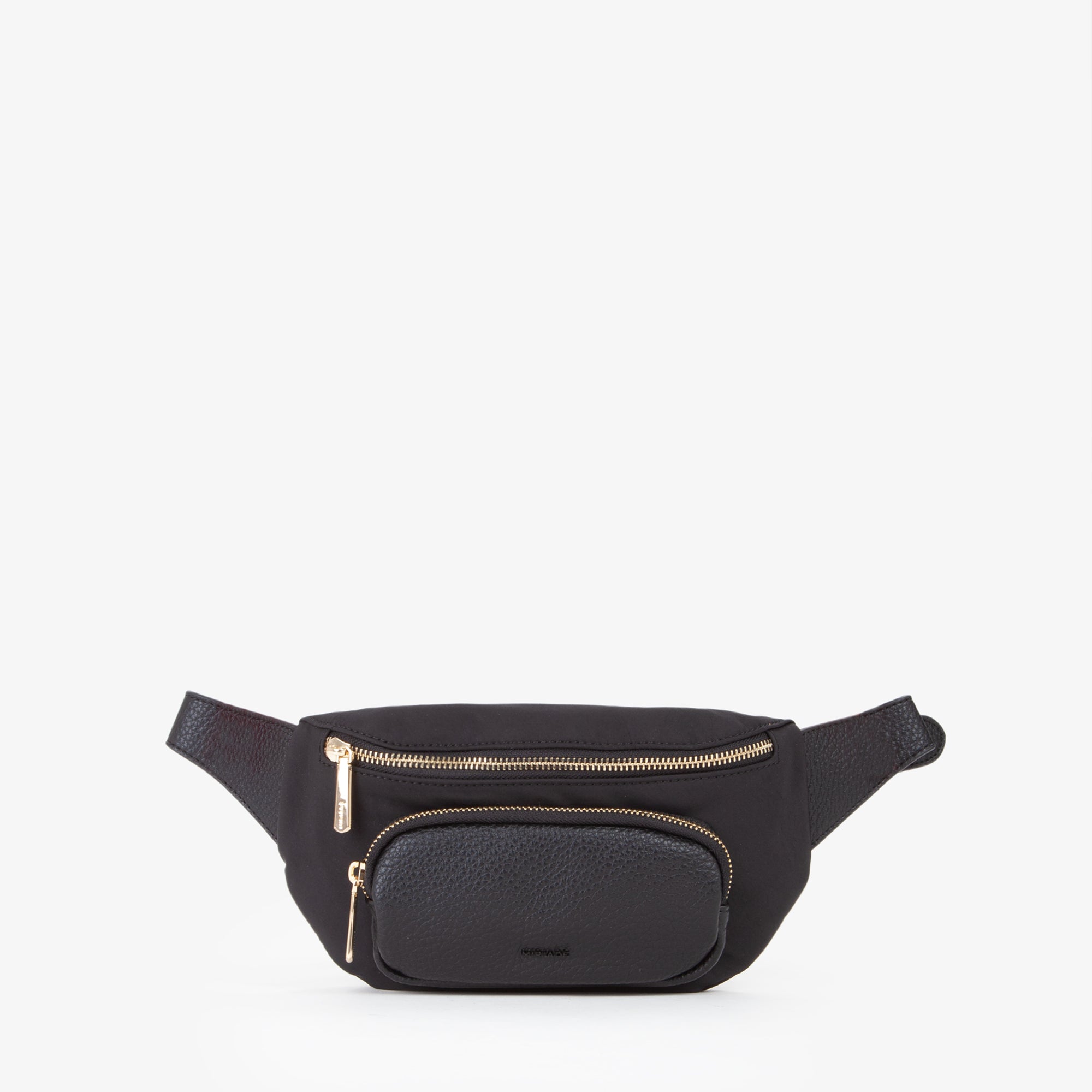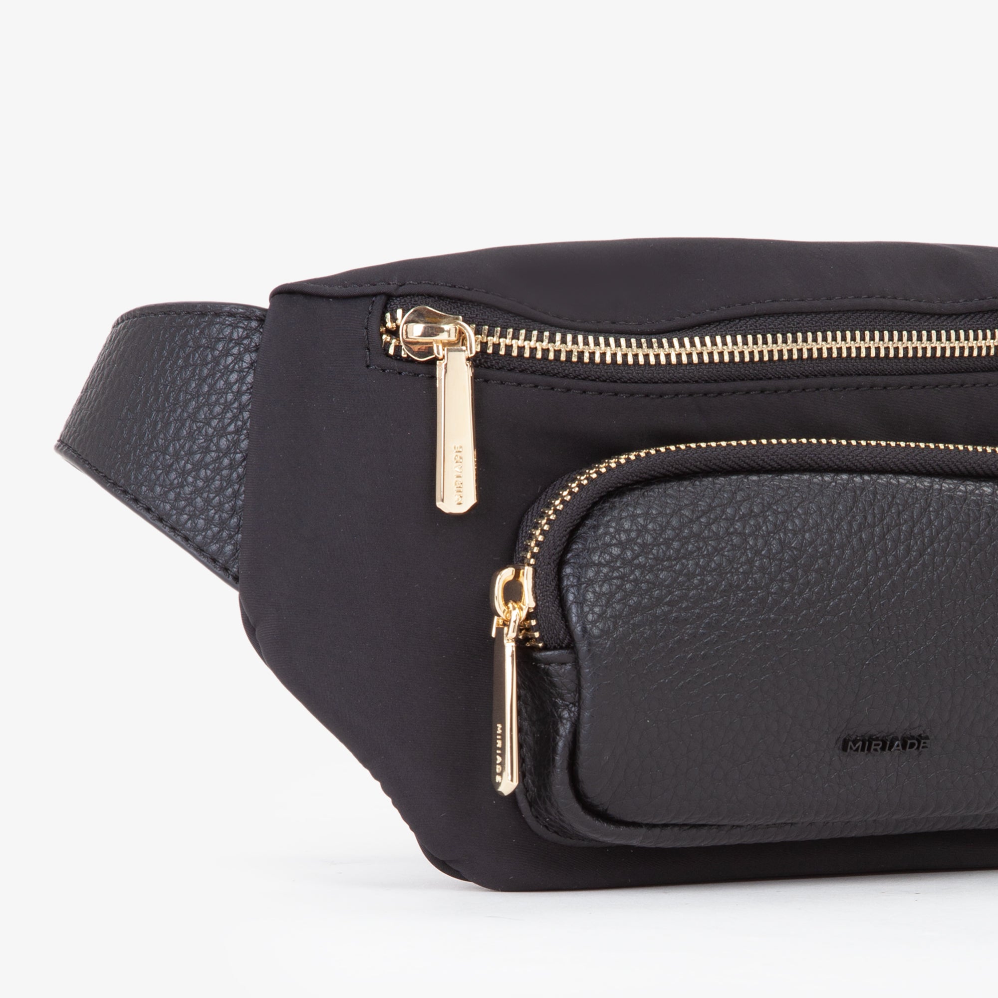 Questo marsupio in bimateriale nylon e grana presenta un design elegante e funzionale, ideale per chi cerca uno stile sofisticato senza rinunciare alla praticità.-ha una tracolla staccabile e regolabile per una maggiore versatilità d'uso. Sul frontale si trova unatasca con cerniera che offre spazio aggiuntivo per piccoli oggetti essenziali, mantenendo tutto ben organizzato. Le finiture metalliche dorate aggiungono un tocco di raffinatezza al design complessivo della borsa.undefined