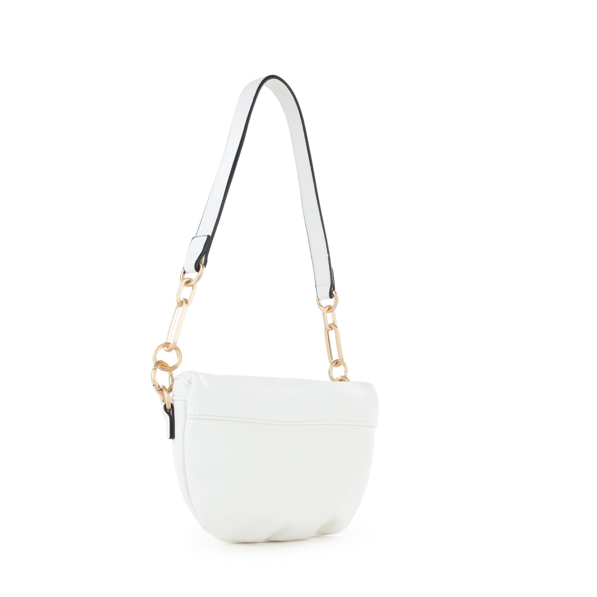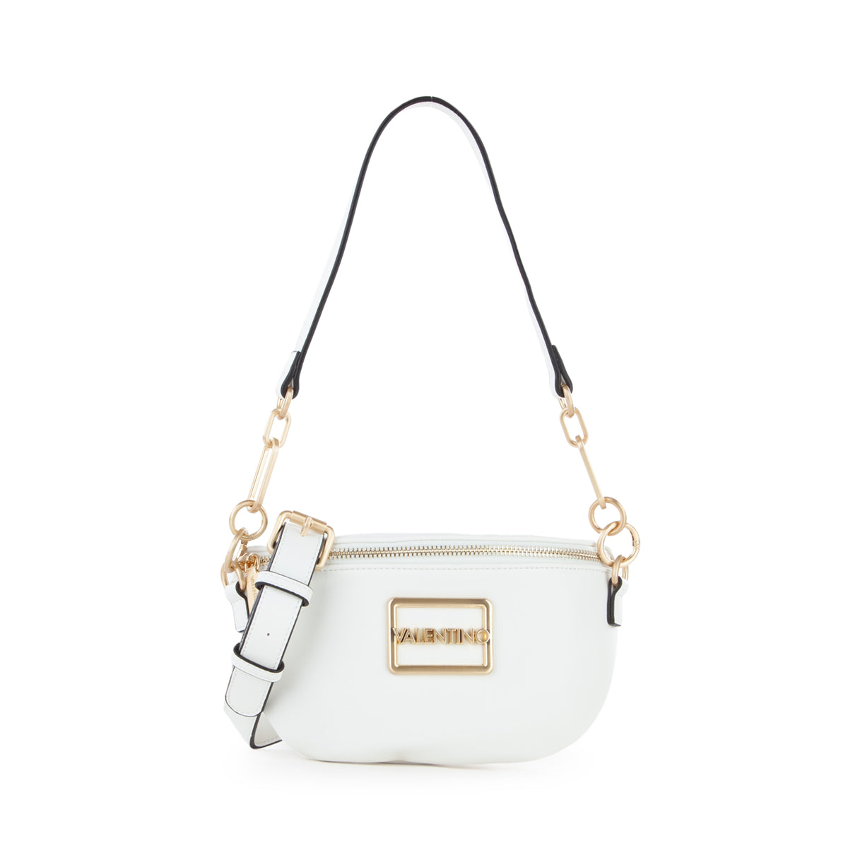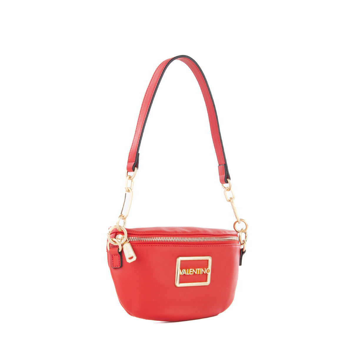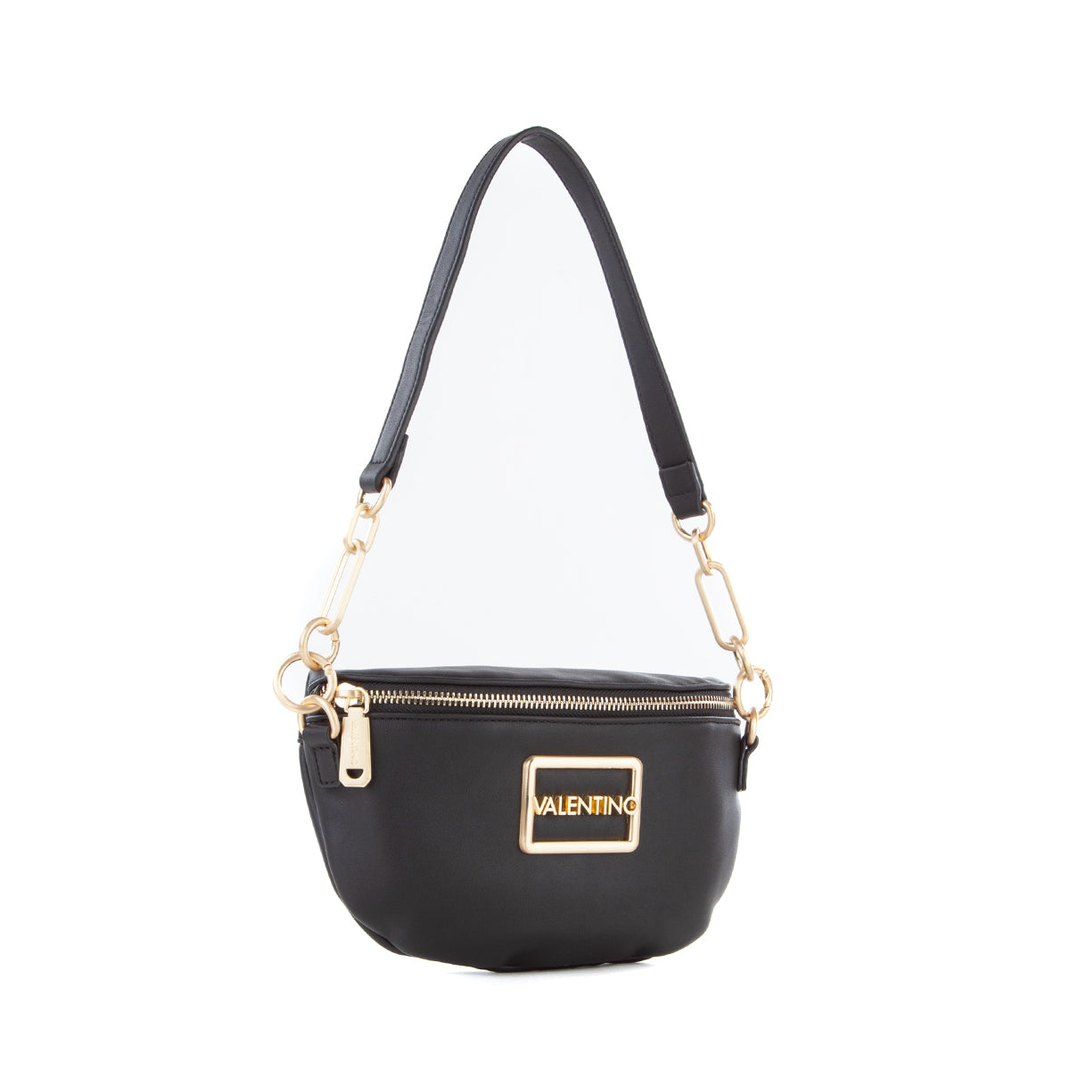 Marsupio in nappa liscia con accessorio logato sul fronte e dettagli metallici in oro satinato. tracolla lunga estraibile