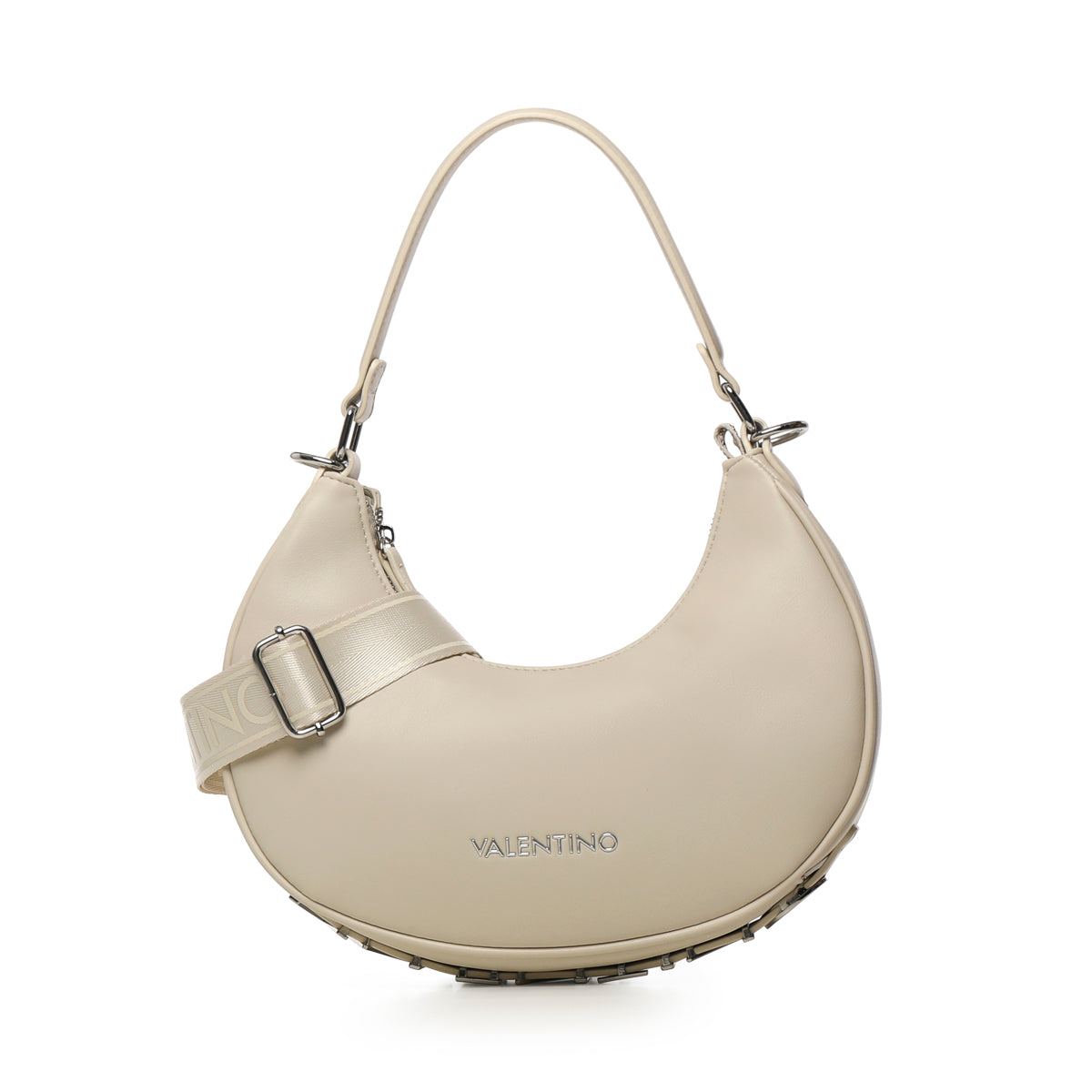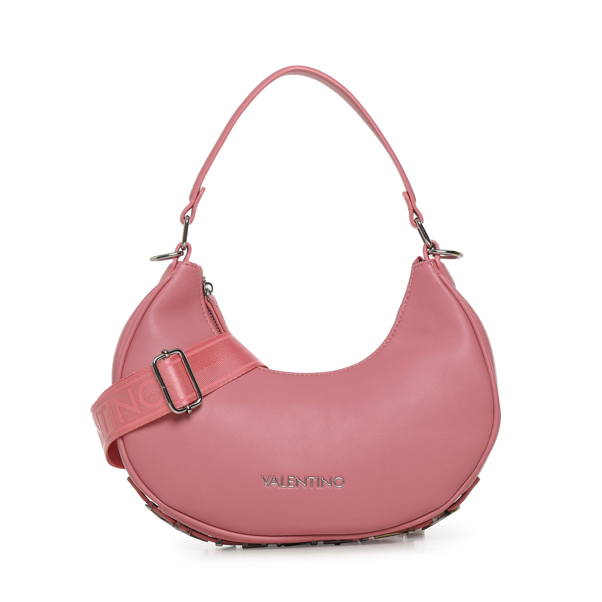 La Sacca COCONUT Valentino è una borsa a spalla comoda e raffinata, ideale per accompagnare ogni outfit e occasione. La finitura innappa riciclata garantisce un accessorio prodotto con soli materiali ecosostenibili. Il design dalle linee morbide e delicate è arricchito dal logo in metallo sul frontale e da un nastro sempre logato e staccabile. La chiusura a zip mantiene al sicuro gli oggettida organizzare negli scomparti multipli interni. Disponibile nei colori nero, rosso, rosa, lilla, grigio, off white e polvere.