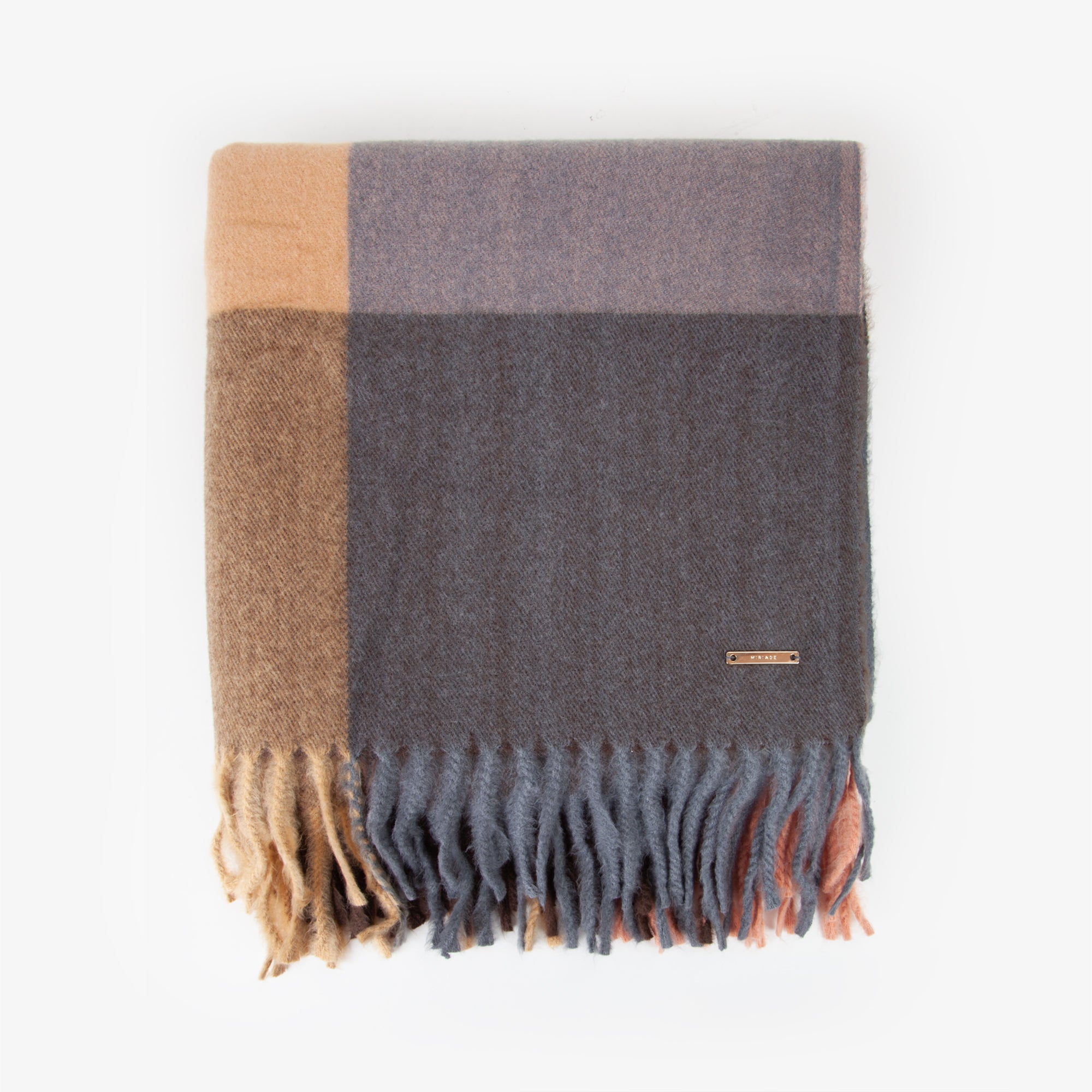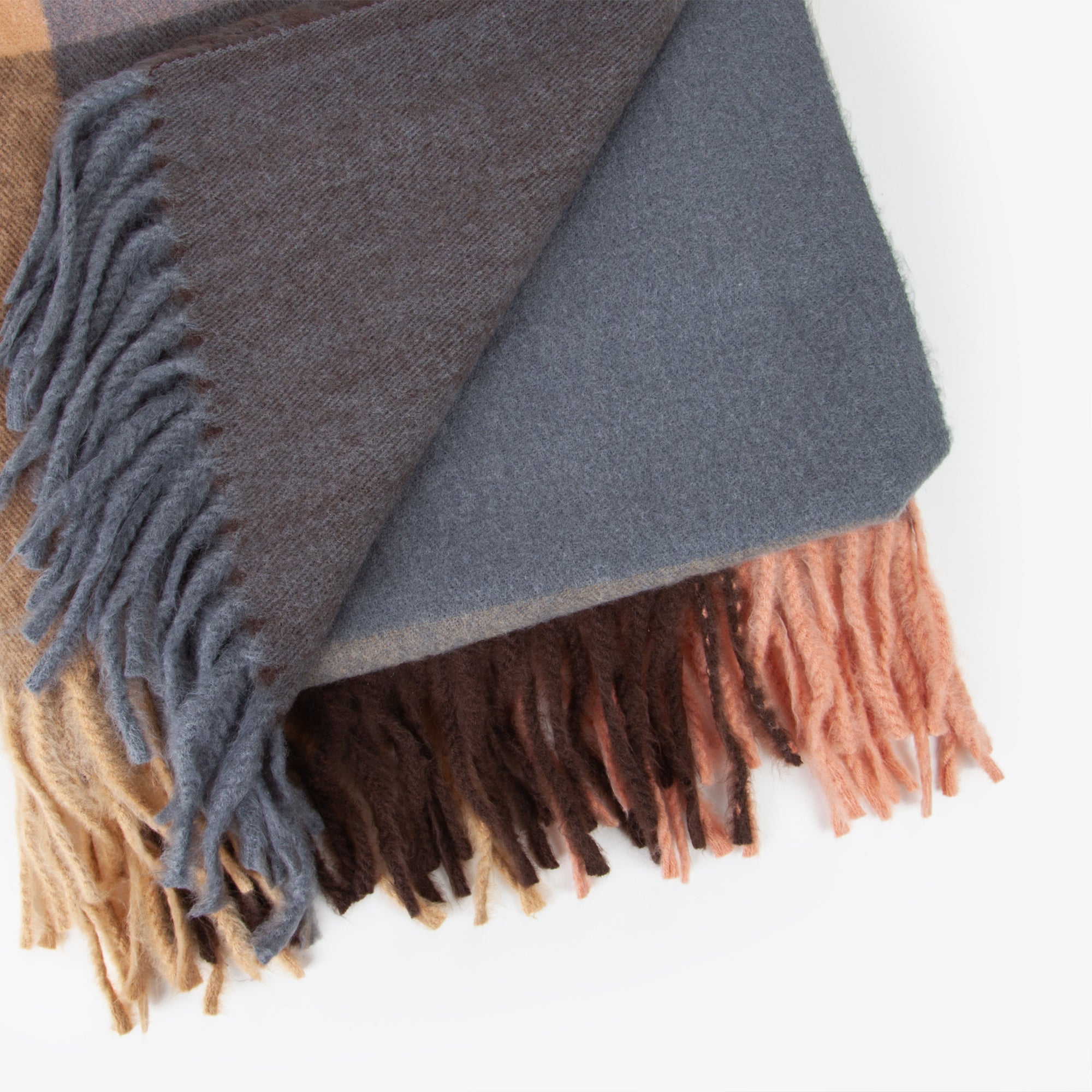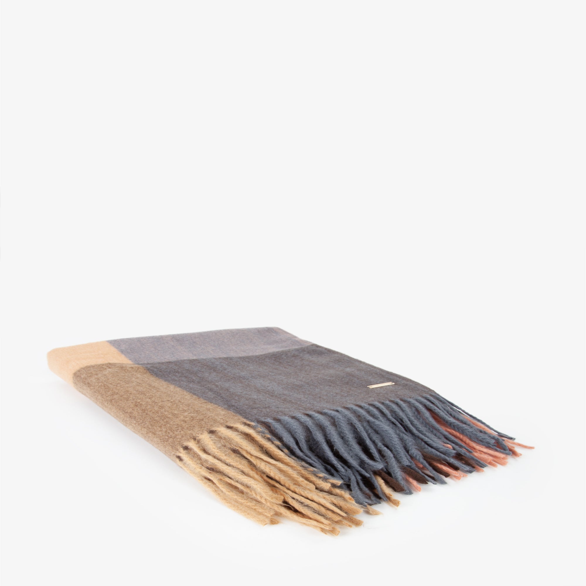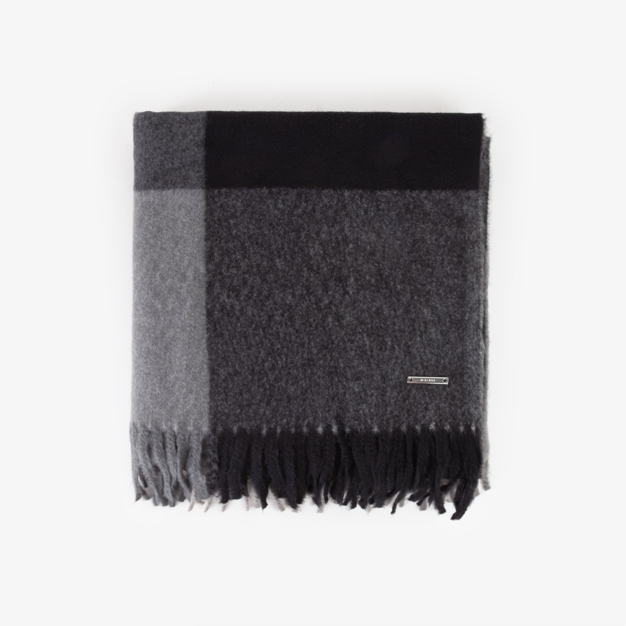 Questa sciarpa presenta una raffinata fantasia geometrica. Il design è caratterizzato da macro quadri, creando un contrasto elegantee moderno. Realizzata con fibre sintetiche di alta qualità che conferiscono morbidezza e durata, questa sciarpa è perfetta per aggiungere un tocco di classe a qualsiasi outfit, sia casual che formale. La combinazione dei colori neutri la rende versatile e adattaa tutti gli outfit.