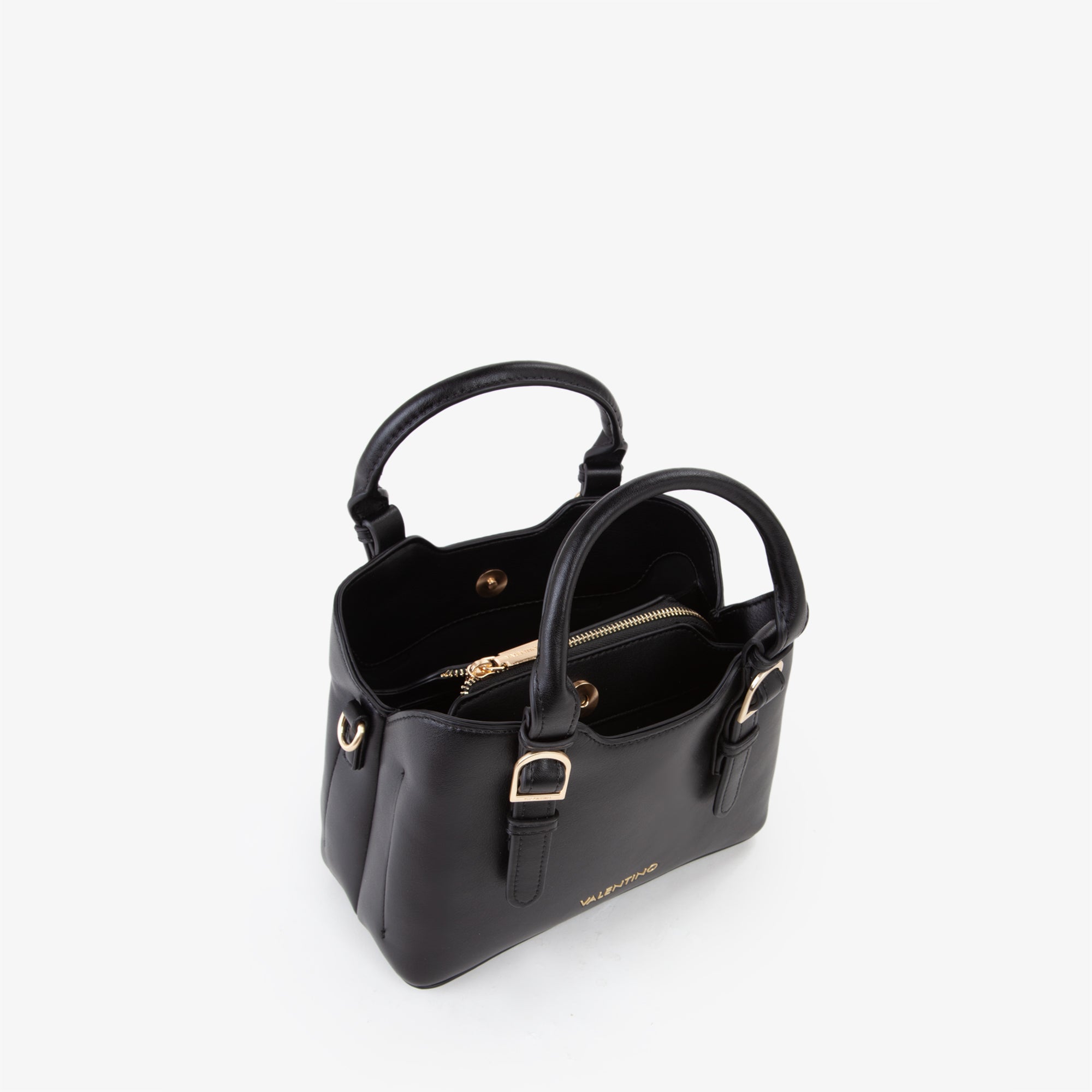 Shopping a mano, con logo gommato sul davanti e caratterizzata da fibbie decorative sul manico.