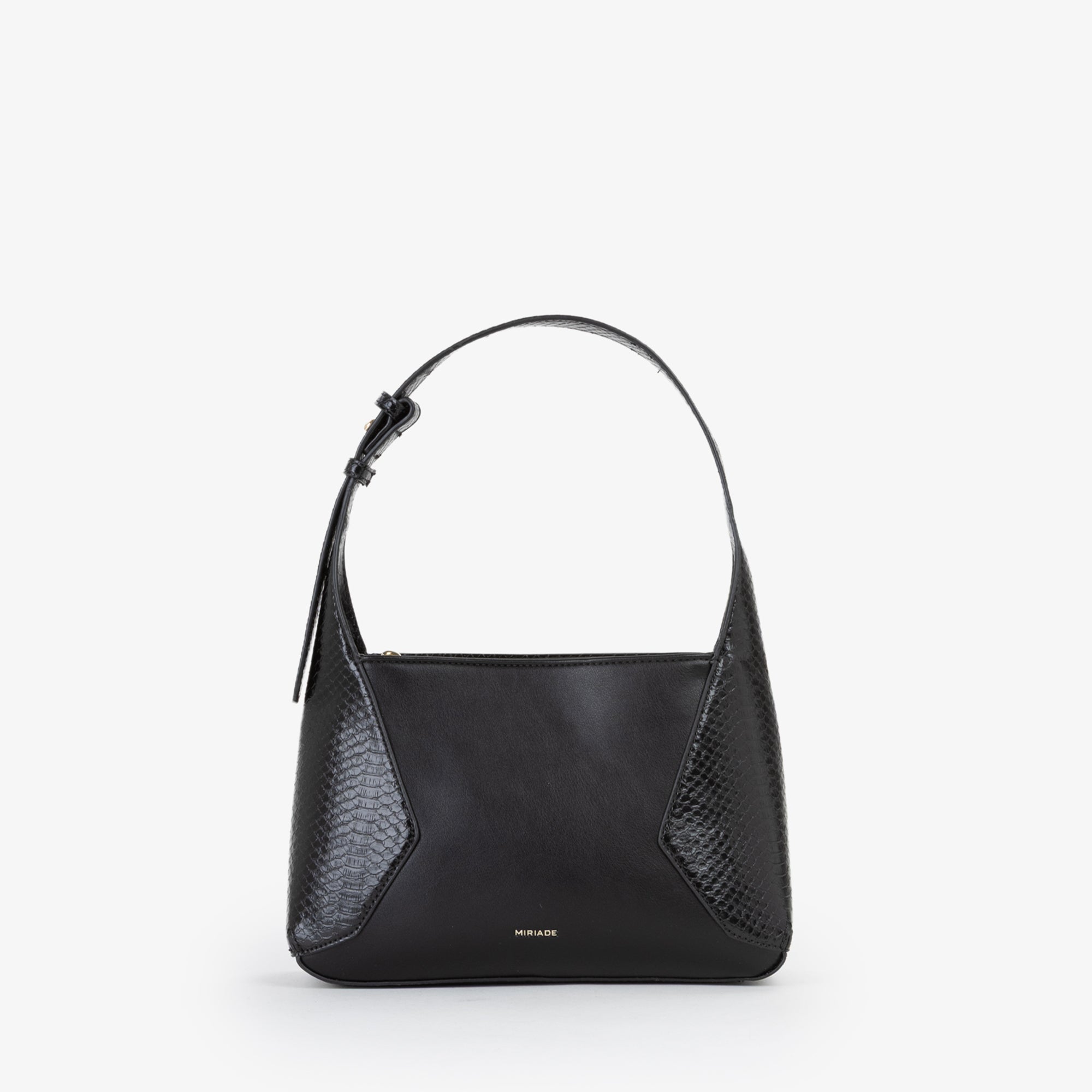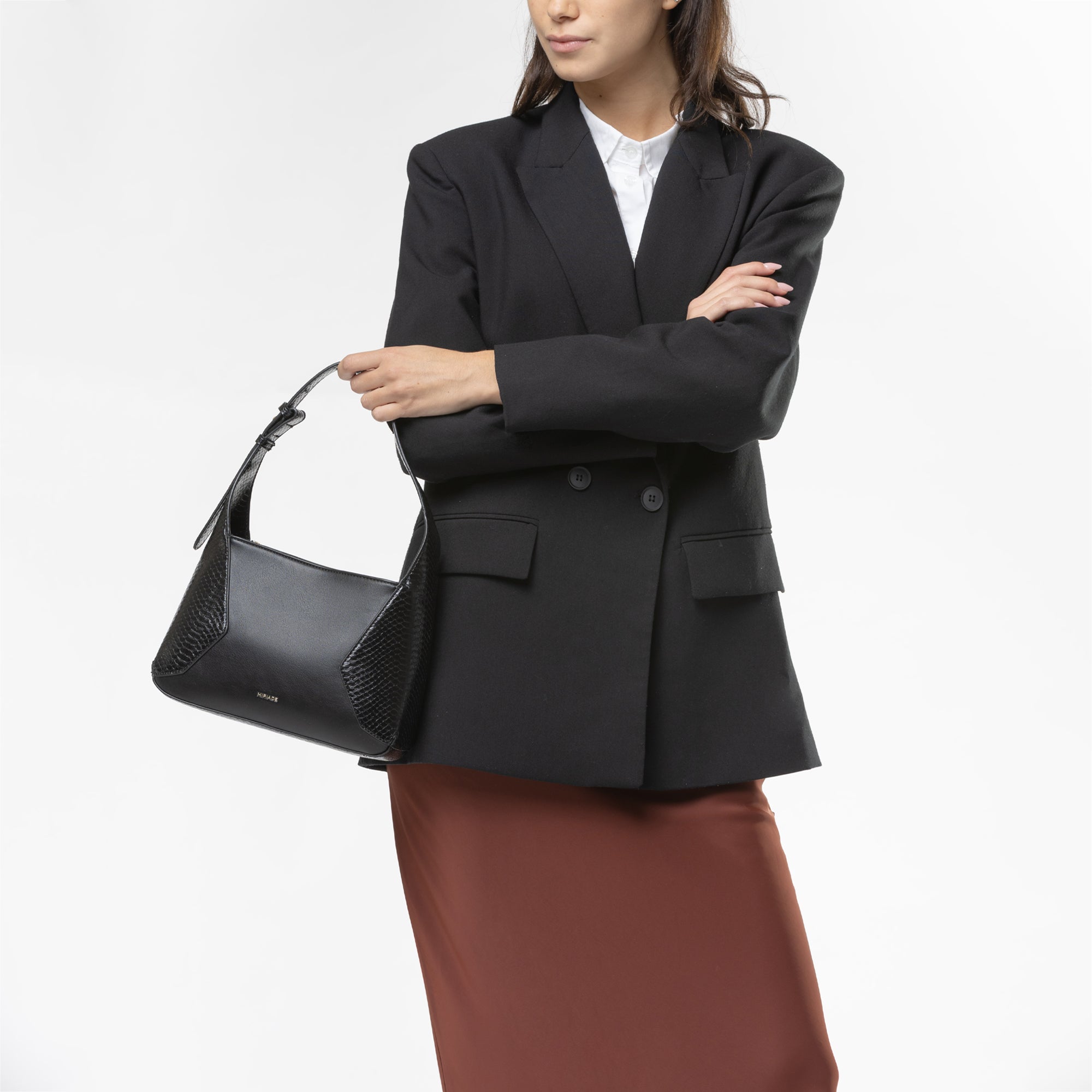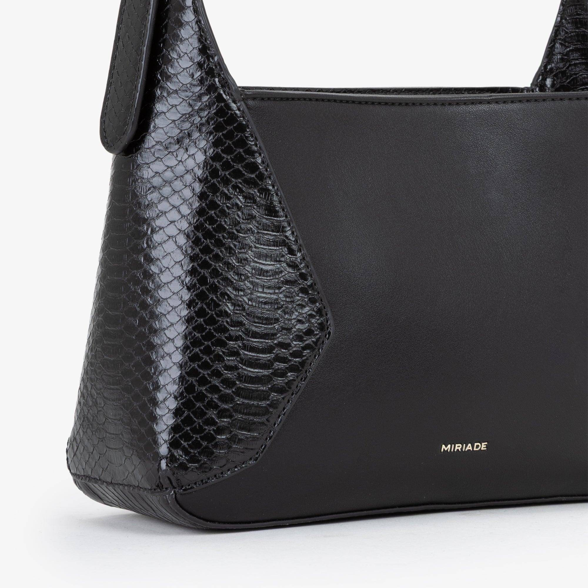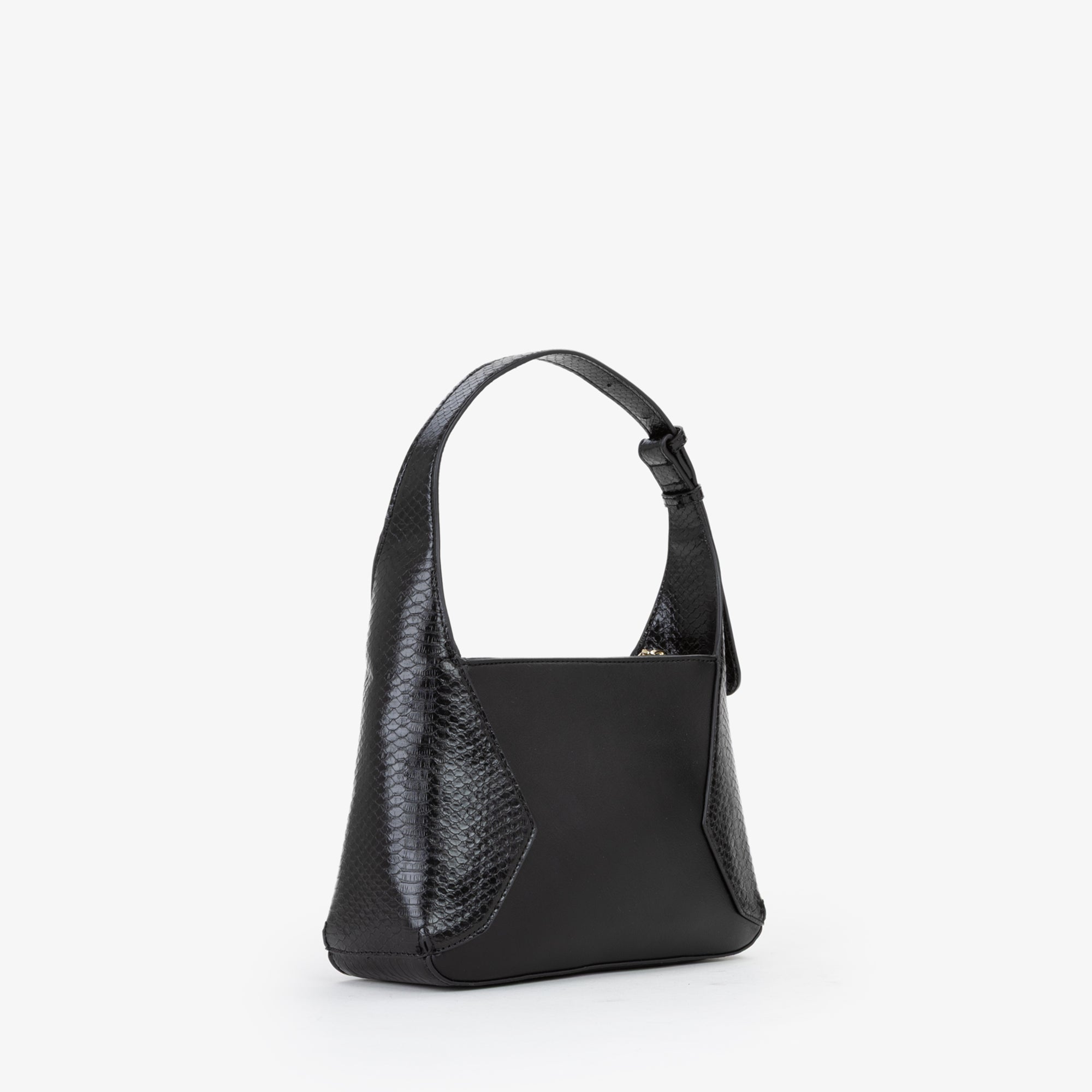 elegante borsa in bimateriale, un accessorio sofisticato e di tendenza perfetto per ogni occasione. Questa borsa combina la raffinatezza della nappa con l'audacia della texture a effetto pitone, creando un design unico e di alta qualità.-Il corpo centrale della borsa è realizzato in nappa, che offre una texture morbida e lussuosa. I lati della borsa presentano una texture a effetto pitone, aggiungendo un tocco di esotismo e stile. Il manico corto regolabile garantisce una presa comoda e sicura, permettendoti di portarla con facilità.
