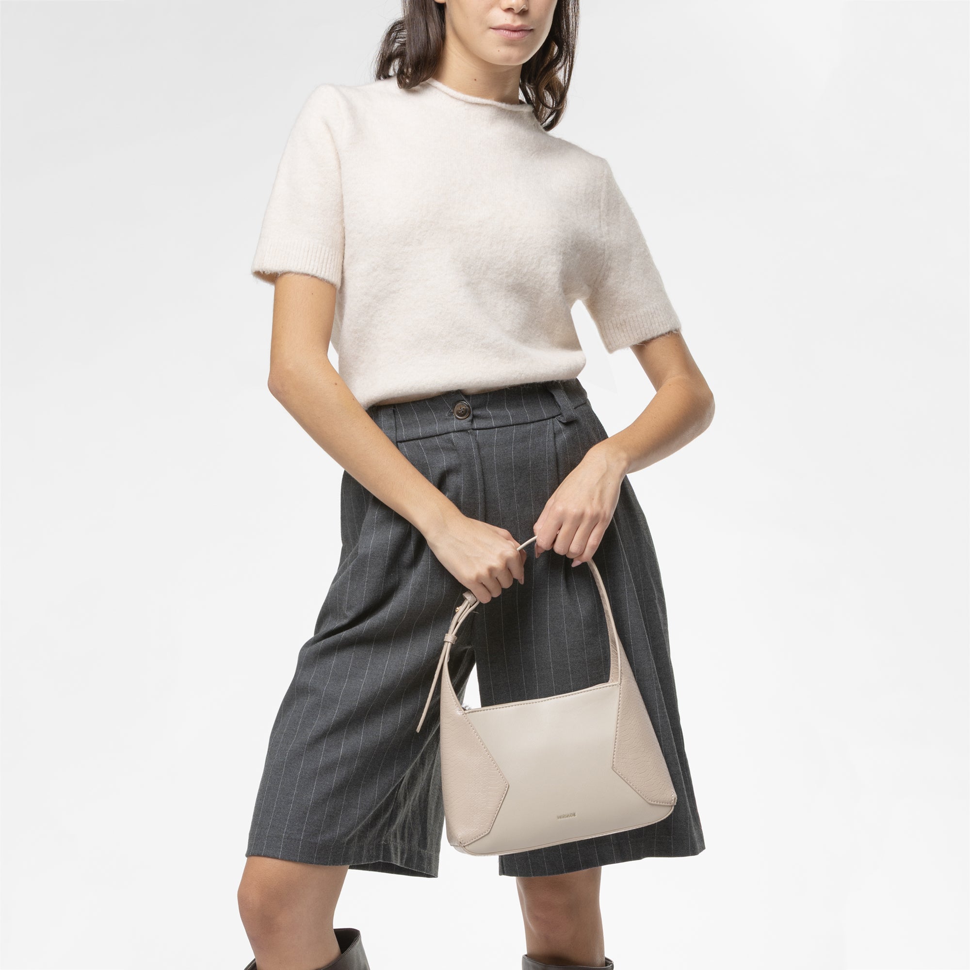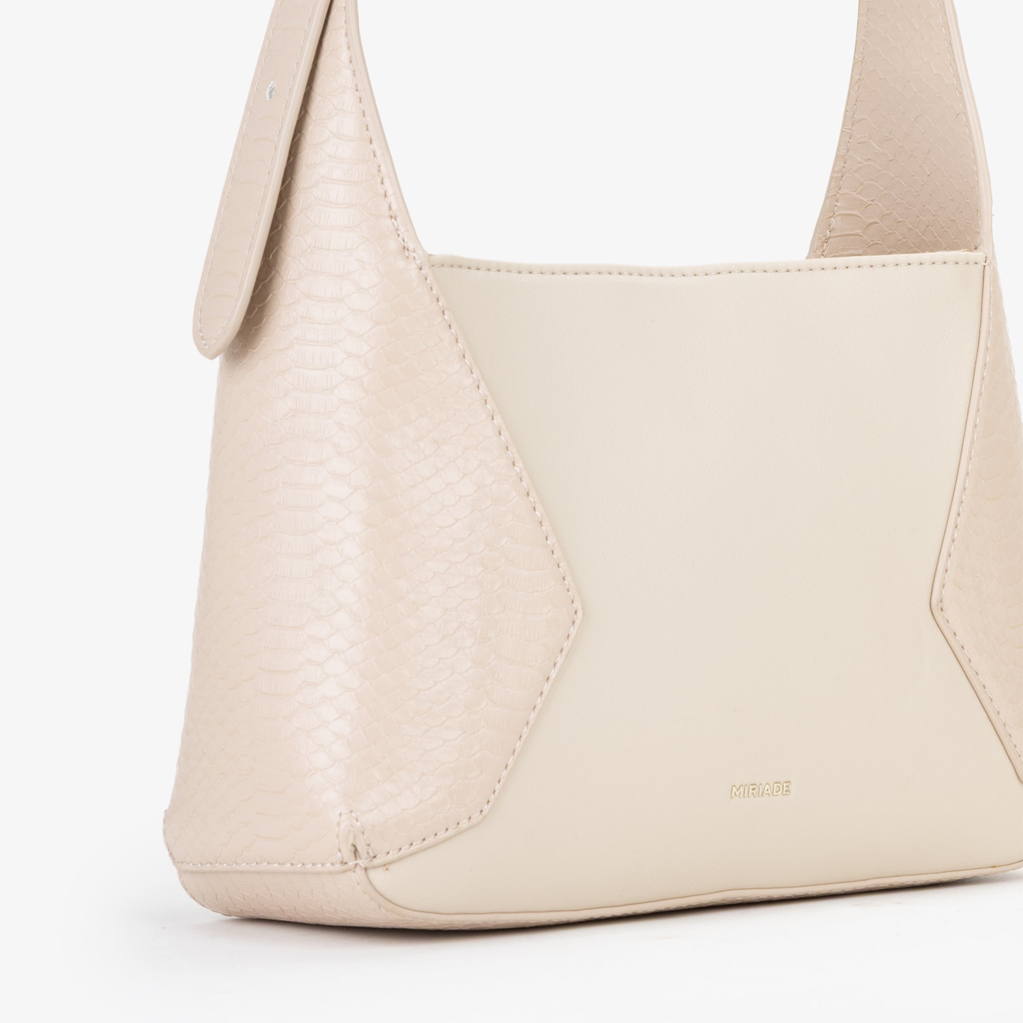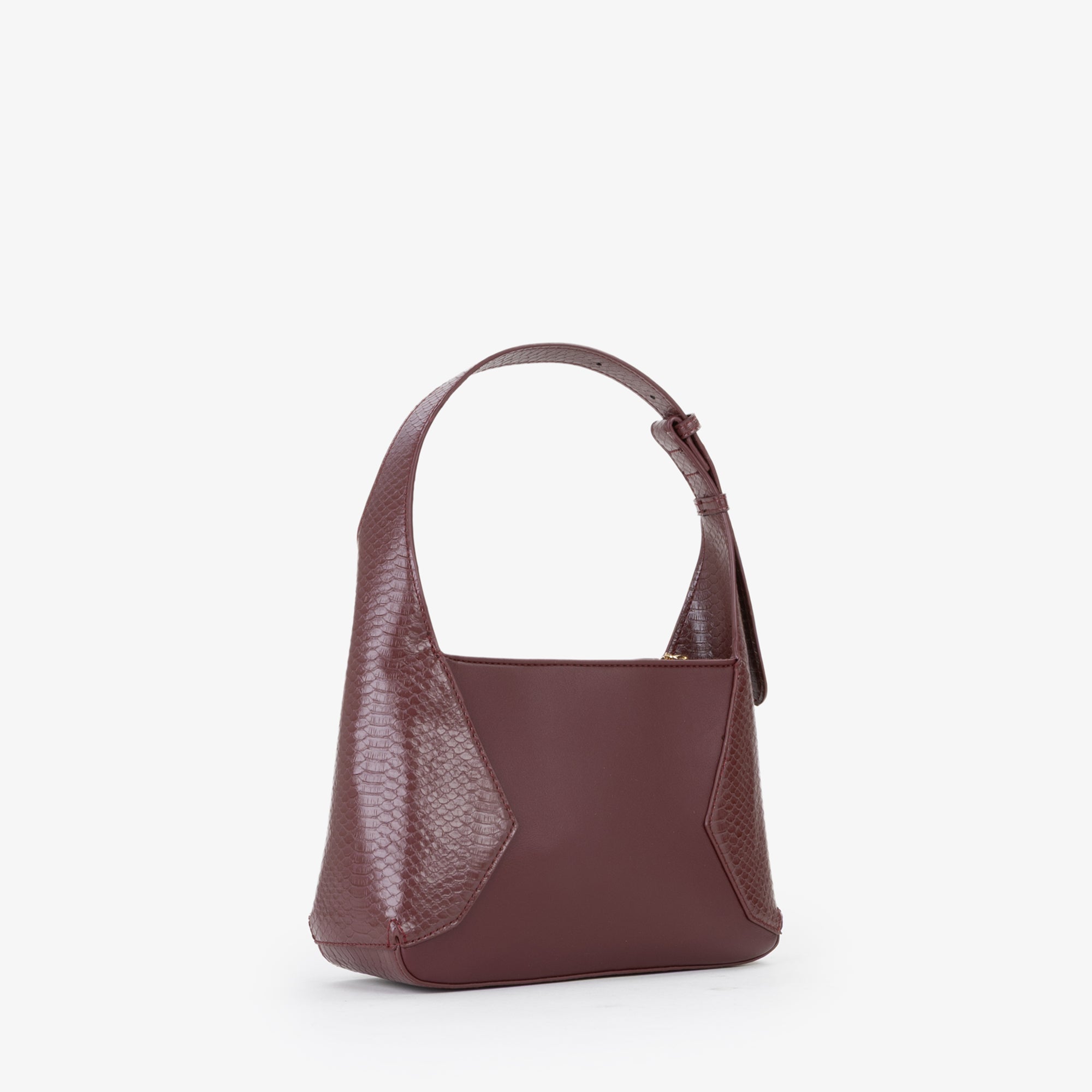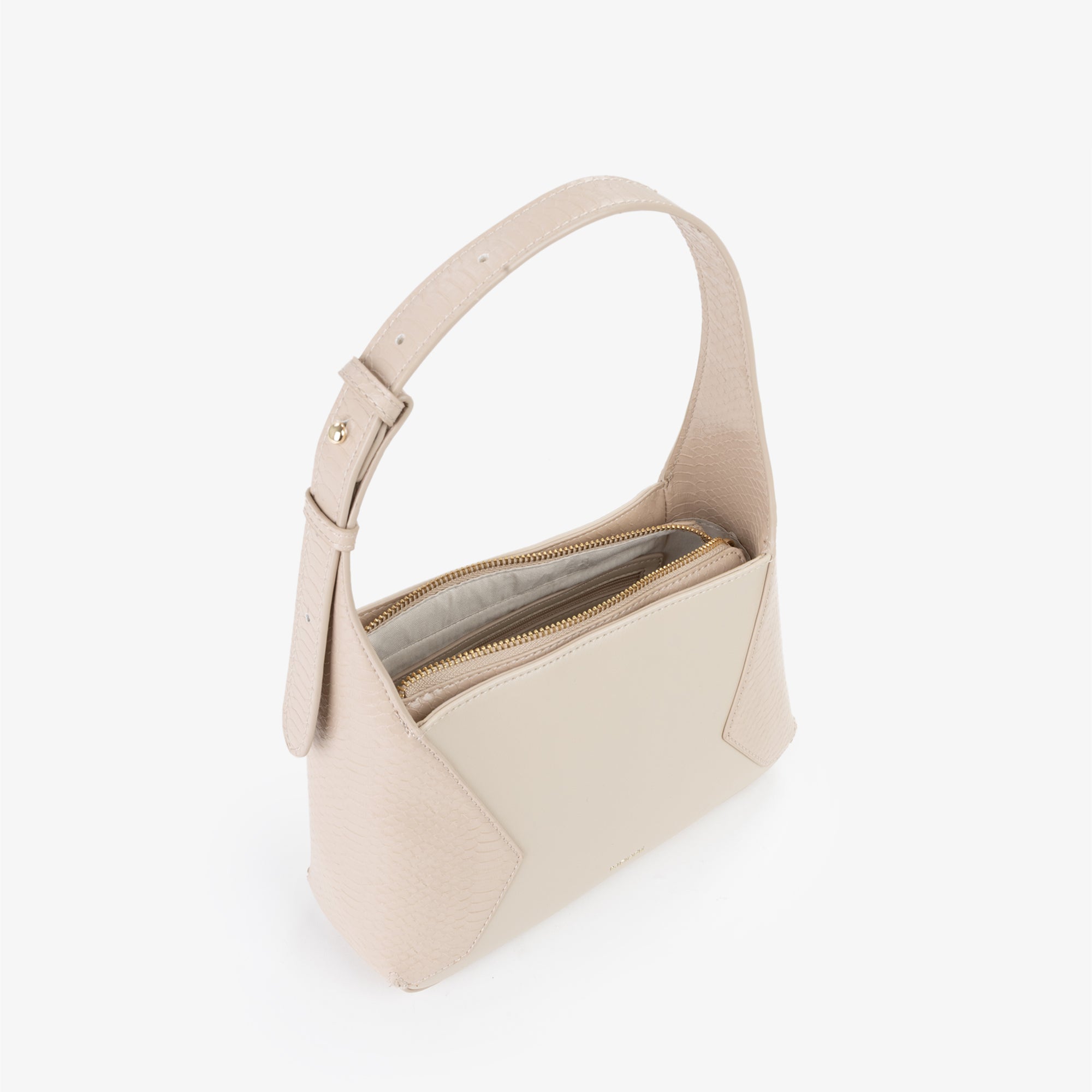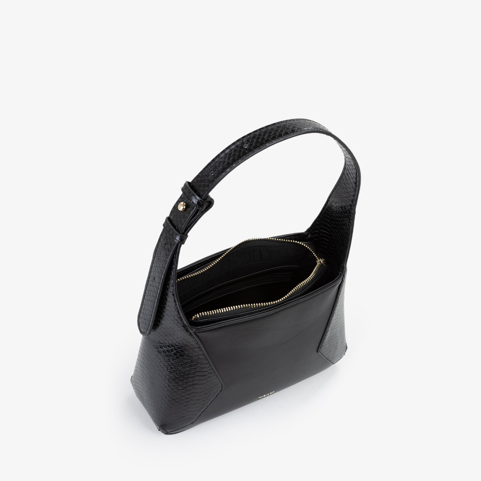 elegante borsa in bimateriale, un accessorio sofisticato e di tendenza perfetto per ogni occasione. Questa borsa combina la raffinatezza della nappa con l'audacia della texture a effetto pitone, creando un design unico e di alta qualità.-Il corpo centrale della borsa è realizzato in nappa, che offre una texture morbida e lussuosa. I lati della borsa presentano una texture a effetto pitone, aggiungendo un tocco di esotismo e stile. Il manico corto regolabile garantisce una presa comoda e sicura, permettendoti di portarla con facilità.
