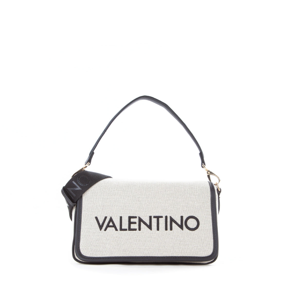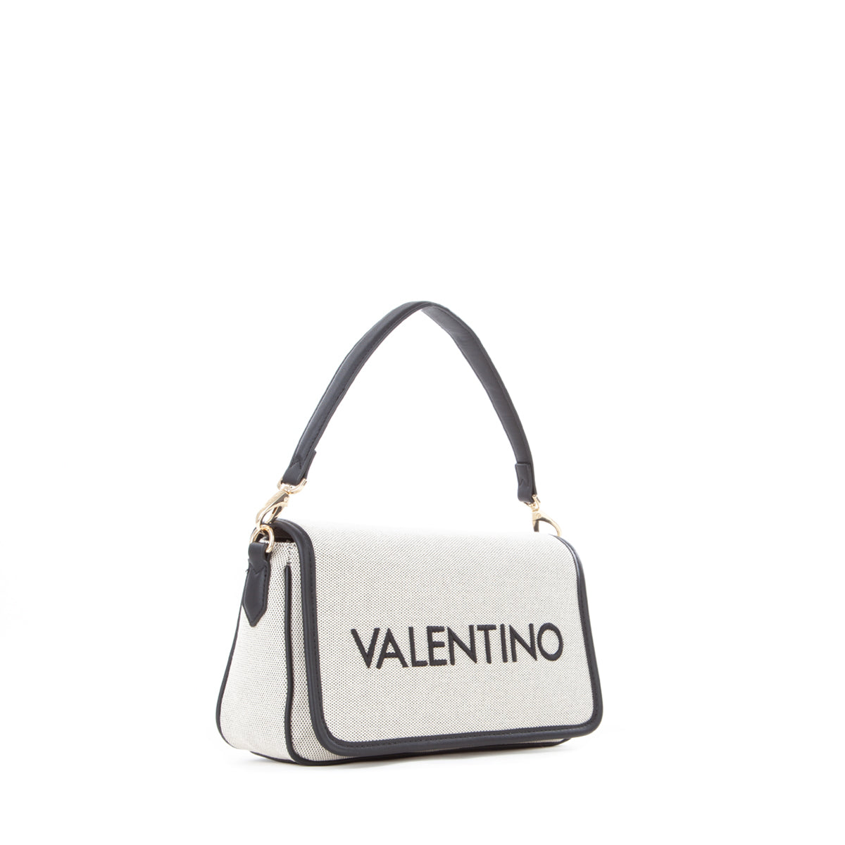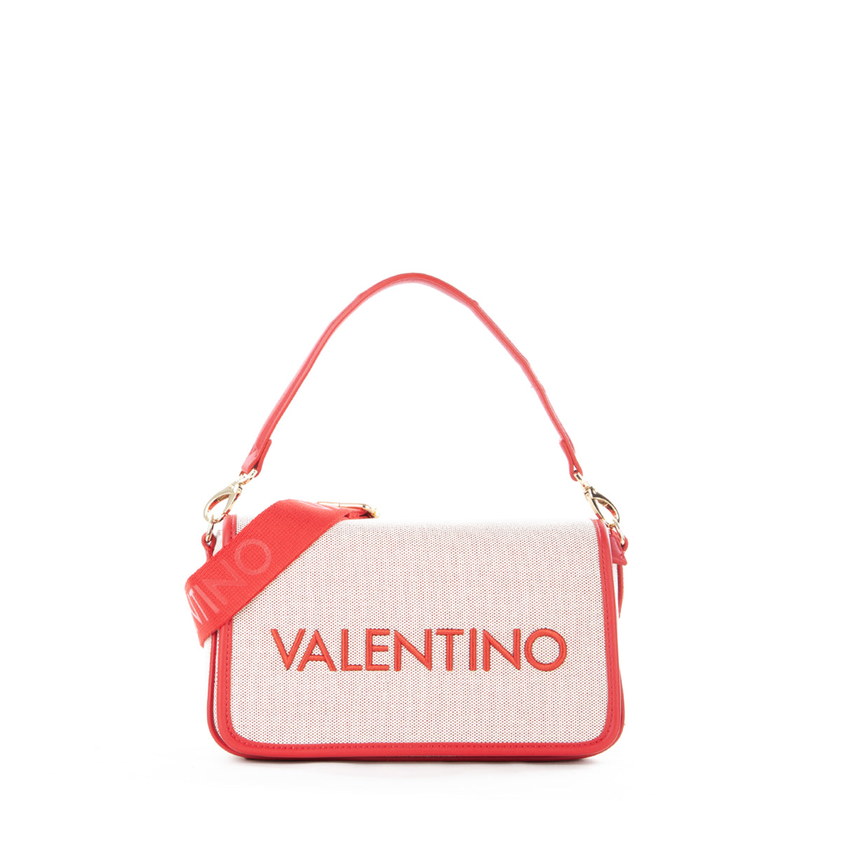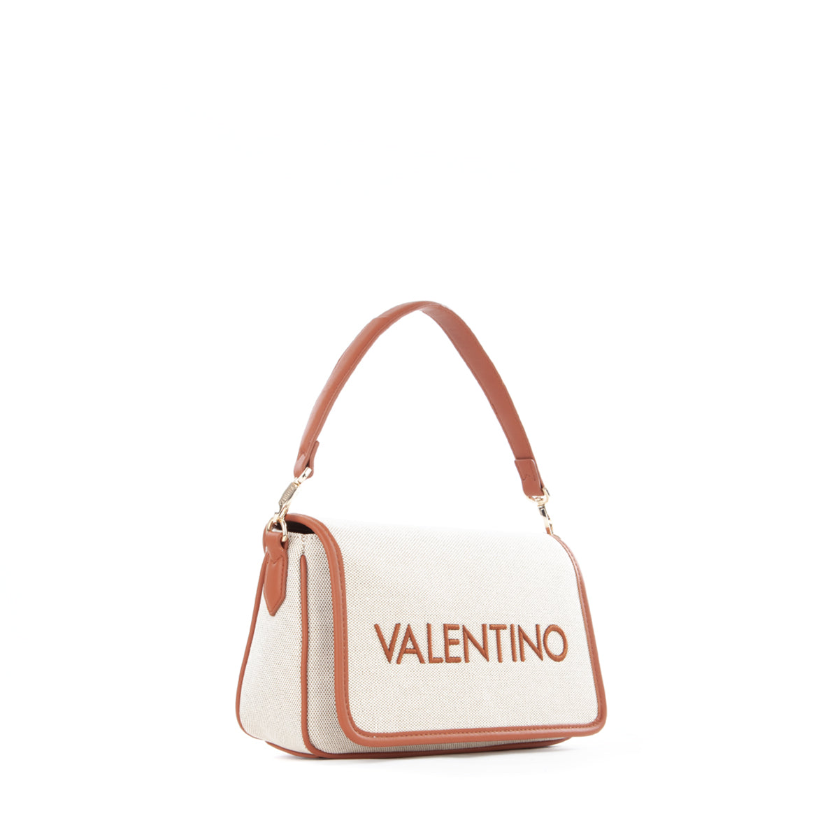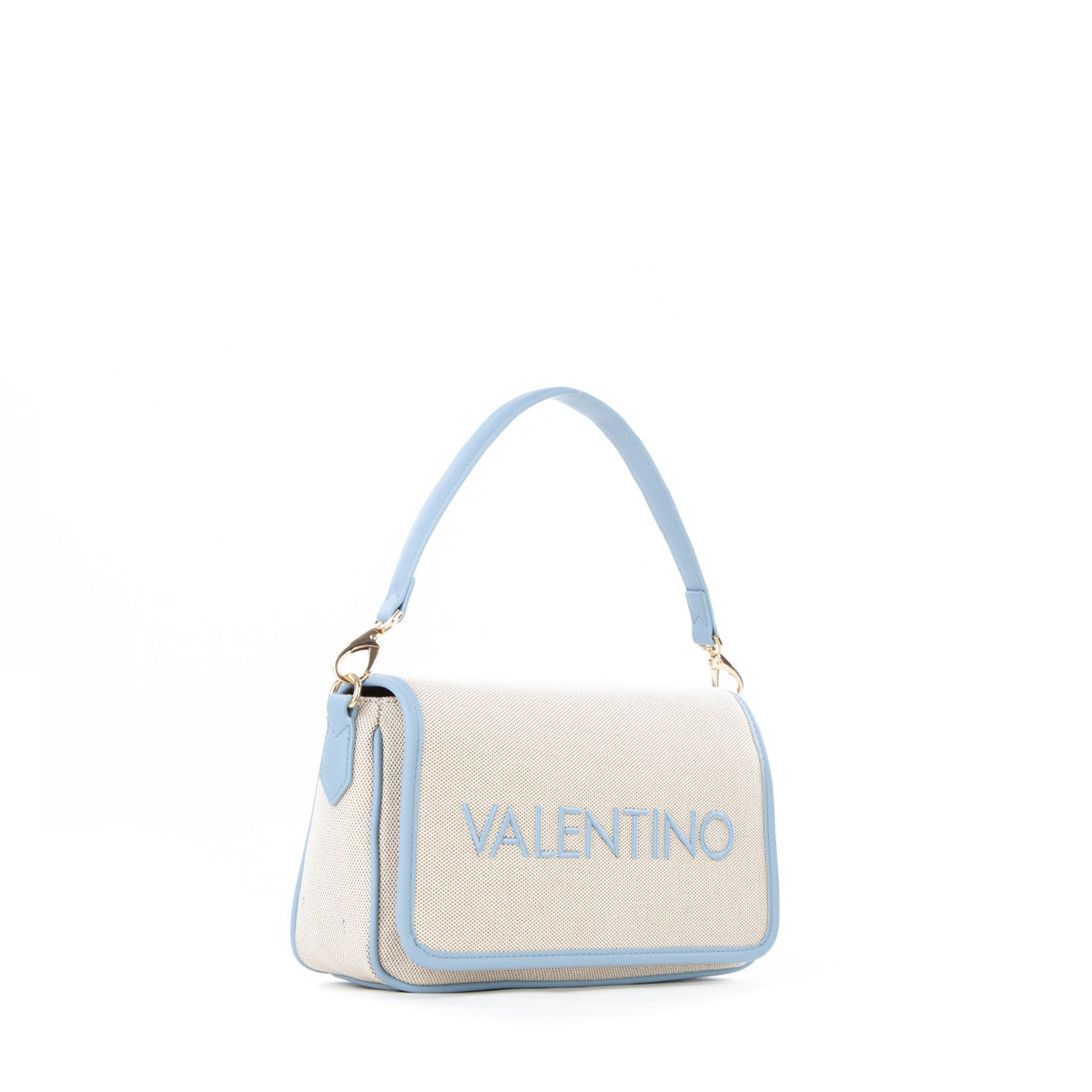 Crossbody a spalla in canvas con riporto in nappa a contrasto. La personalizzazione è ricamata in tinta al riporto. E' dotata di unatracolla di servizio in nastro in tinta al riporto.